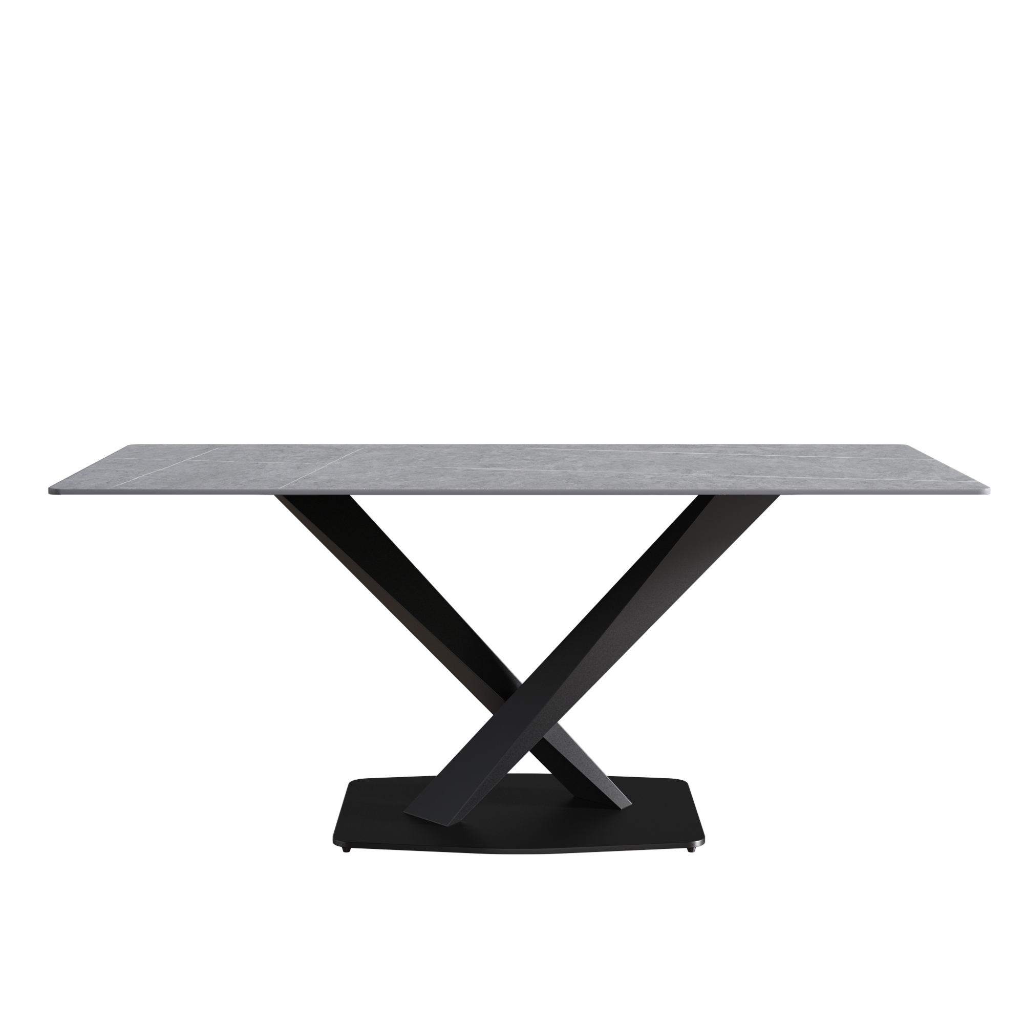 This modern and simple dining table will become the core of your dining, because it is not only the place where you hold dinner and family dinner, but also adds beauty to your space. Undoubtedly, the most striking thing about this dining table is the contrast between the bright panel and the aesthetic texture on the table top. Candlesticks can be placed on the dining table in a large space to create a romantic atmosphere for loved ones and a beautiful environment for family dinners and food ~Product description:[Gray simple appearance] This rectangular dining table is made of artificial stone, and it is made into a perfect dining table with exquisite craftsmanship. It is noble and beautiful.[Spacious dining space] This panel is 70.87 inches long and can accommodate up to 6-8 people, which can make the whole family have a pleasant meal.[Rugged dining table panel & easy to clean] Rugged tabletop is another selling point. The 12mm thick desktop is made of sintered stone, which is heated and pressed into a blade shape, providing you with a desktop that can be used for many years. This material can prevent burns, stains and scratches, and has the characteristics of heat resistance, fire resistance and antifouling.