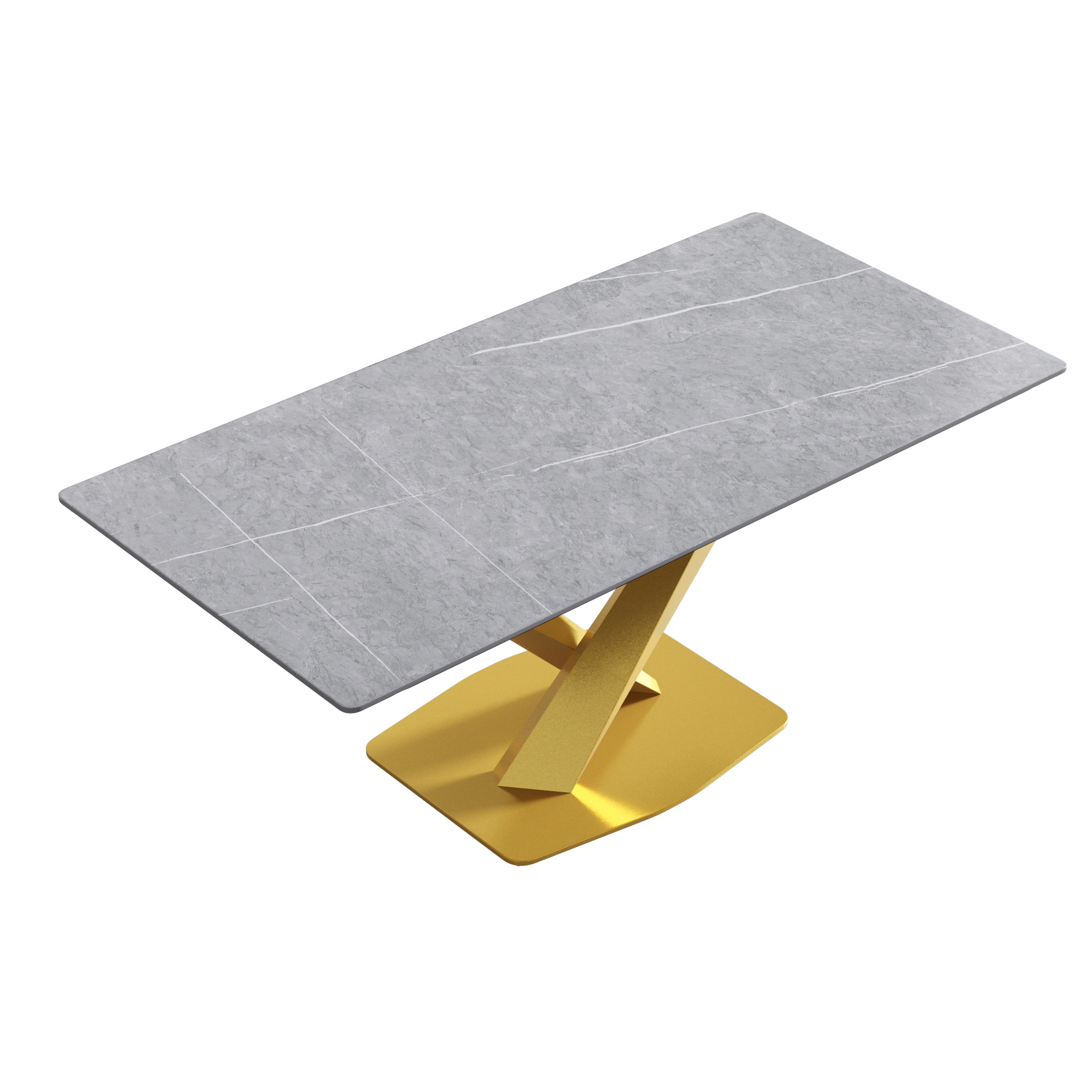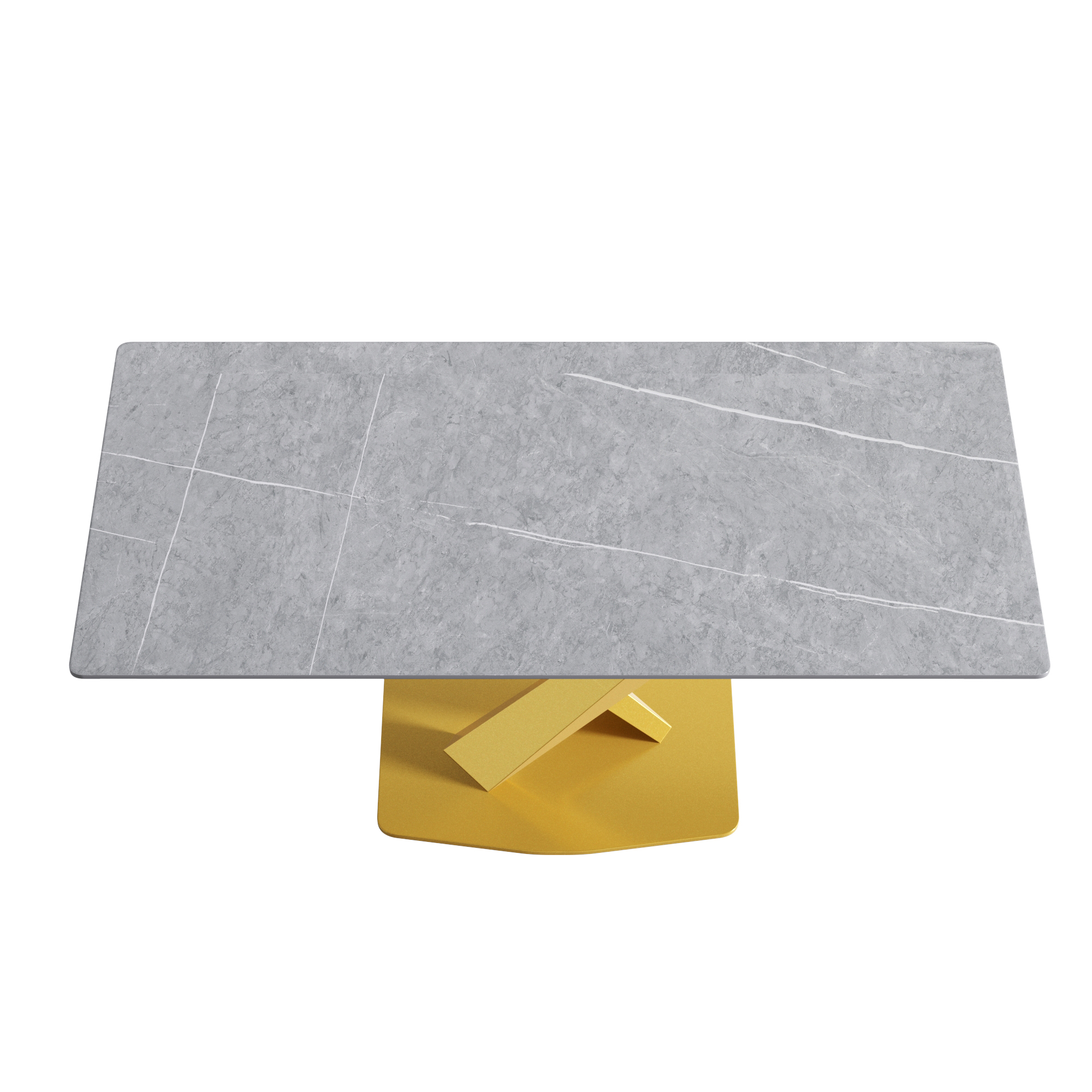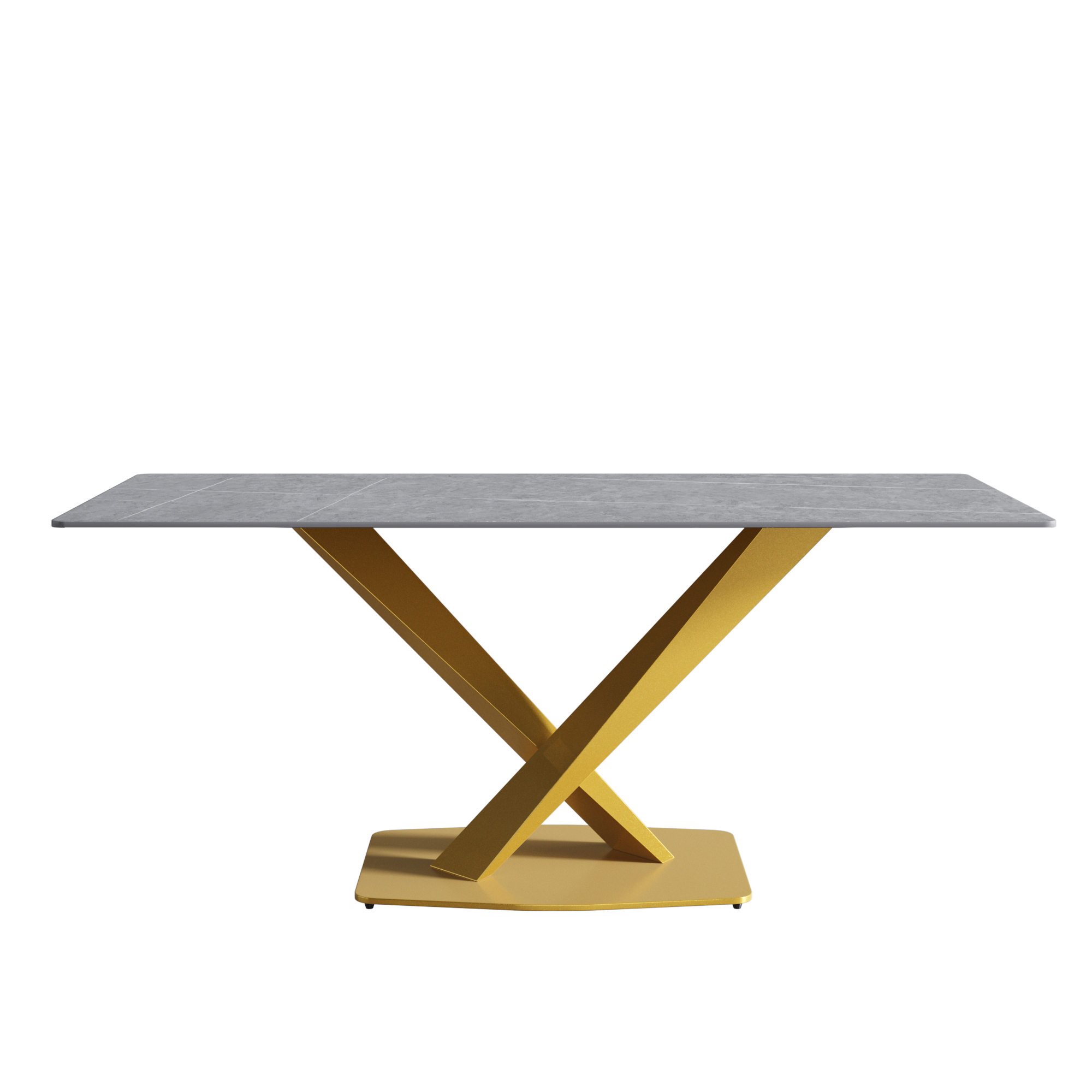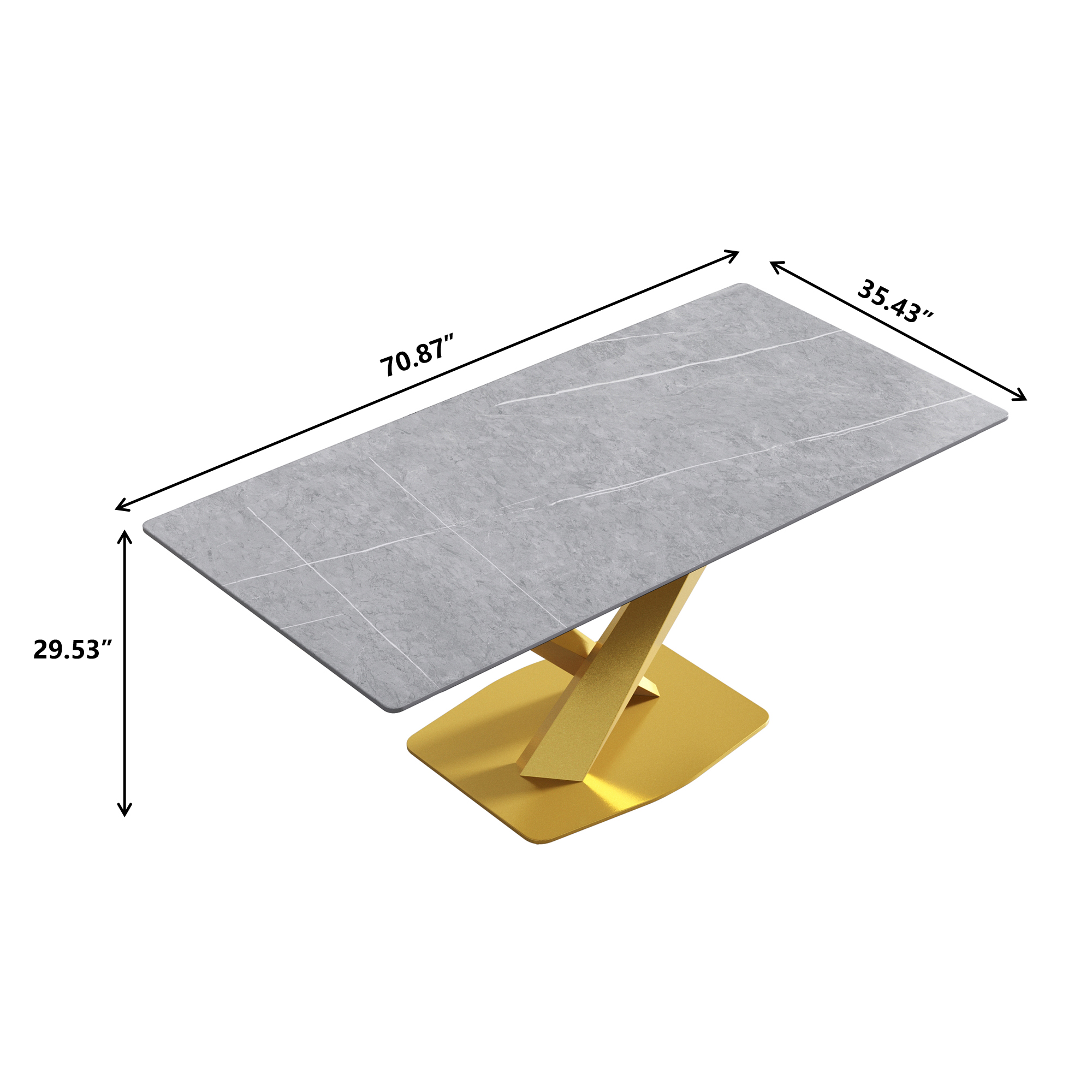70.87" modern artificial stone gray straight edge golden metal leg dining table-can accommodate 6-8 people