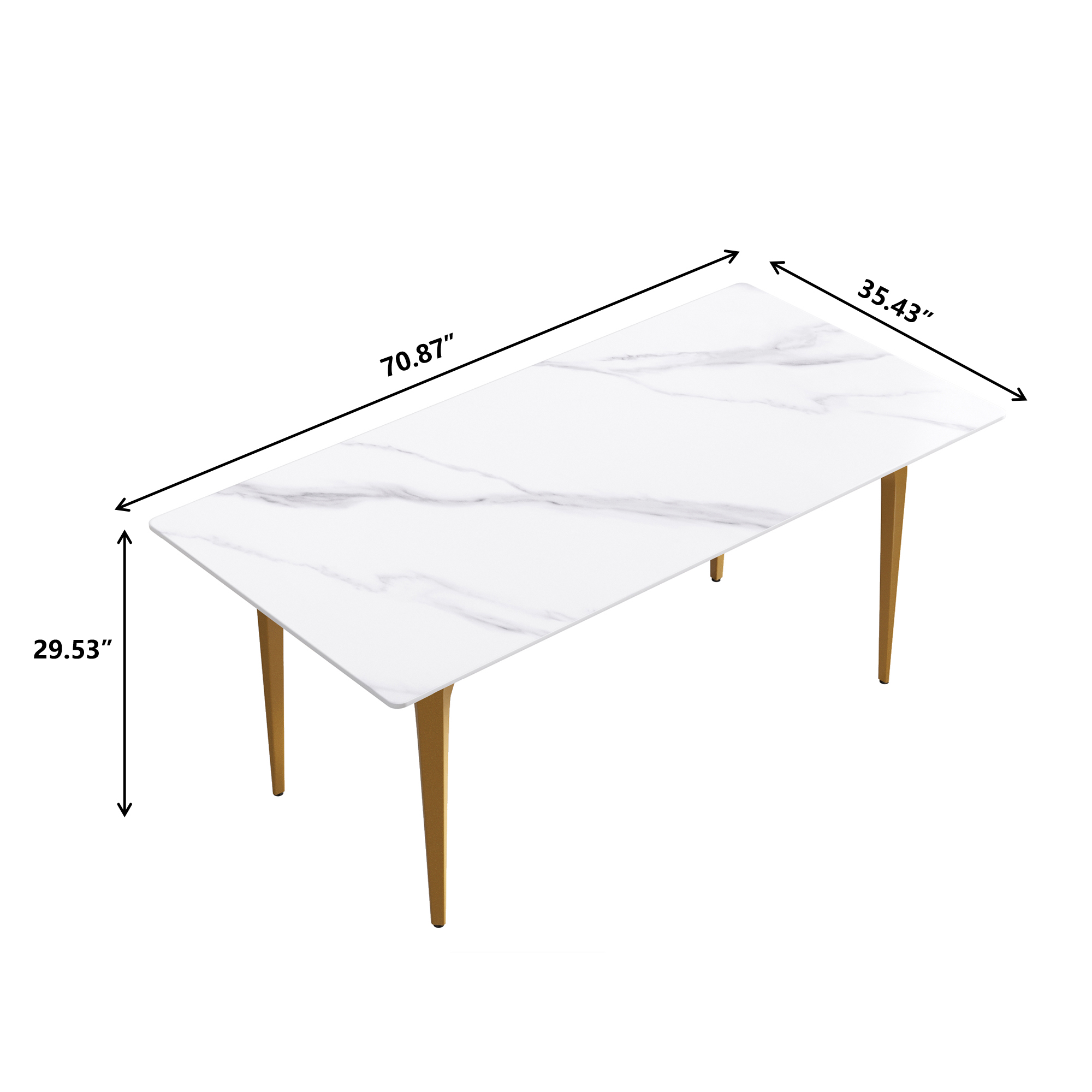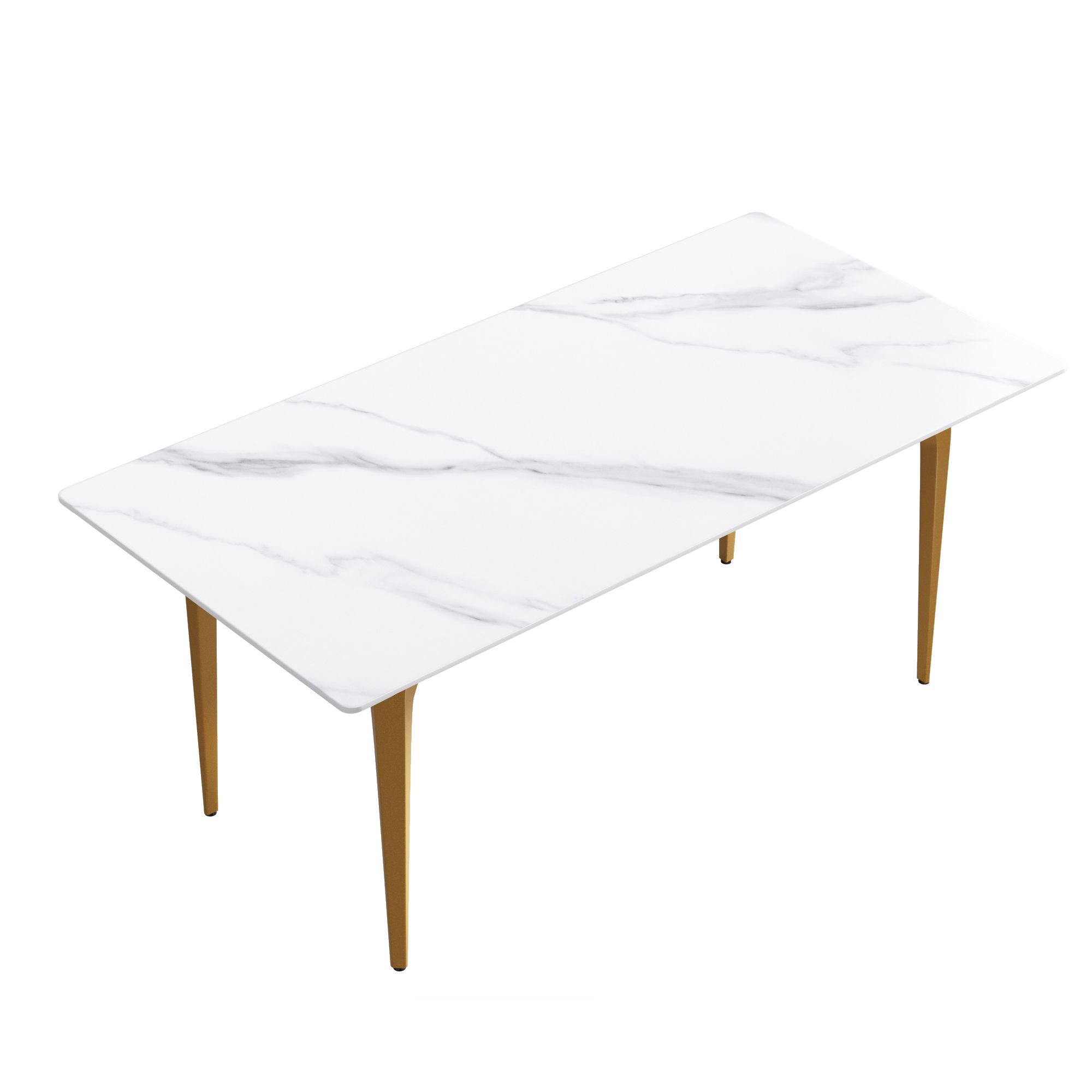 This modern and simple dining table will become the core of your dining, because it is not only the place where you hold dinner and family dinner, but also adds beauty to your space. Undoubtedly, the most striking thing about this dining table is the contrast between the snow-white panel and the aesthetic texture on the table top. Candlesticks can be placed on the dining table in a large space to create a romantic atmosphere for loved ones and a beautiful environment for family dinners and food ~Product description:[White simple appearance] This rectangular dining table is made of artificial stone, which is made into a perfect dining table with exquisite craftsmanship and can accommodate 6-8 people.[Strong dining table panel & easy to clean] The table top is one of the strongest surfaces. The 12mm thick desktop is made of sintered stone, which is heated and pressed into a blade shape, providing you with a desktop that can be used for many years. This material can prevent burns, stains and scratches, and has the characteristics of heat resistance, fire resistance and antifouling.[Stable base] This dining table is designed with four legs, and each leg has a contact surface, which has high stability.Product advantages:[Anti-fouling & easy cleaning] Extremely low water permeability can make oil or liquid impermeable, and the desktop can be kept clean only by wiping.[Fire resistance and high temperature resistance] When in direct contact with high-temperature objects or flames, it will not deform, crack or emit gas or odor.[Using natural materials] Natural materials do not release harmful substances, and are 100% recyclable. No radiation, direct contact with food.[High hardness] The 12mm thick panel has high hardness, leaving no trace whether it is knocked or cut with a knife.Warm tip:During the processing of natural materials, there will be subtle changes in color tone, surface texture and texture, and there will be subtle differences with pictures, which is a normal phenomenon. Natural changes are not regarded as product defects.