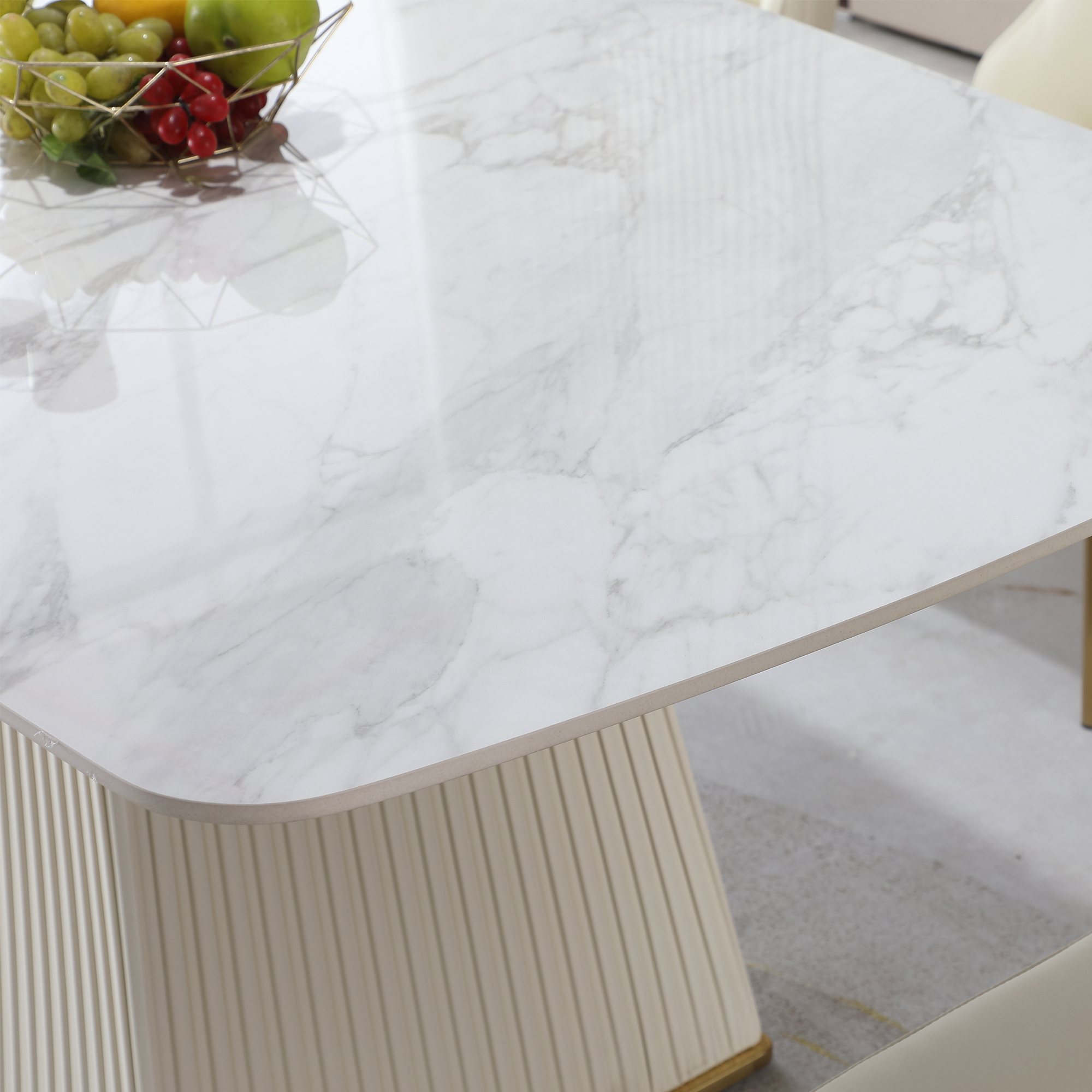 71" Contemporary Sintered Stone Dining Table in Carrara white color with 6pcs Chairs.