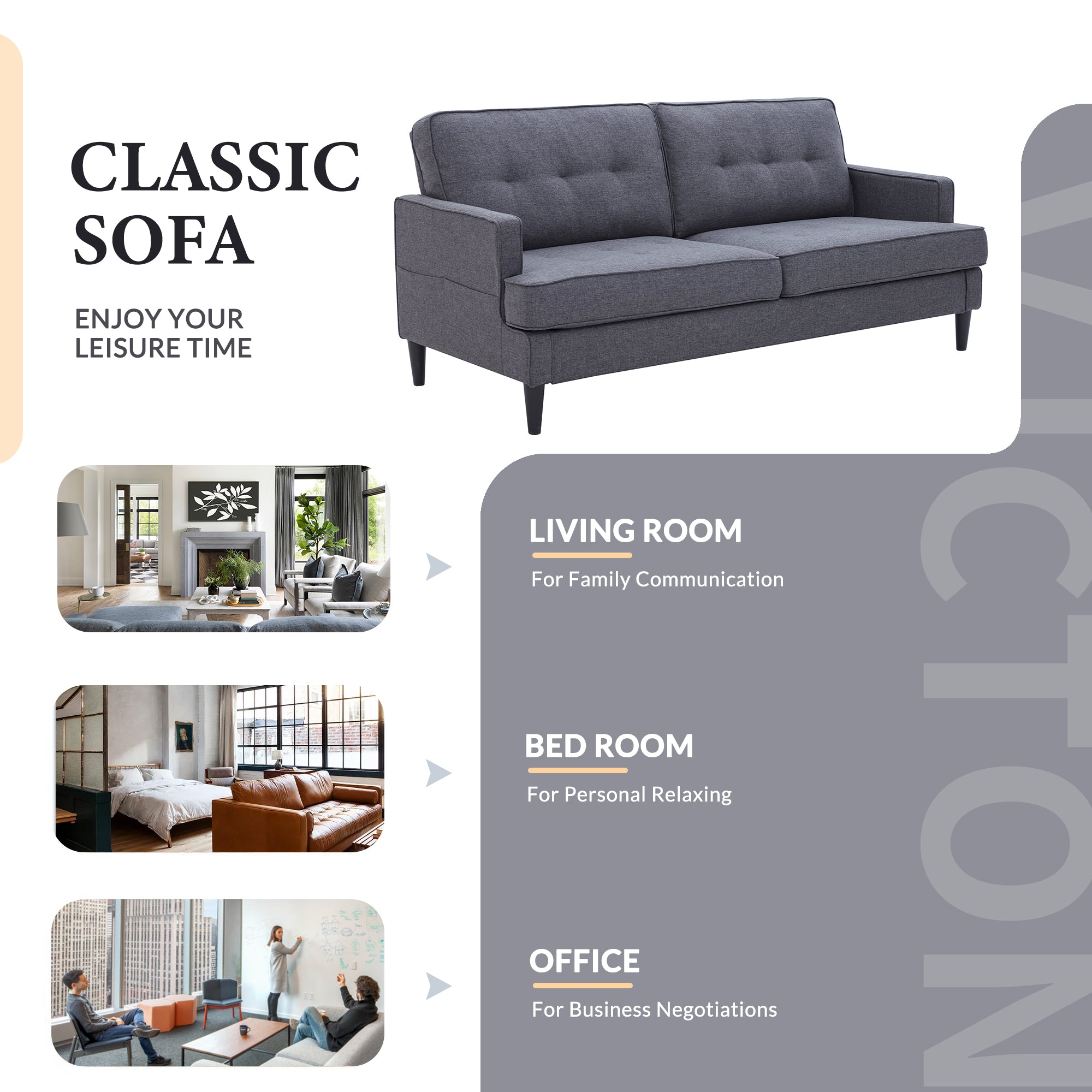 Perfect for Small Space: Don't lost style in your small rooms or compact spaces! This 71 inch small couch adds mid-century charm to your small apartment, dorm, living rooms or loft while its streamlined silhouette arms fuse together to make a modern look.