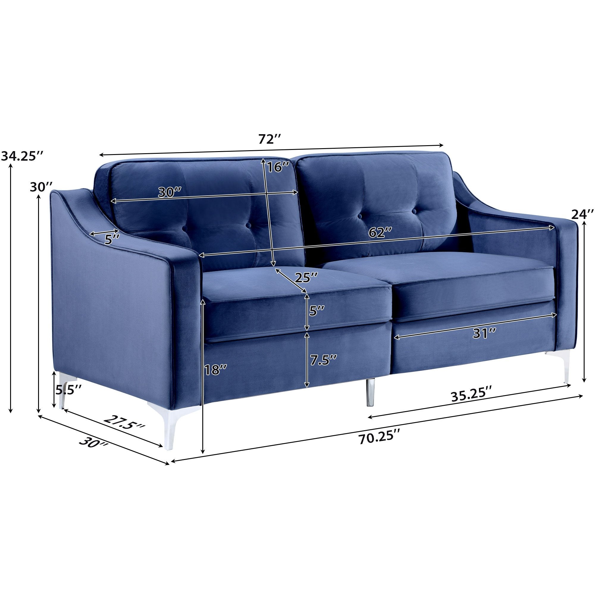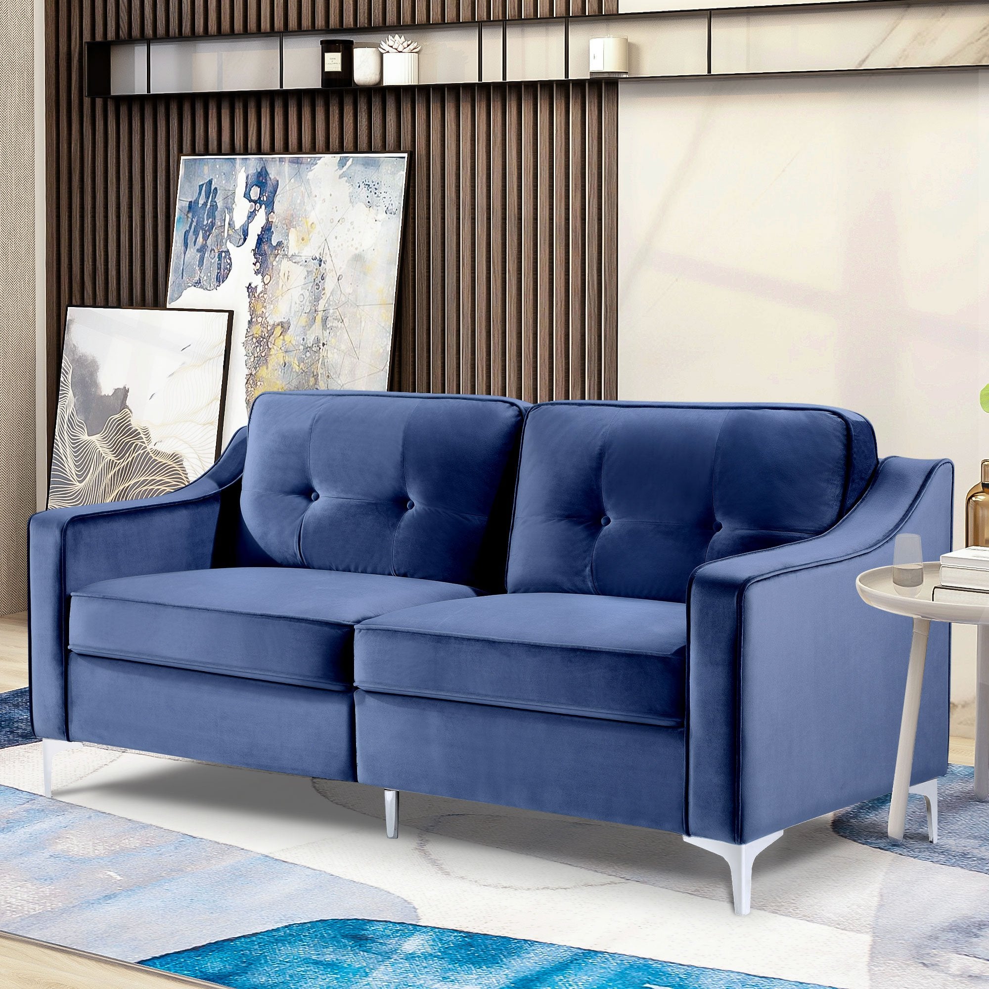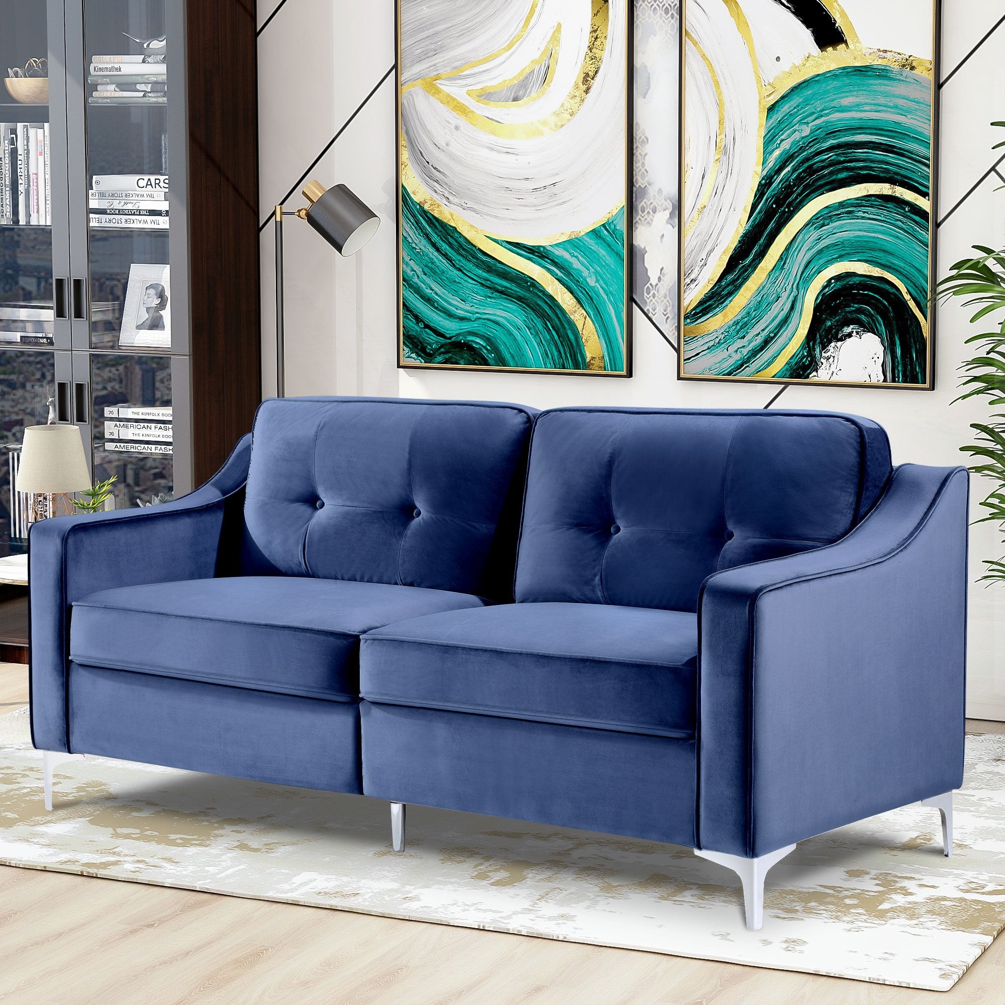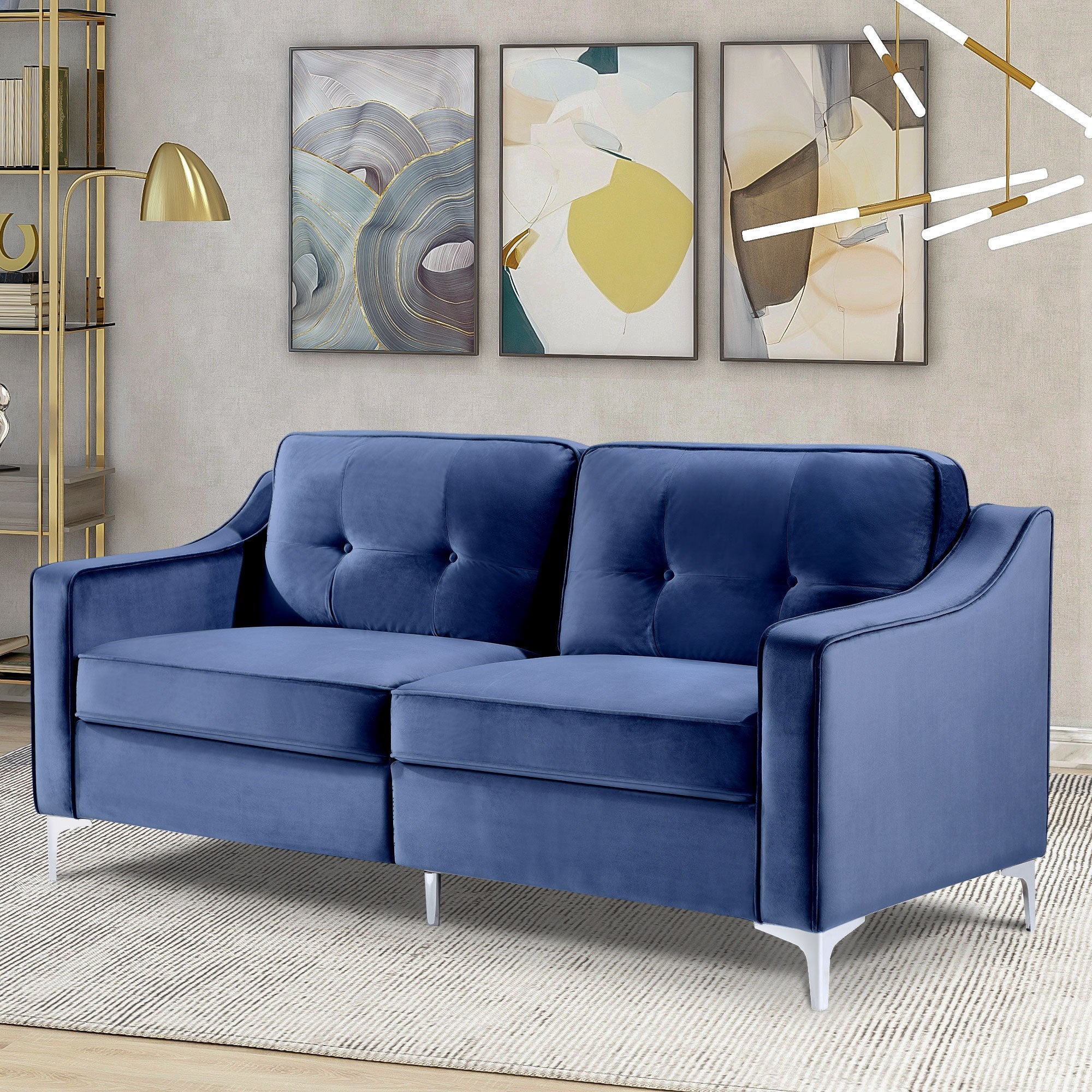 72" Tufted Velvet Upholstered Sofa Couch, Mid-century Modern Sofa Set with Chromed Metal Legs