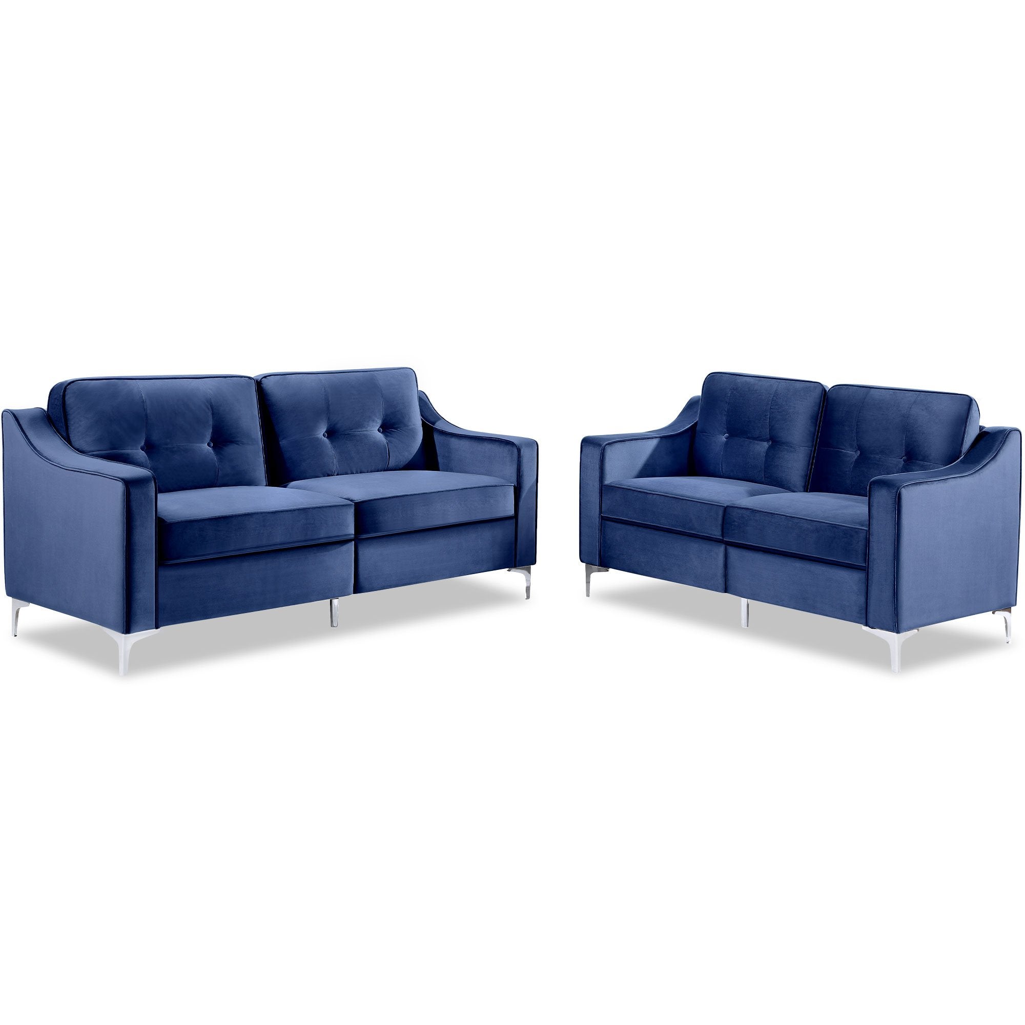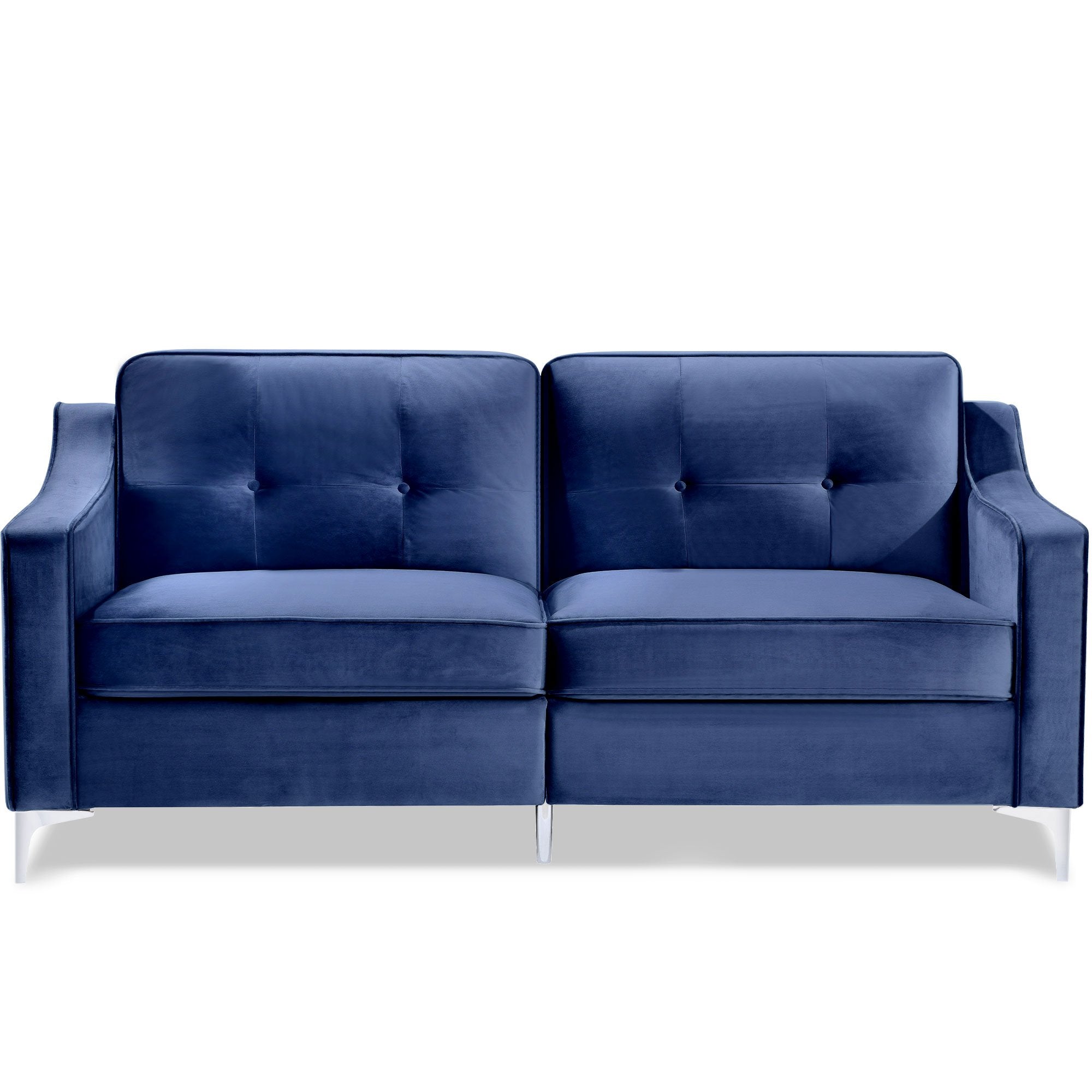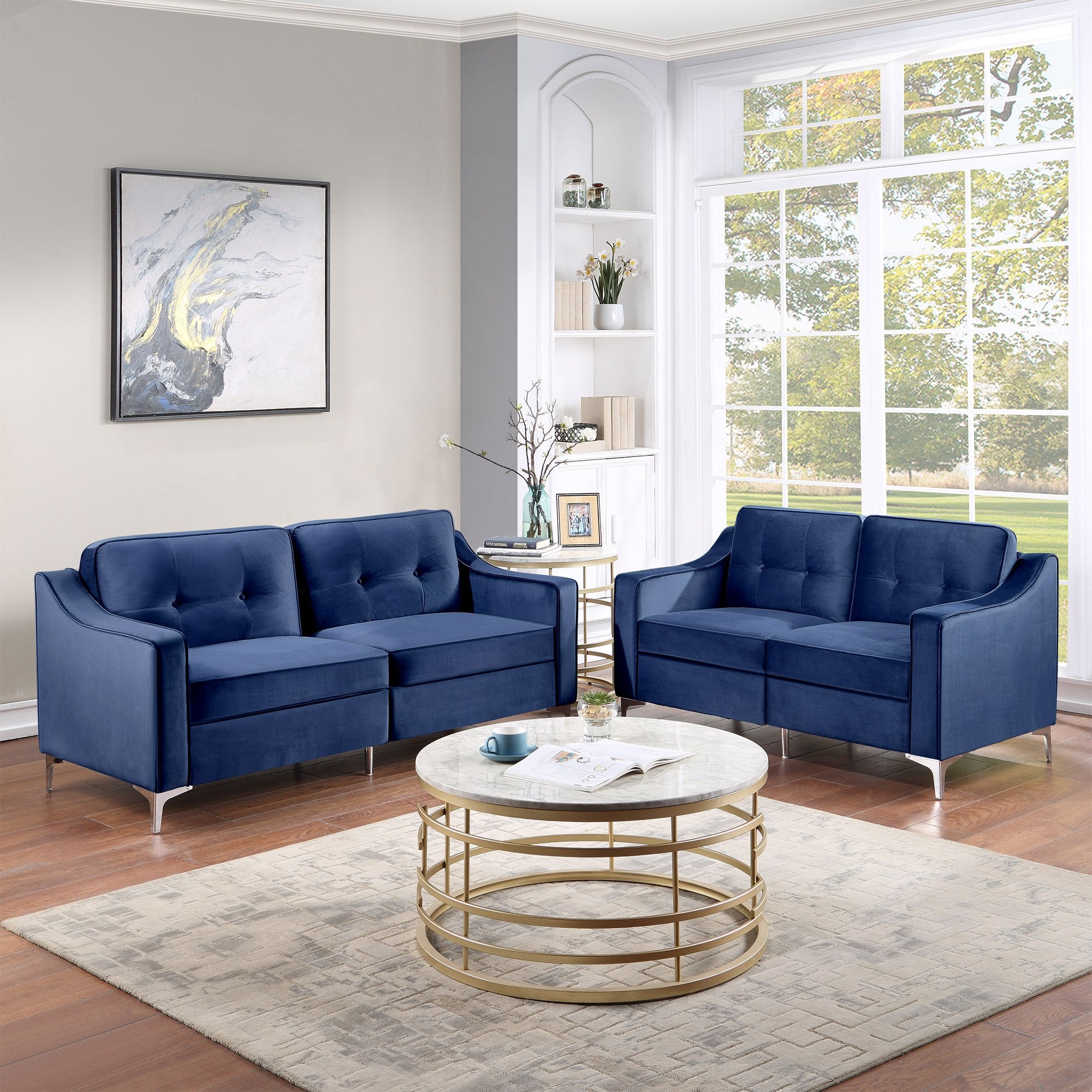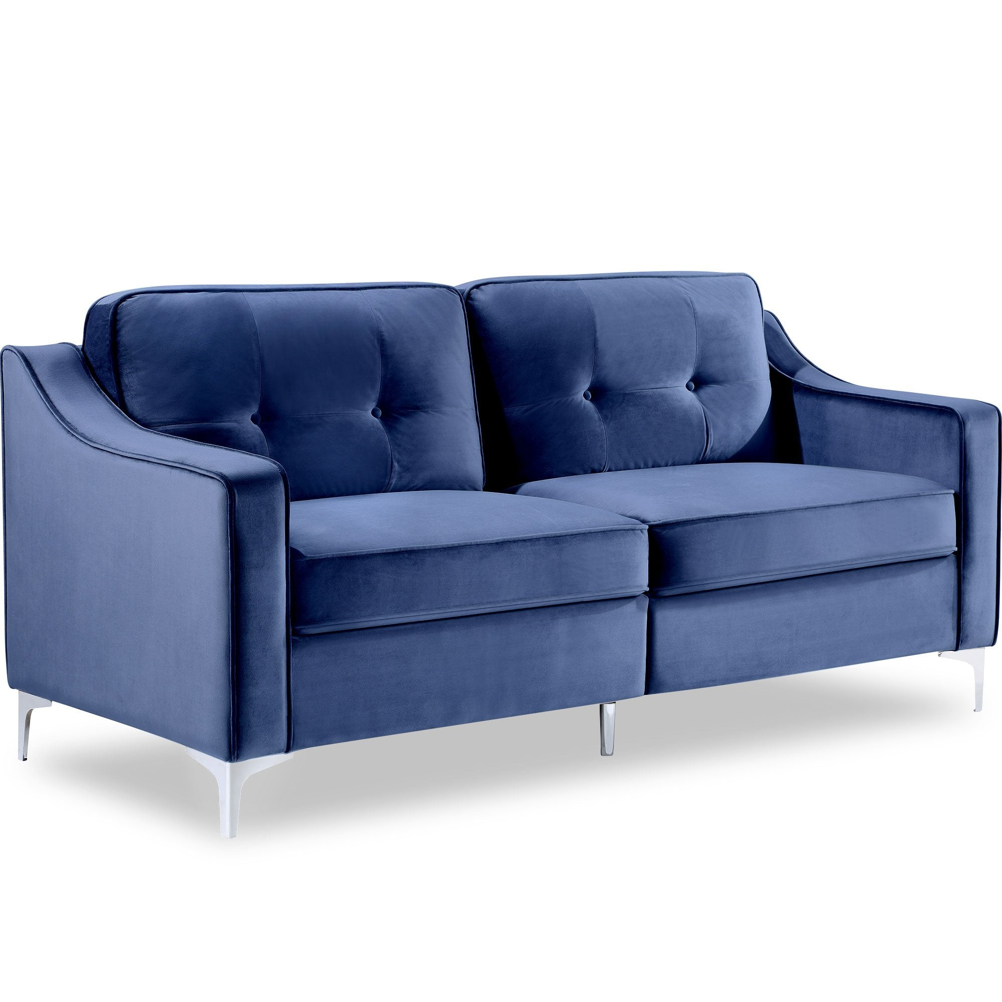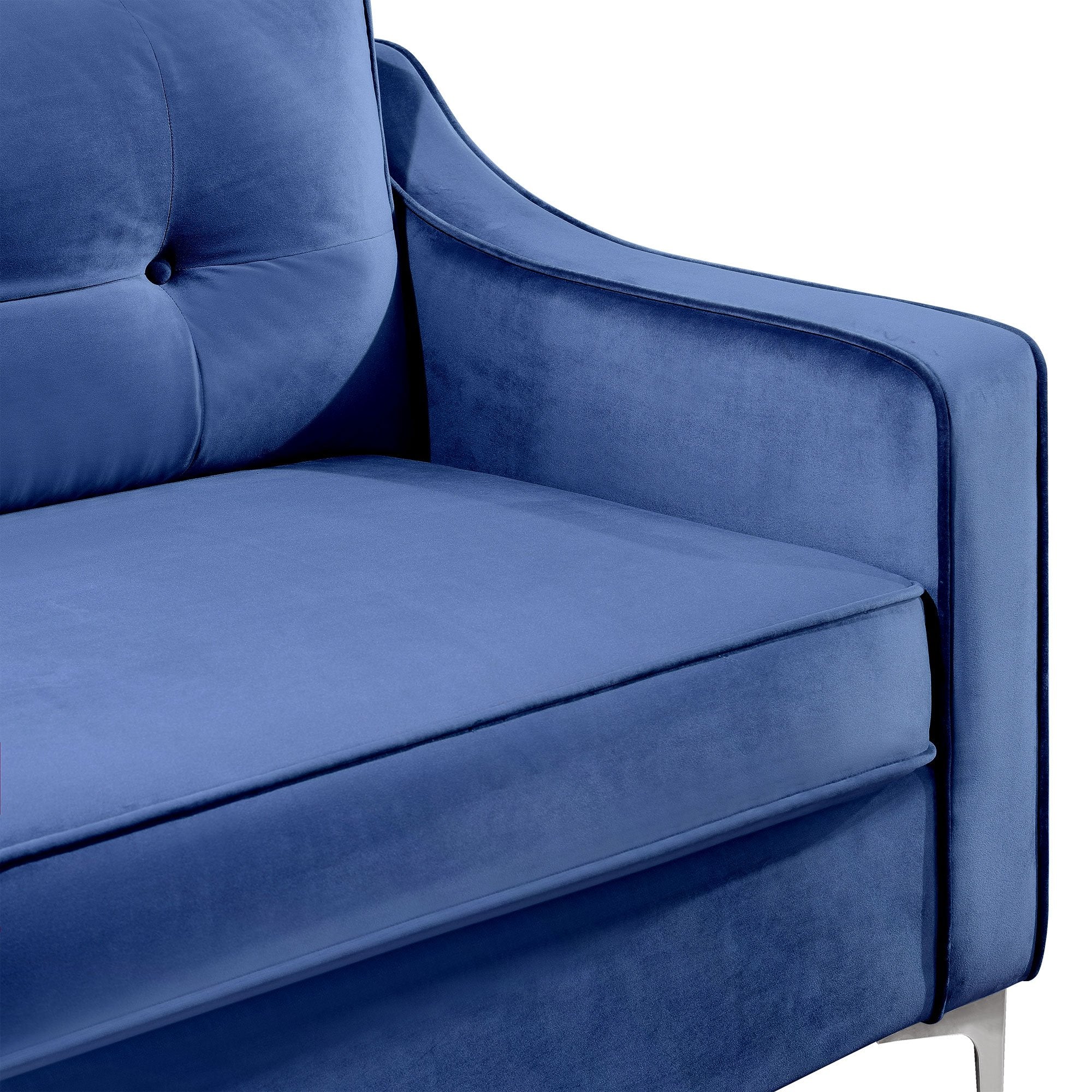 72" Tufted Velvet Upholstered Sofa Couch, Mid-century Modern Sofa Set with Chromed Metal Legs
