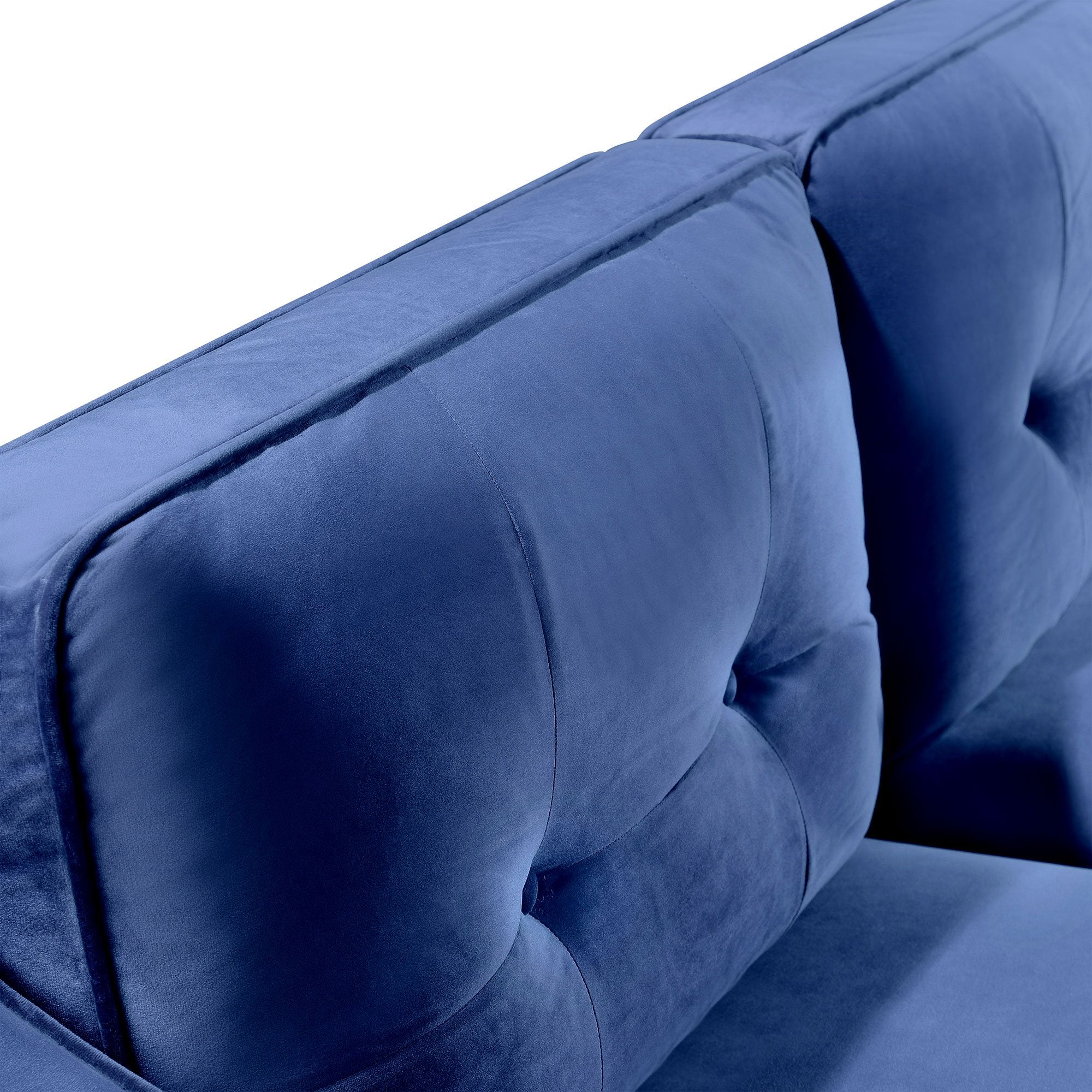 Pholstered in velvet fabric, this sofa showcases tufting for a touch of retro charm, while sinuous spring suspension and thick fiber-wrapped foam core cushions provide comfort and support.