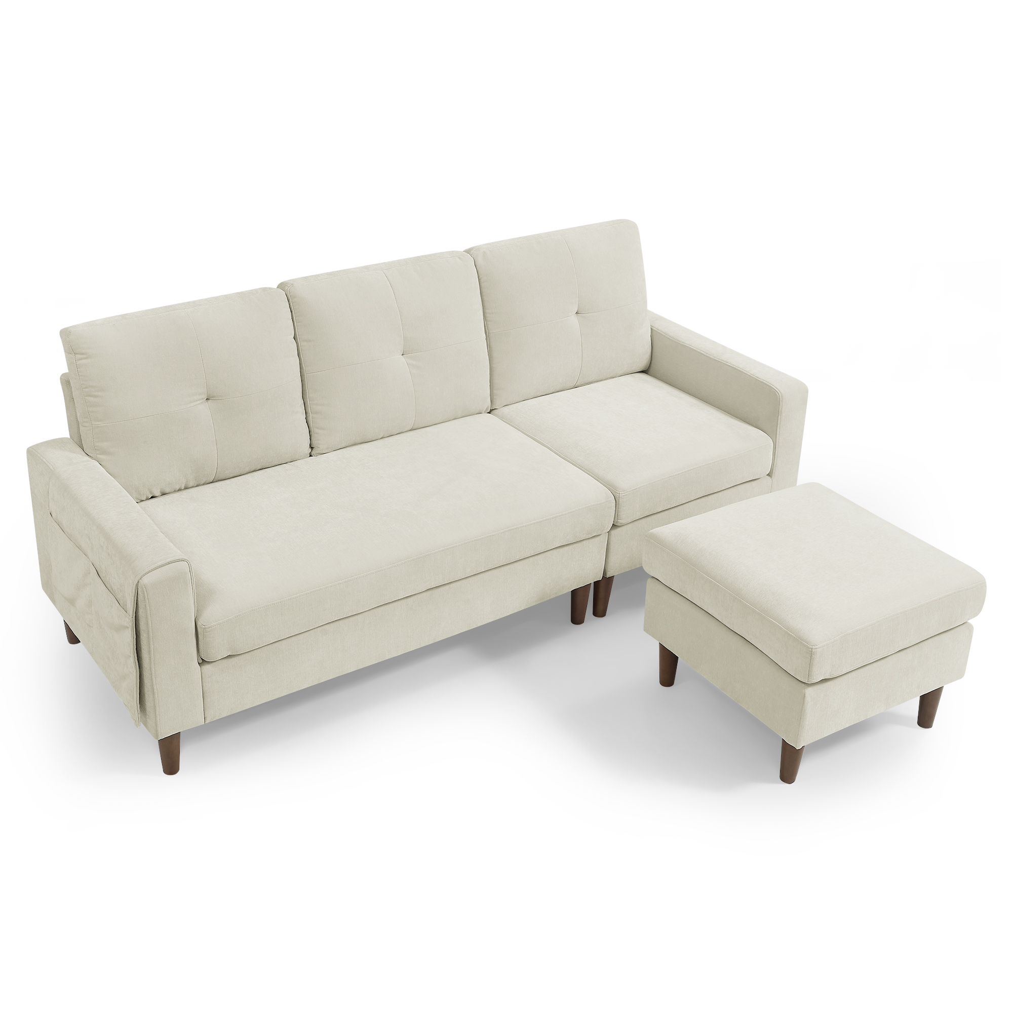 - [Multi-purpose Design]: This small space reversible sectional sofa with a movable ottoman, you can place a square ottoman on the left or right of the sectional sofa to fit against the wall in your living room. You can even put the ottoman in the middle to make a four-seat sofa. The pocket design makes it easy to store magazines and books