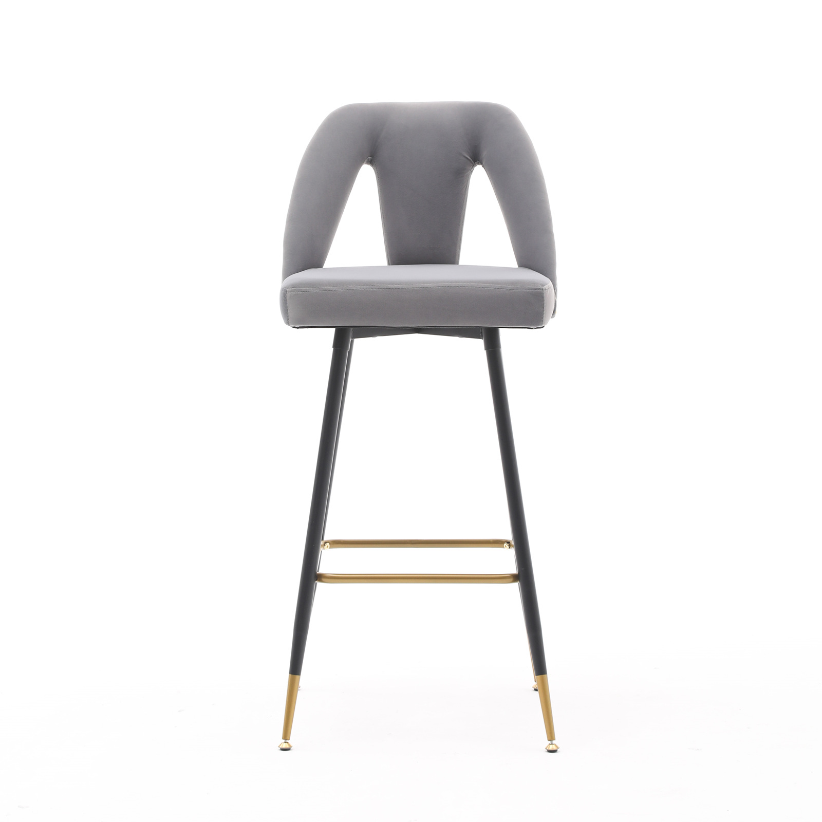 AA Furniture,Akoya Collection Modern | Contemporary Velvet Upholstered Connor 28' Bar Stool Counter Stools with Nailheads and Gold Tipped Black Metal Legs,Set of 2 (Gray)