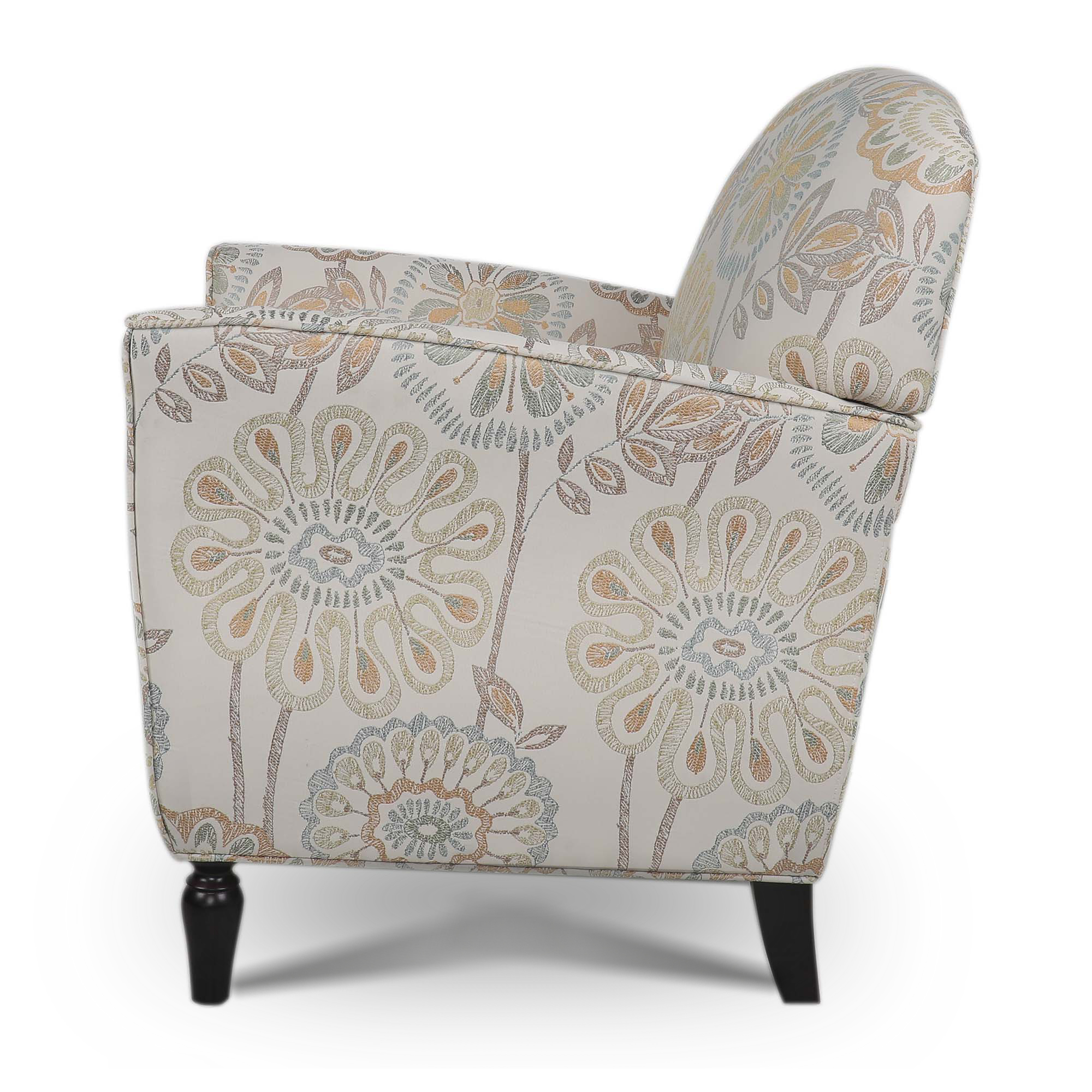 In step with mid-century modern design, this accent chair invites you to kick back and relax in style. Its wood frame is wrapped tight in woven polyester blend upholstery and padded with high-density foam for added comfort. The gourd shape of tapered birch wood legs, finished in black, round out the look below, giving it its distinctive personality.