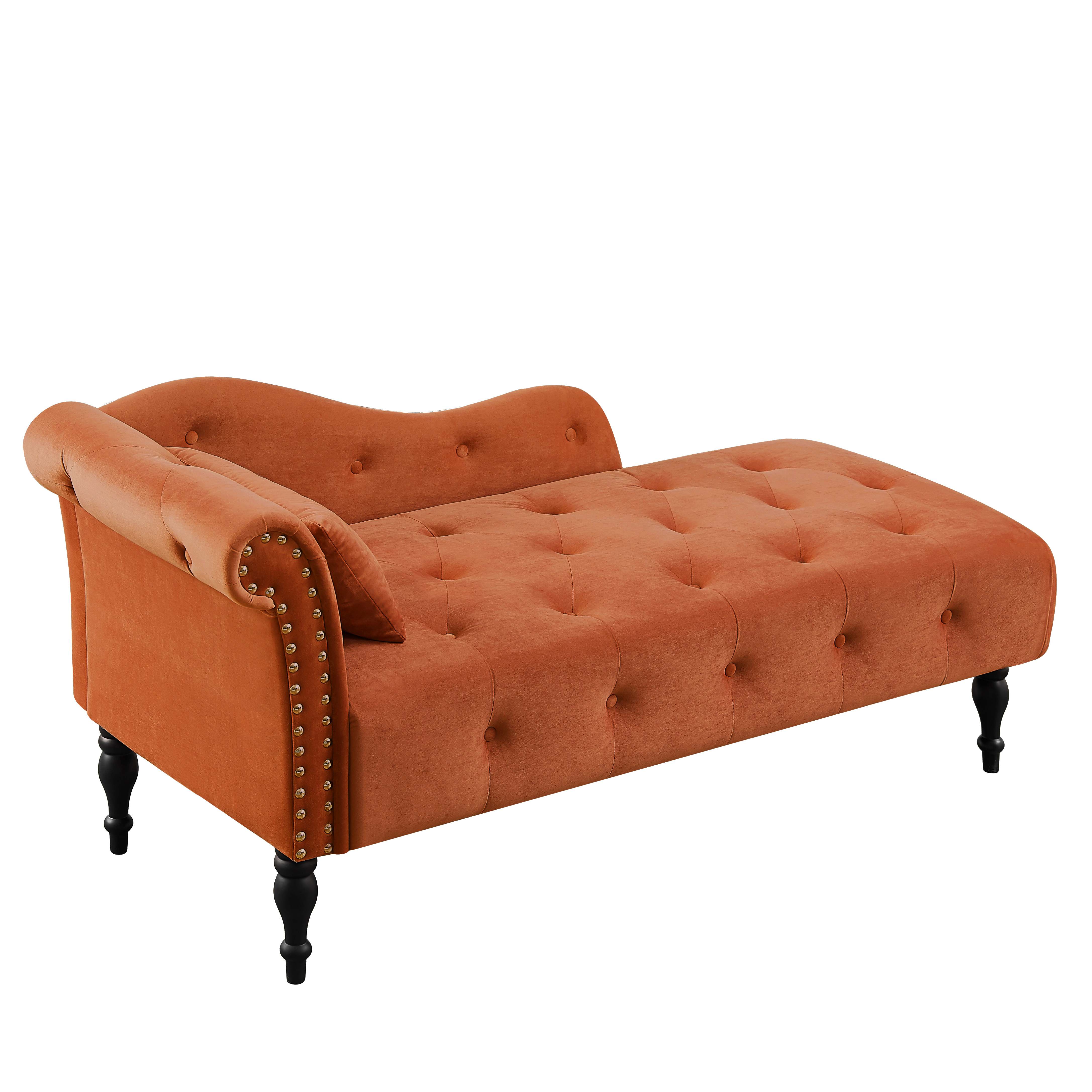 Aijia 60.6' Velvet Chaise Lounge Buttons Tufted Nailhead Trimmed Solid Wood Legs with 1 Pillow,Orange (Left Arm Design as Shown in the Picture)
