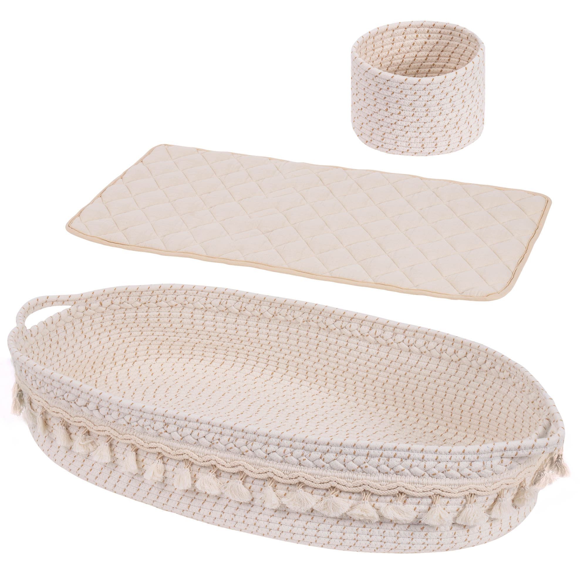 Baby cotton rope diaper basket with storage basket and soft pad