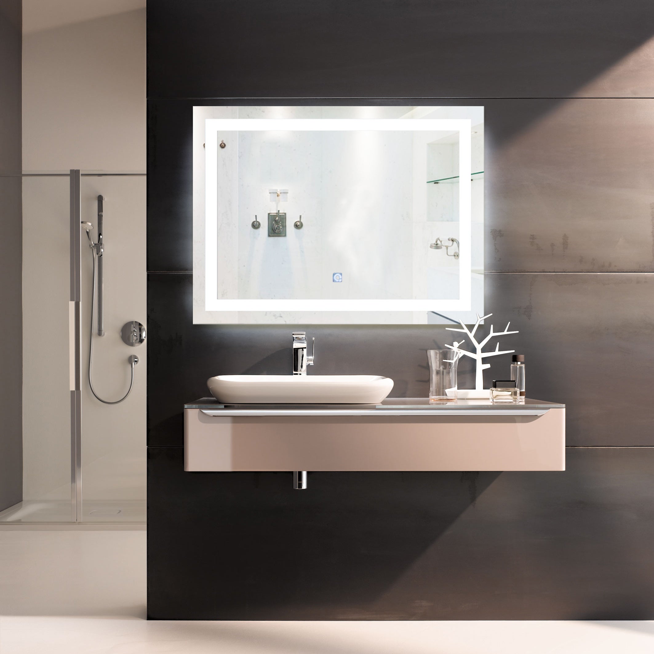 The LED mirror with defogger is the perfect union of sleek design and modern technology