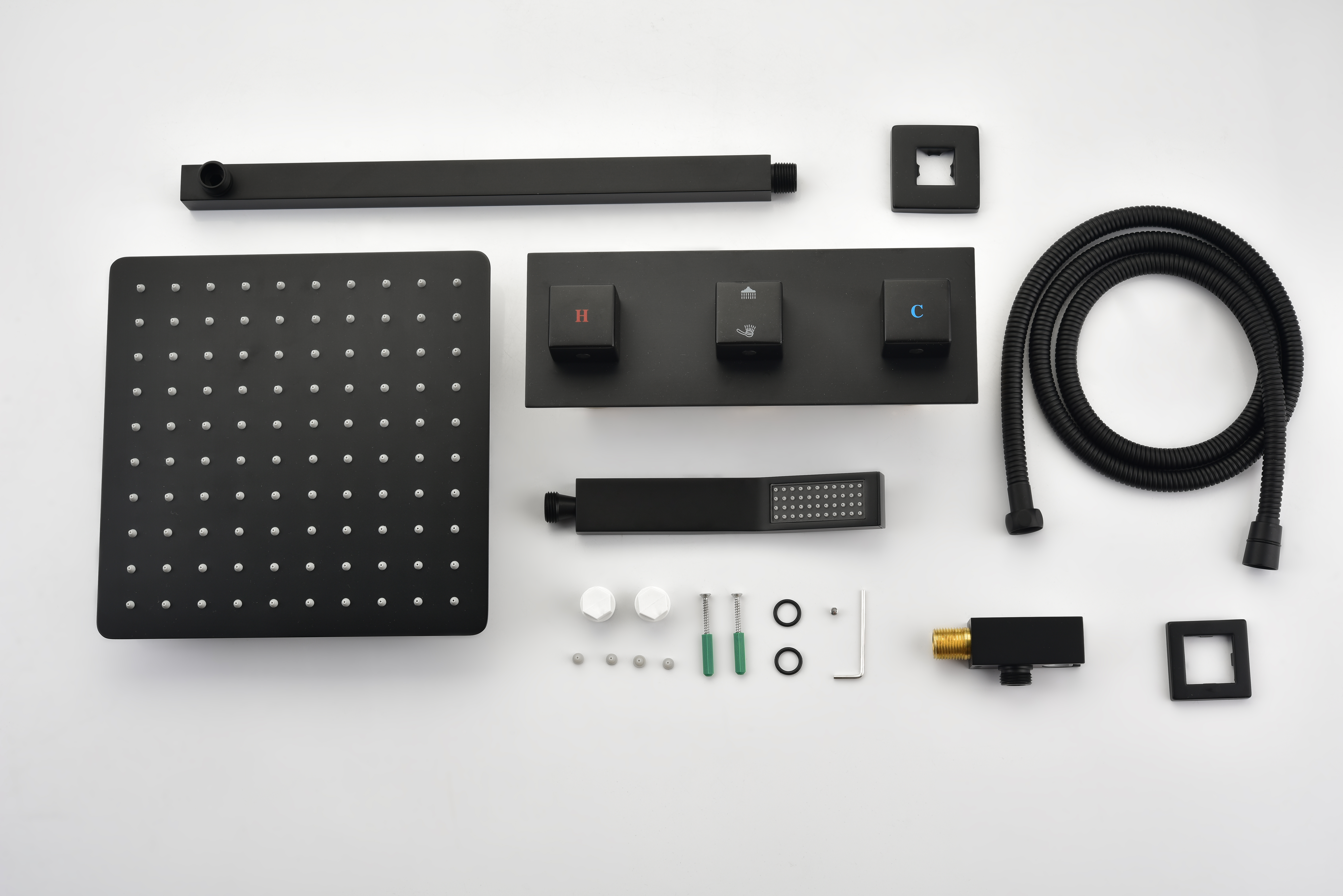 Package Includes: Wall mounted shower faucet set includes 10-inch rain shower head with handheld sprayer and 59-inch hose, brass shower mixer valve, brass handheld.