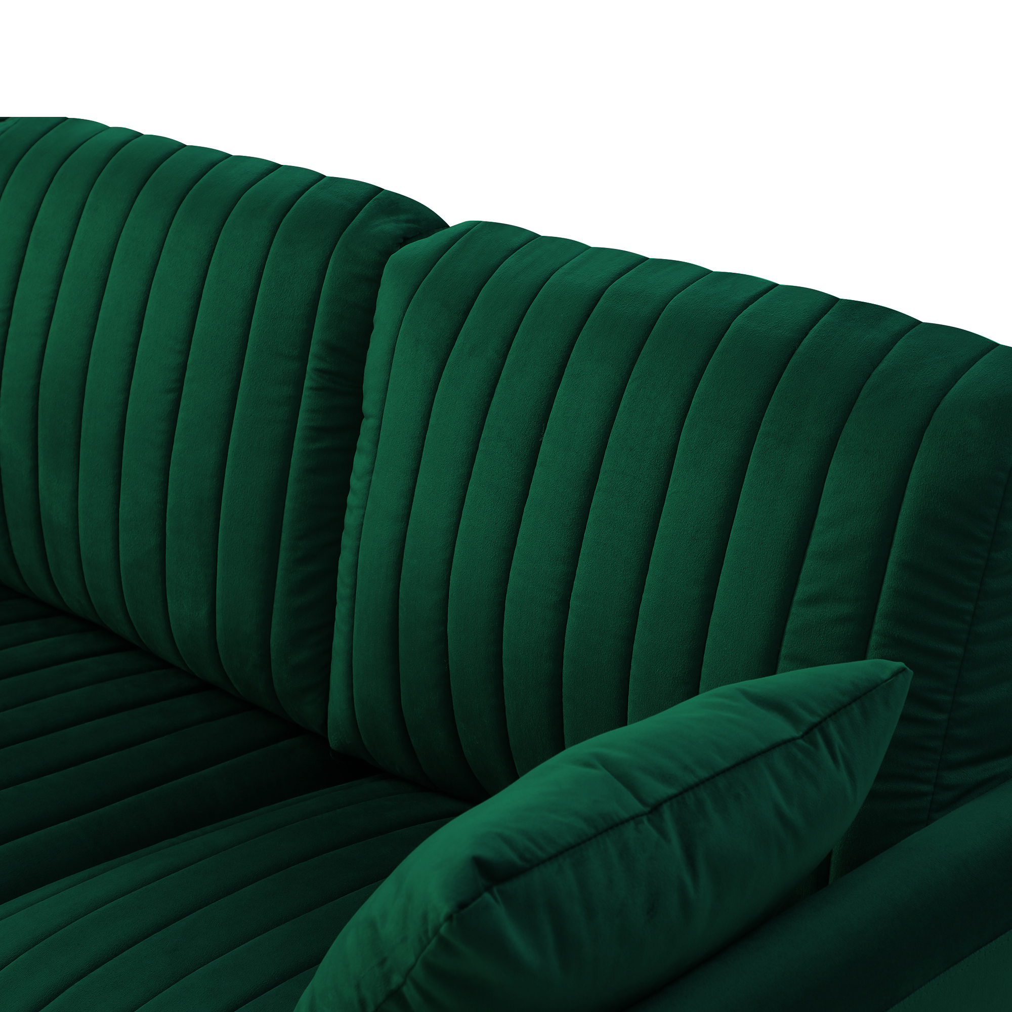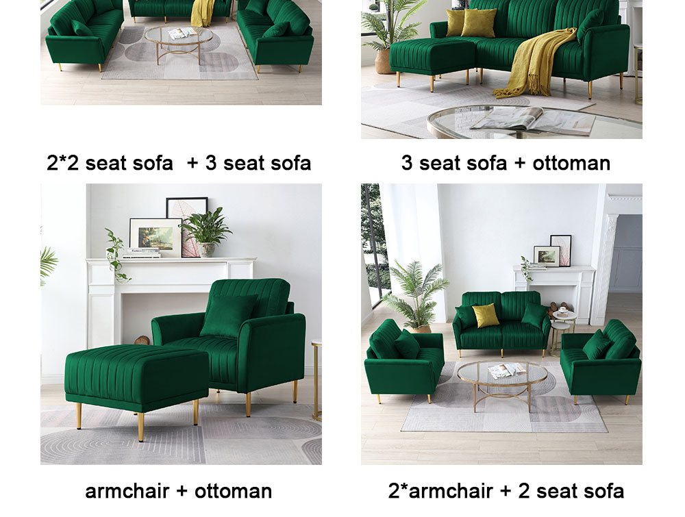 Fall back into a dream-like sofa with more than eight different combinations to make a unique home style your own, more than six color choices bring you a timeless luxury inspired home, join us and step into the warm elegance of this contemporary living space. Premium velvet cover, handcrafted channel tufting and opulent metal legs unite to evoke a feeling of monumental luxury.