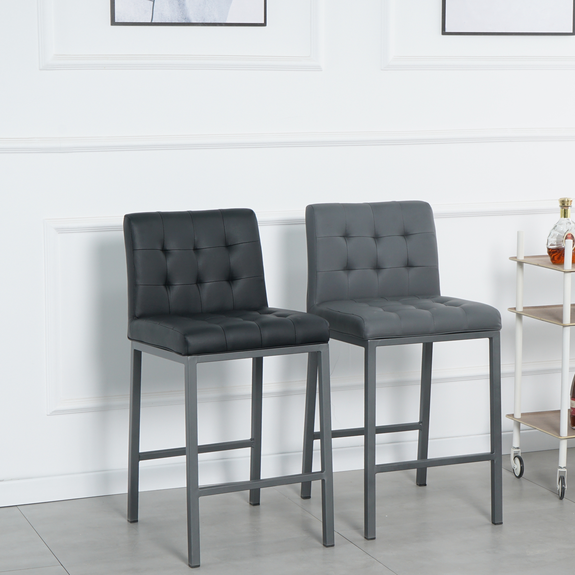 Cheap Modern Design High Counter Stool metal legs Kitchen Restaurant black pu Bar Chair(set of 2)