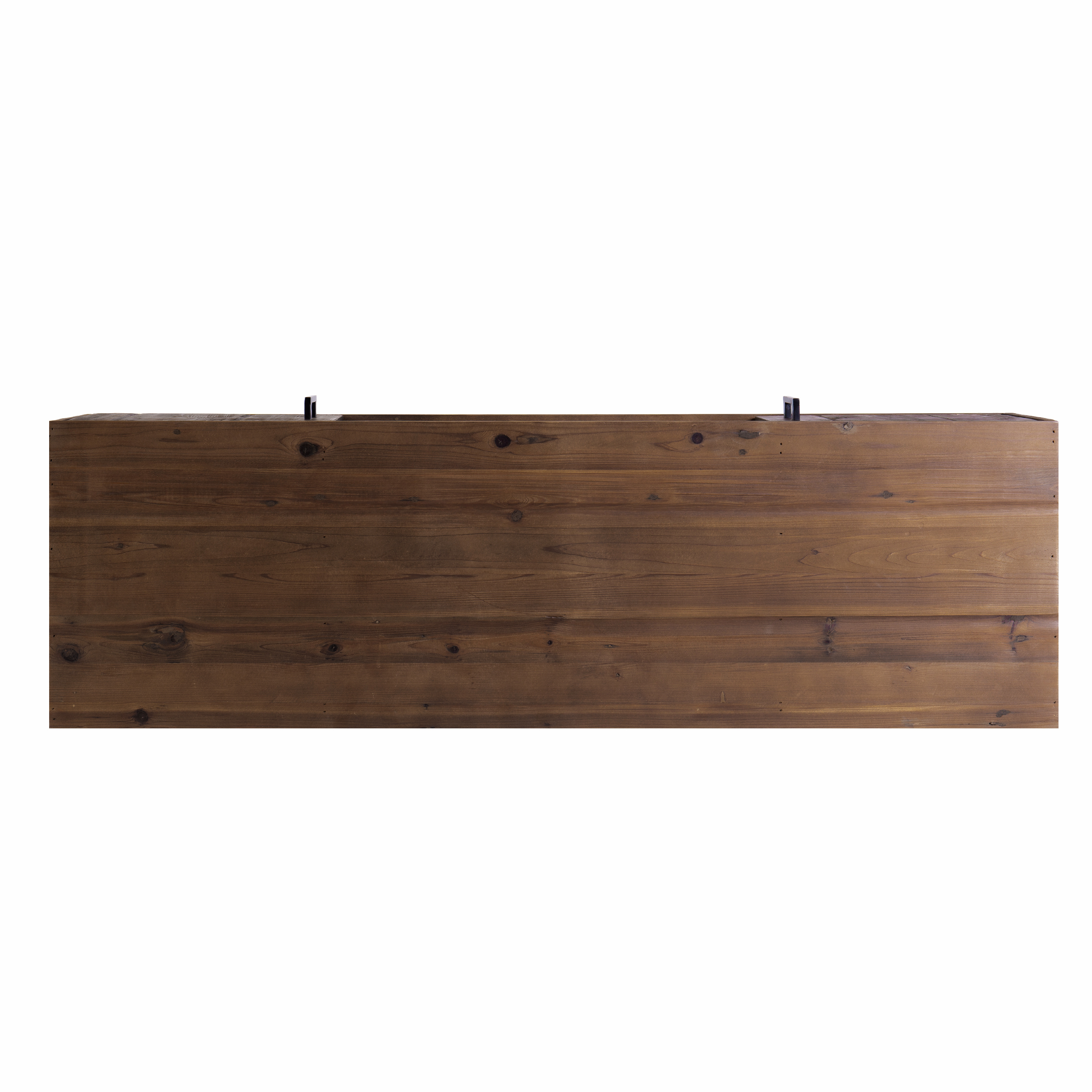 Emanating a bold, rustic flair, this wooden TV and media entertainment center console from our best selling Clive collection is the perfect fit for your entertainment space, living room, or den. Featuring two cabinets and a center compartment with a cut out hole for easy wire management, the TV stand exhibits subtle wood grain details for a nature inspired appeal. It is completely handcrafted from environmentally friendly solid reclaimed fir wood and supported on sturdy wrought iron hairpin design legs. The legs include floor protectors to prevent abrasions or scratches on your floor. The natural brown tone wood compliments the black powder coated legs and door handles. With plenty of space to keep your media devices organized, this TV stand goes perfectly well with nearly any interior decor setting, whether it is traditional, transitional, industrial, modern, Scandinavian, or contemporary.