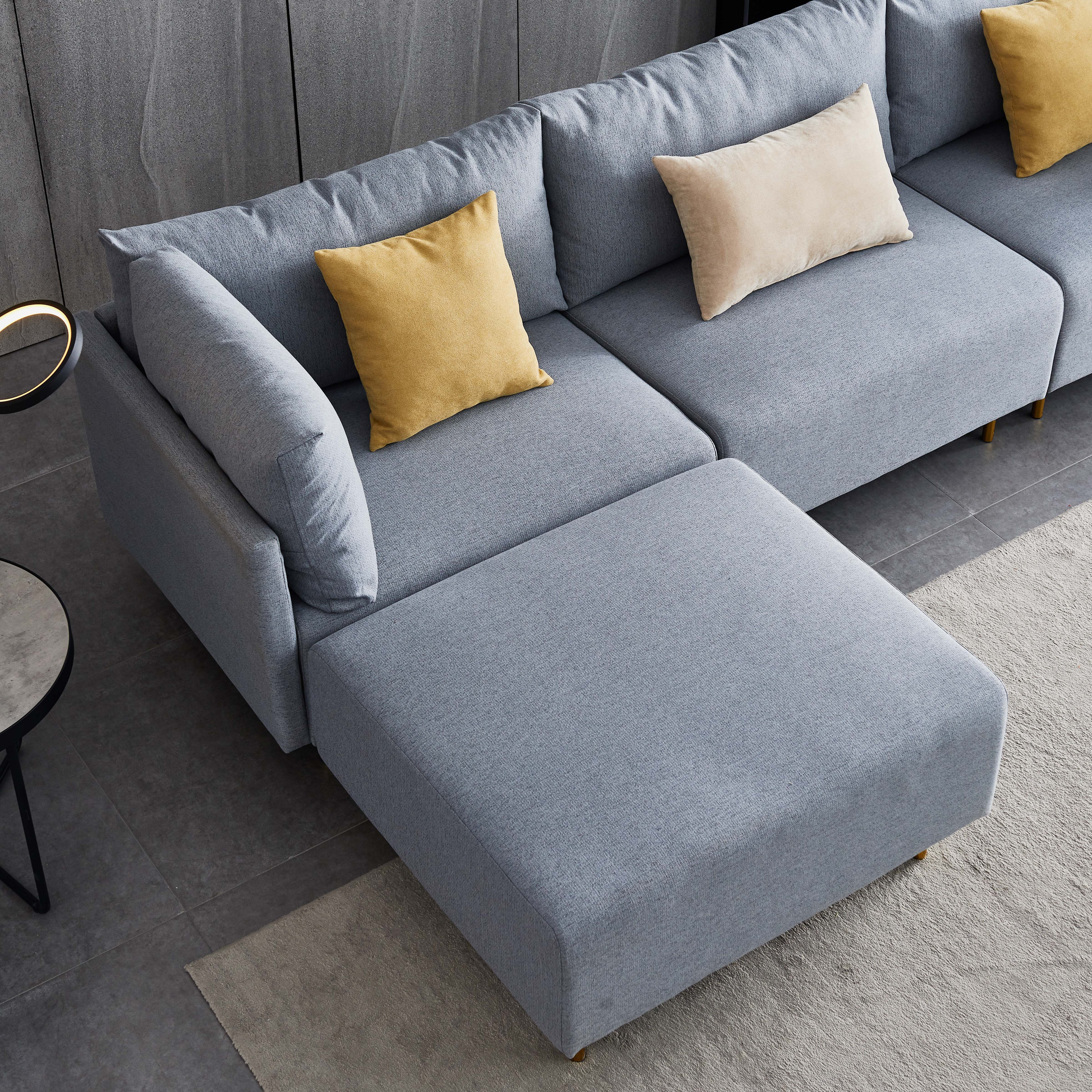 2. REVERSIBLE L-SHAPED SOFA - this sofa can be free combination.The ottoman moves left or right or middle according to your needs.Even the middle seat can be move as single seat.Then 3-person seat become 2-person‘s.Let you feel different space.The friendly design is very suitable for your home.