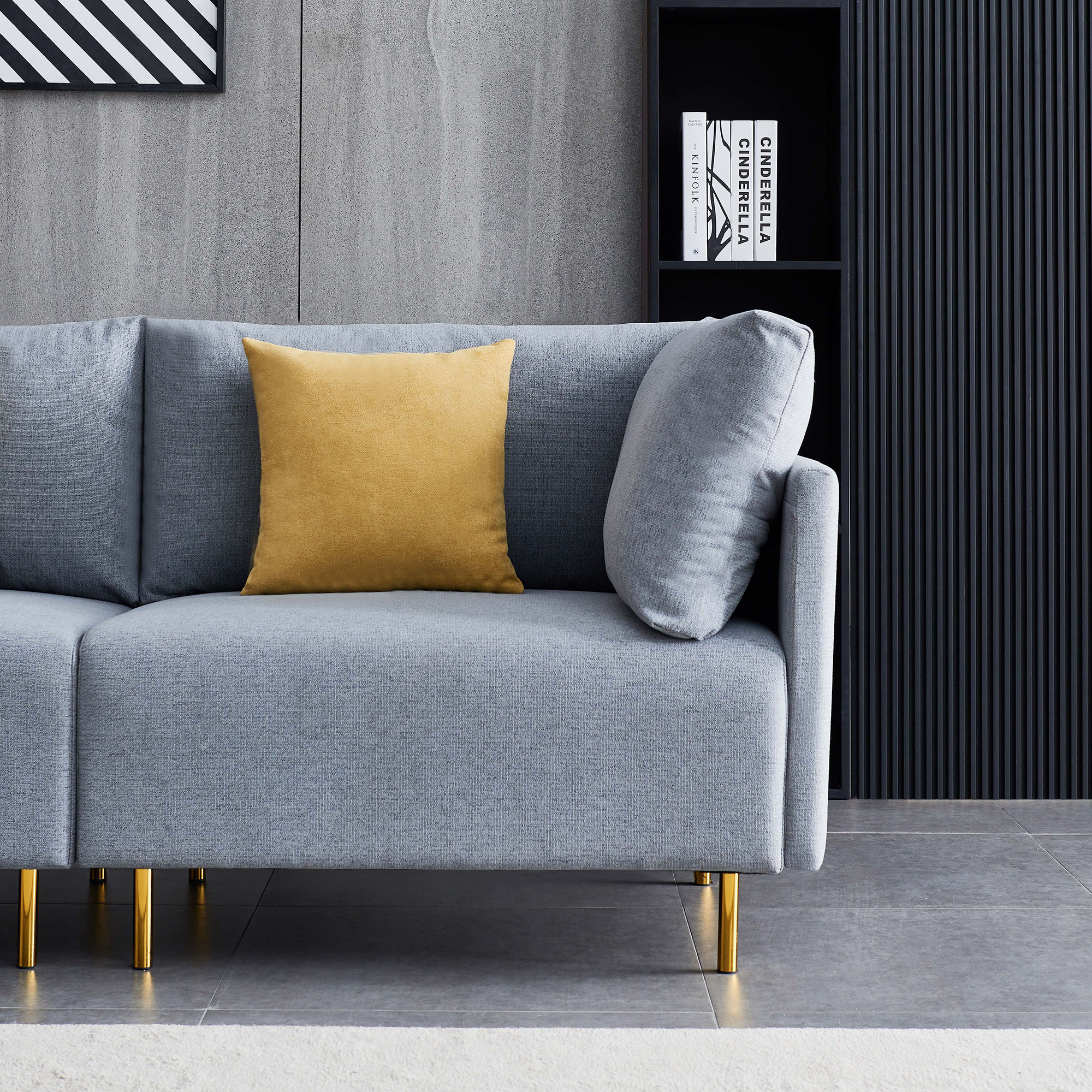 1. COMFORTABLE DESGN - solid wood frame, 100% polyester fabric, filled with high-quality sponge, making this sectional sofa beautiful and comfortable.It can be perfectly matched with your living room.3 pillows in different color bright the sofa.