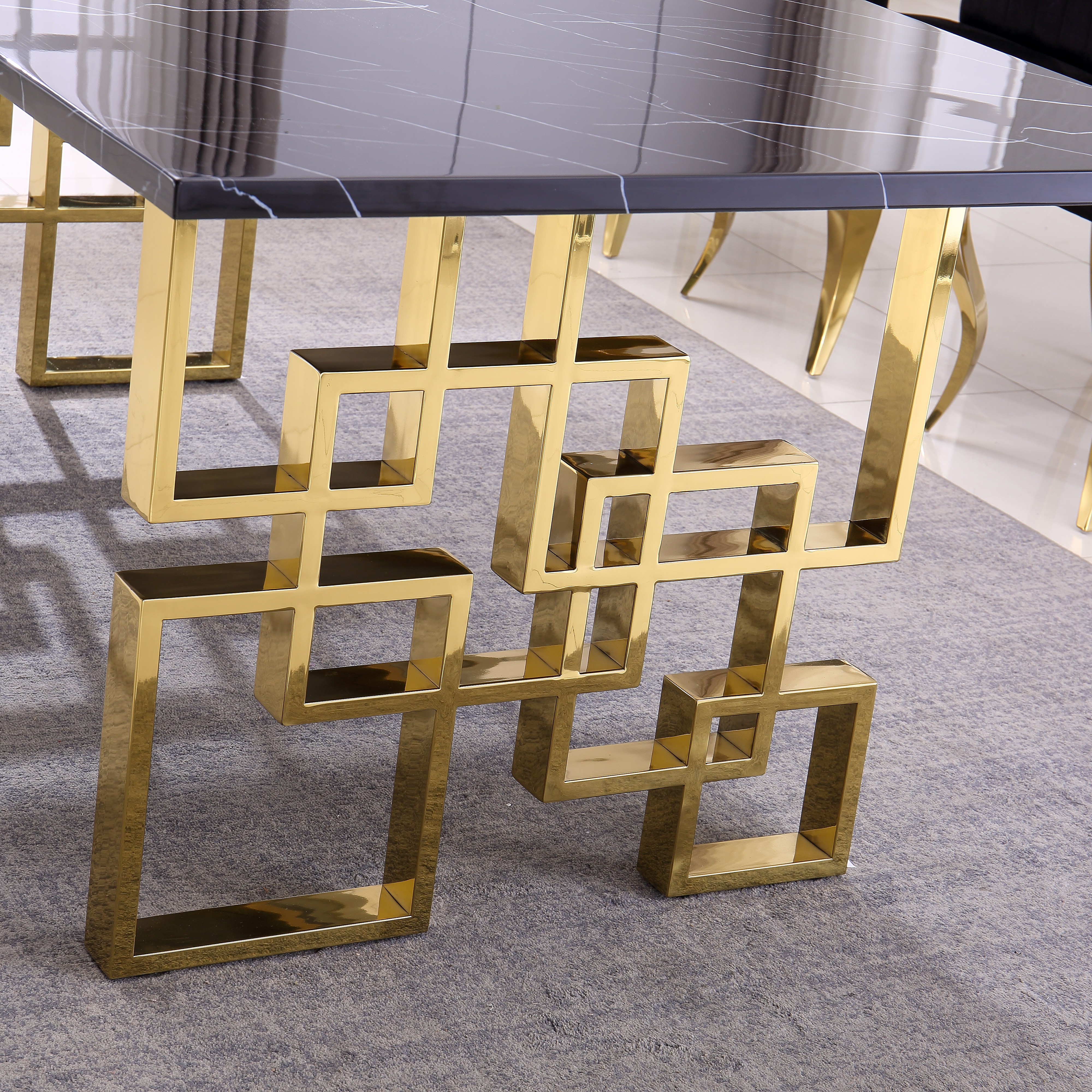 The Contemporary Marble Dining Table is a stylish table designed for classy modern interiors. The table's legs create a special square shape and the marble top makes the room feel luxurious. The perfect centerpiece for your dining room, an eye-catching design provides an atmosphere of nobility and elegance.