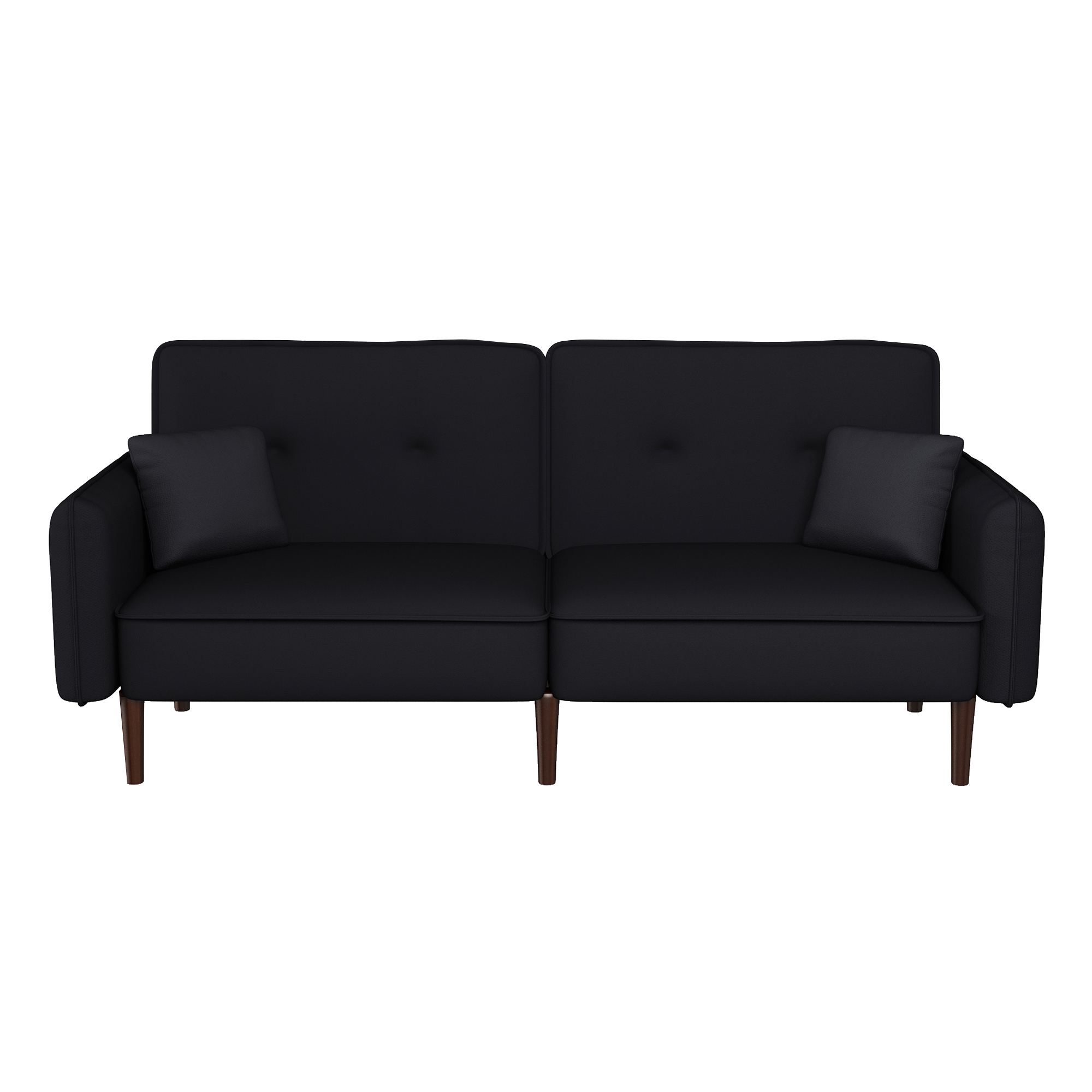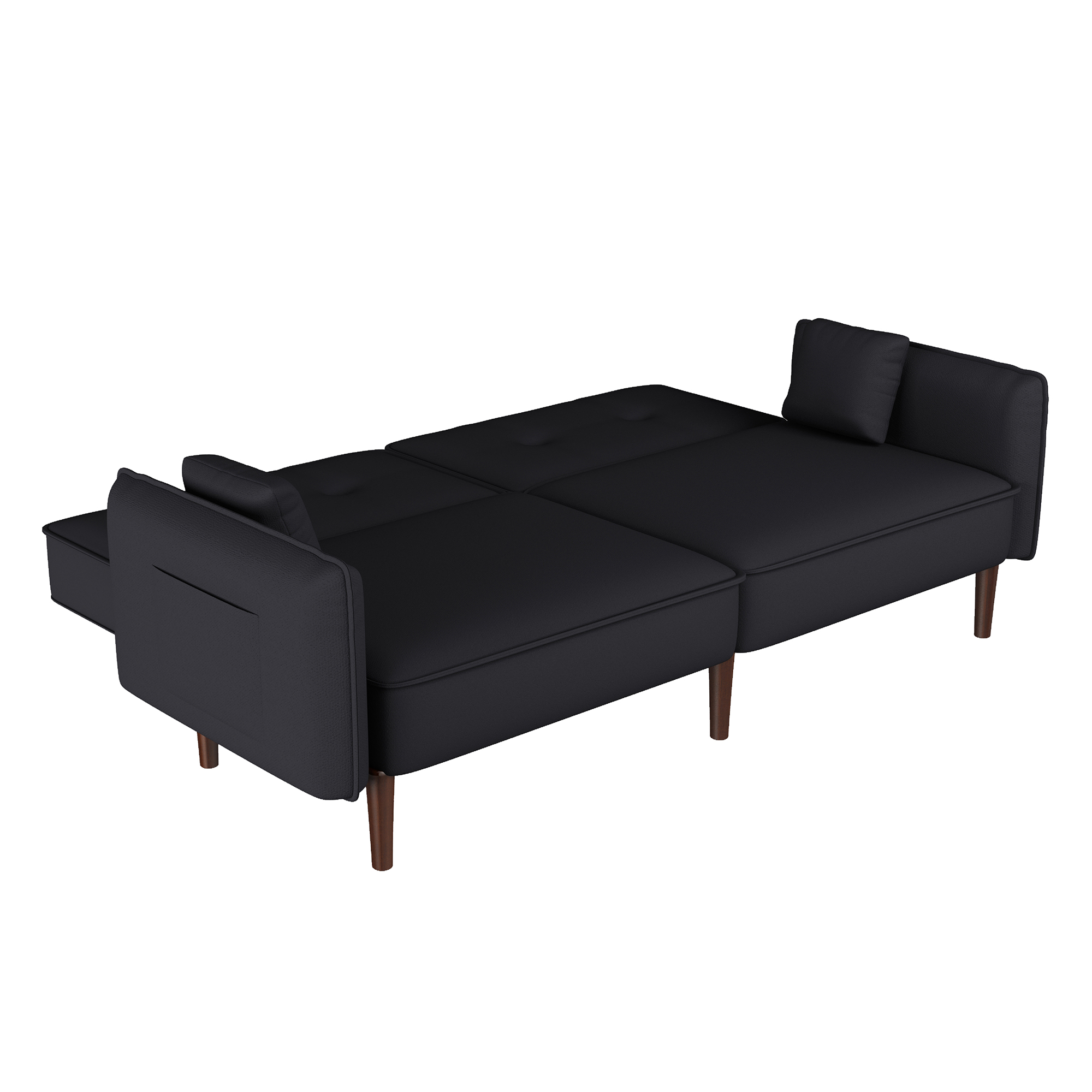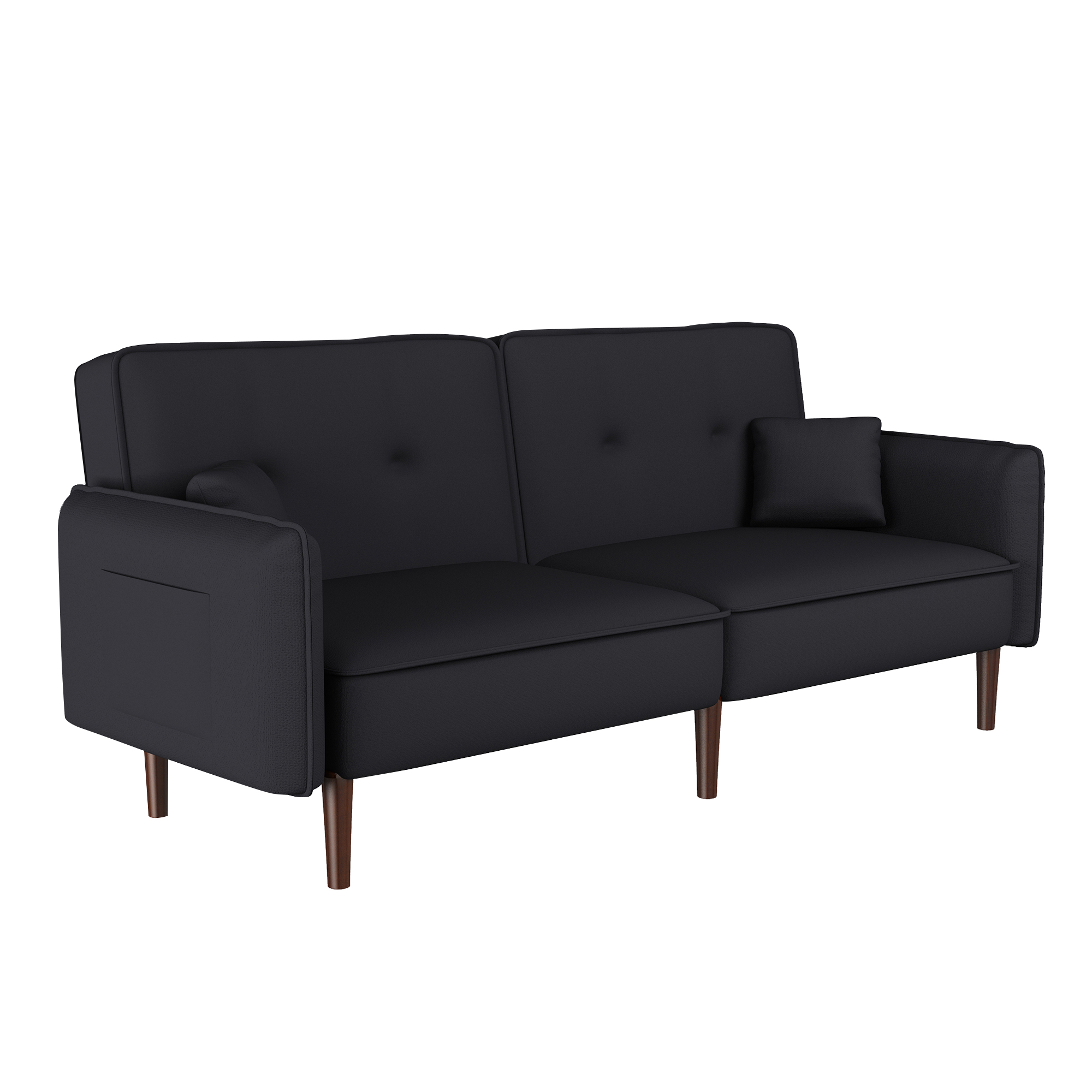 VERSATILITY: Perfect for small spaces, this futon sofa is great for any apartment or studio setting. EASY ASSEMBLY: All parts are located at the bottom of the sofa bed; remove the items from the box, attach the legs, and the sofa bed will be ready, which facilitates fast and easy installation.COMFORTABLE SUPPORT: This futon comes with high-quality foam & springs. Pair those with its soft fabric and three backrest settings, and a comfortable sleep awaits.SOLID WOODEN LEGS: Rubberwood sofa legs are included with this item, giving it a steady and sturdy feel that showcases top quality.EXTRA POCKETS: This futon includes two pockets (one on the left & right side of the armrest), providing users with hassle-free storage of small books or TV remotes. PRODUCT DIMENSIONS: The sofa dimensions are 75"L x 31"W x 30"H, and if the product is unfolded, the dimensions are 75"L × 39"W × 17.3"H. The weight capacity is 600lbs.