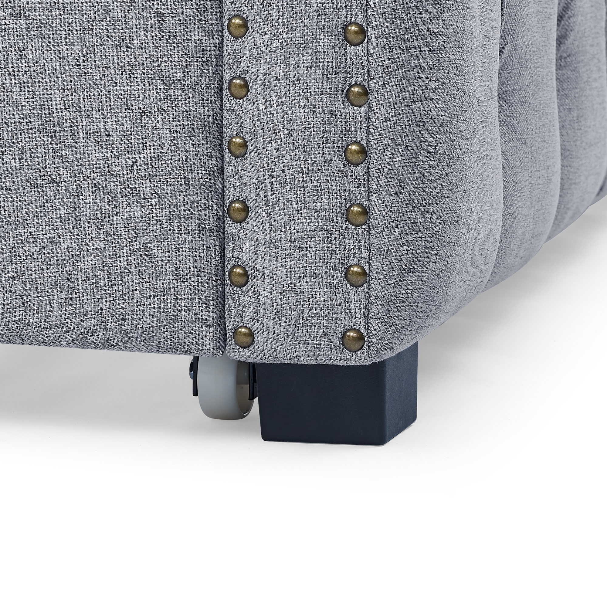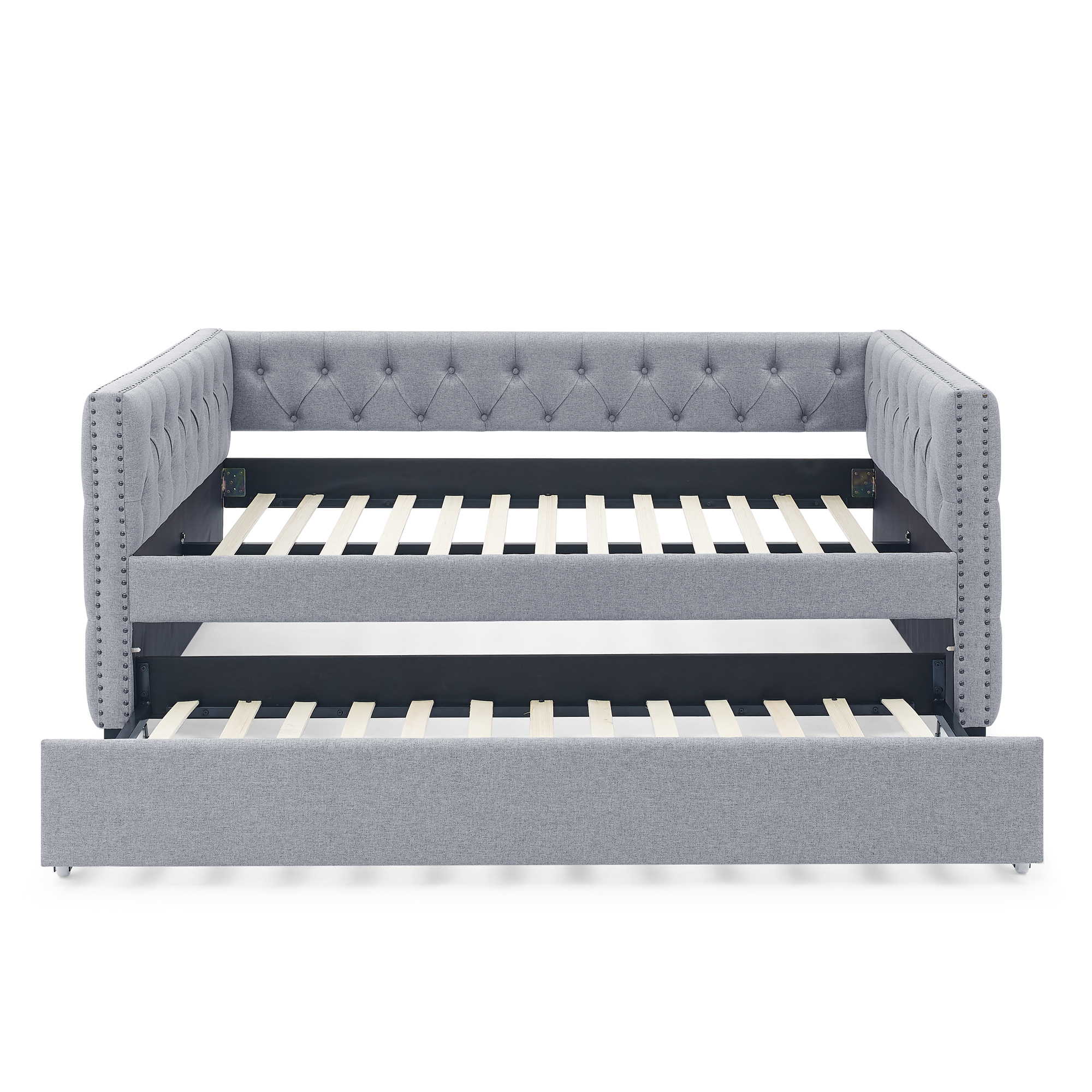 This mid-century-inspired daybed features a button-tufted armrest which creates an elegant look. Square arms decorated with nailhead trimming and edge fold design blend chic details with classic style. This daybed lends a sophisticated air to your home.