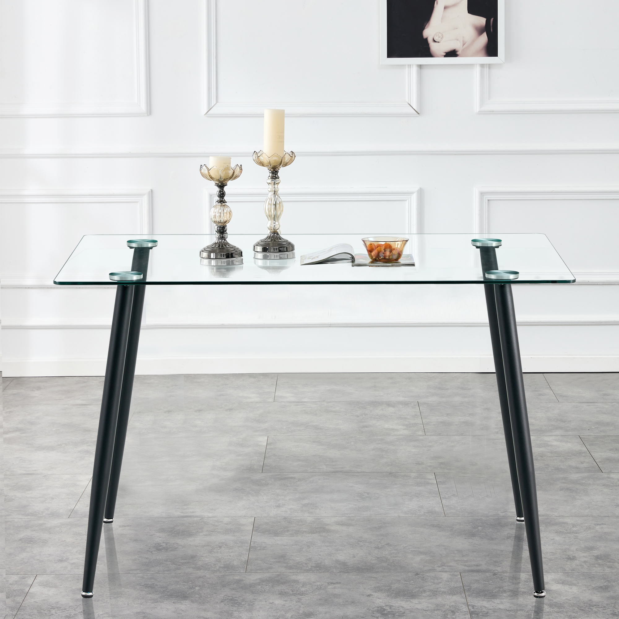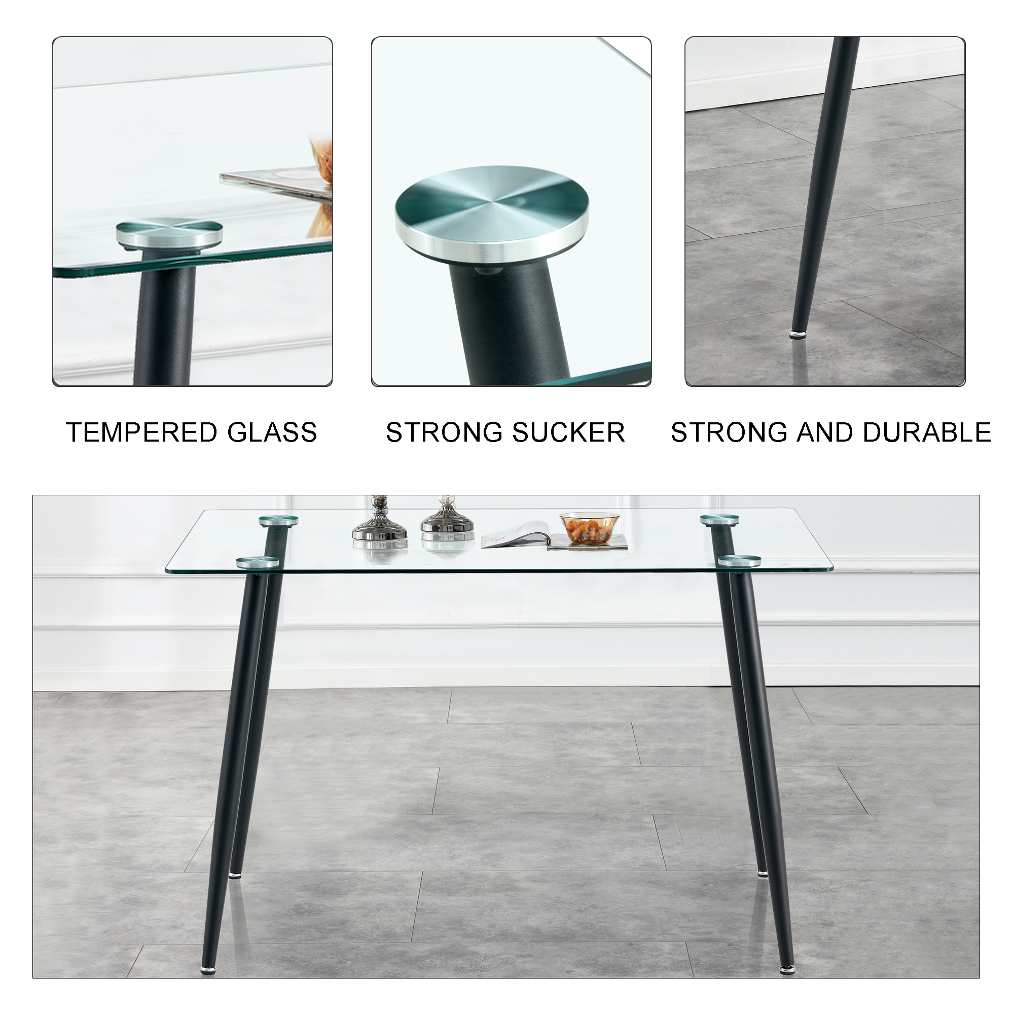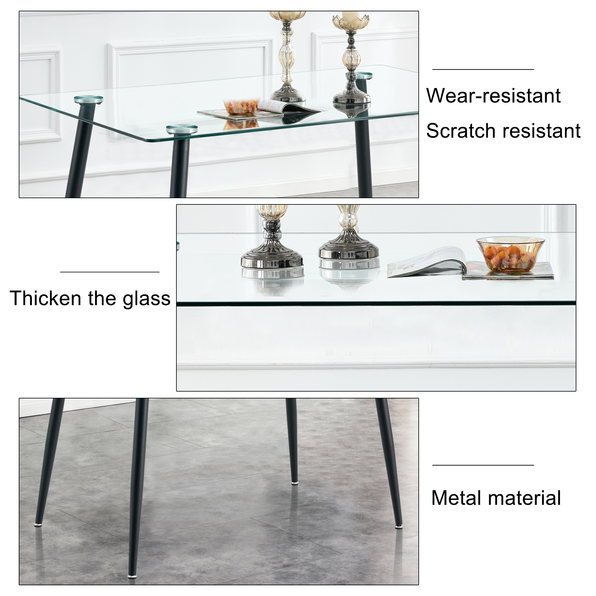 Dining chair 4-piece set and Glass Dining Table for 4-6 with 0.31" Tempered Glass Tabletop and Black Coating Metal Legs, 47" W x 31"D x 30"