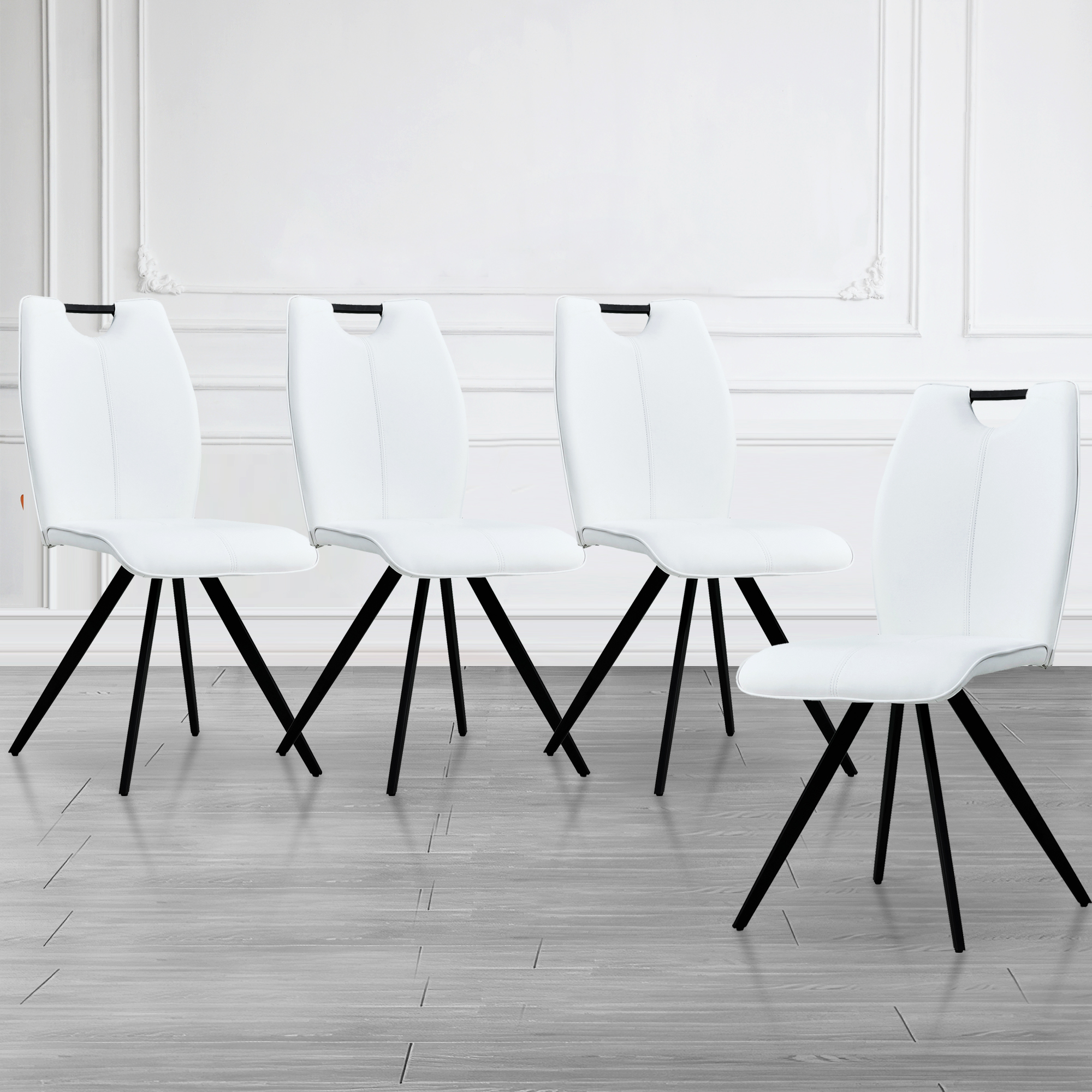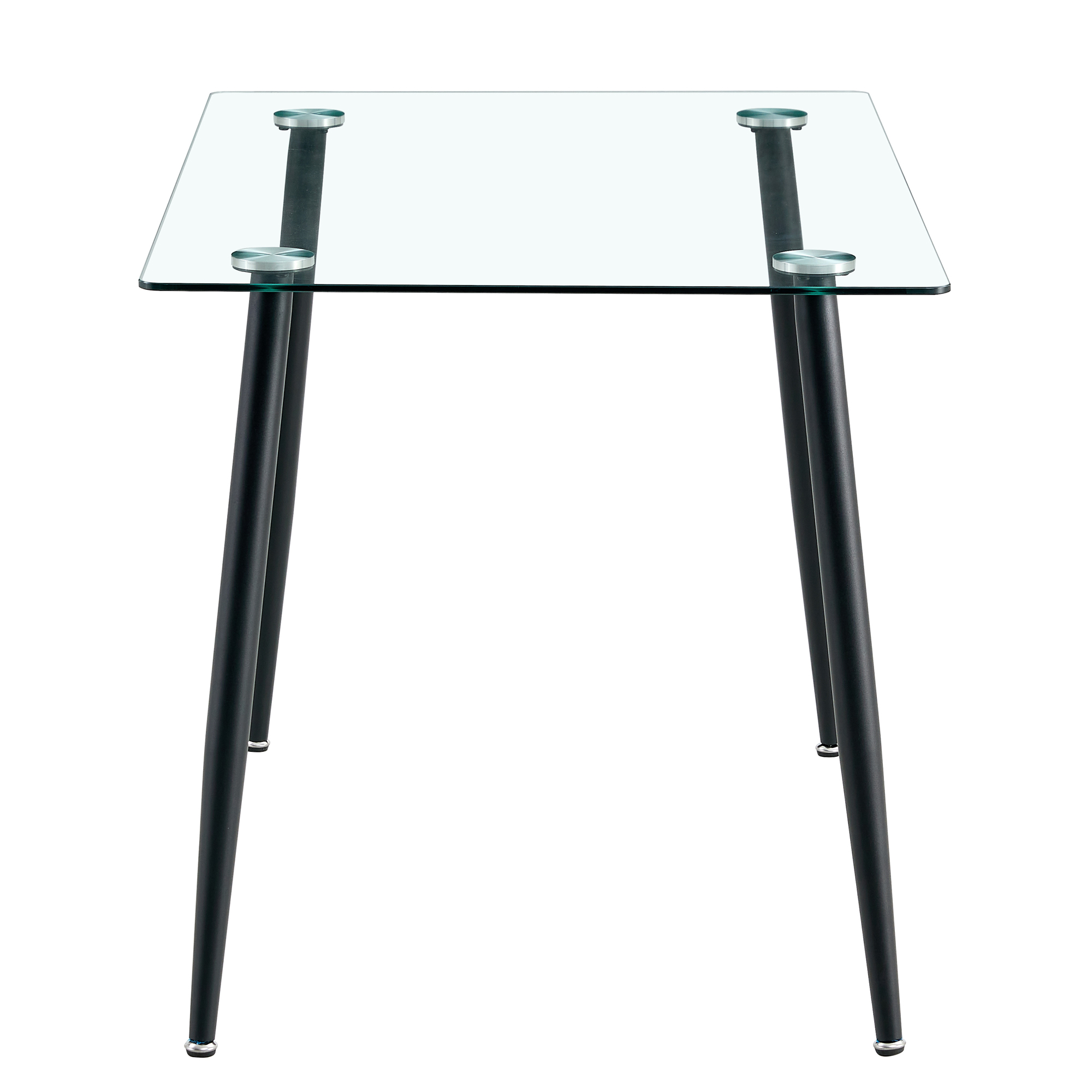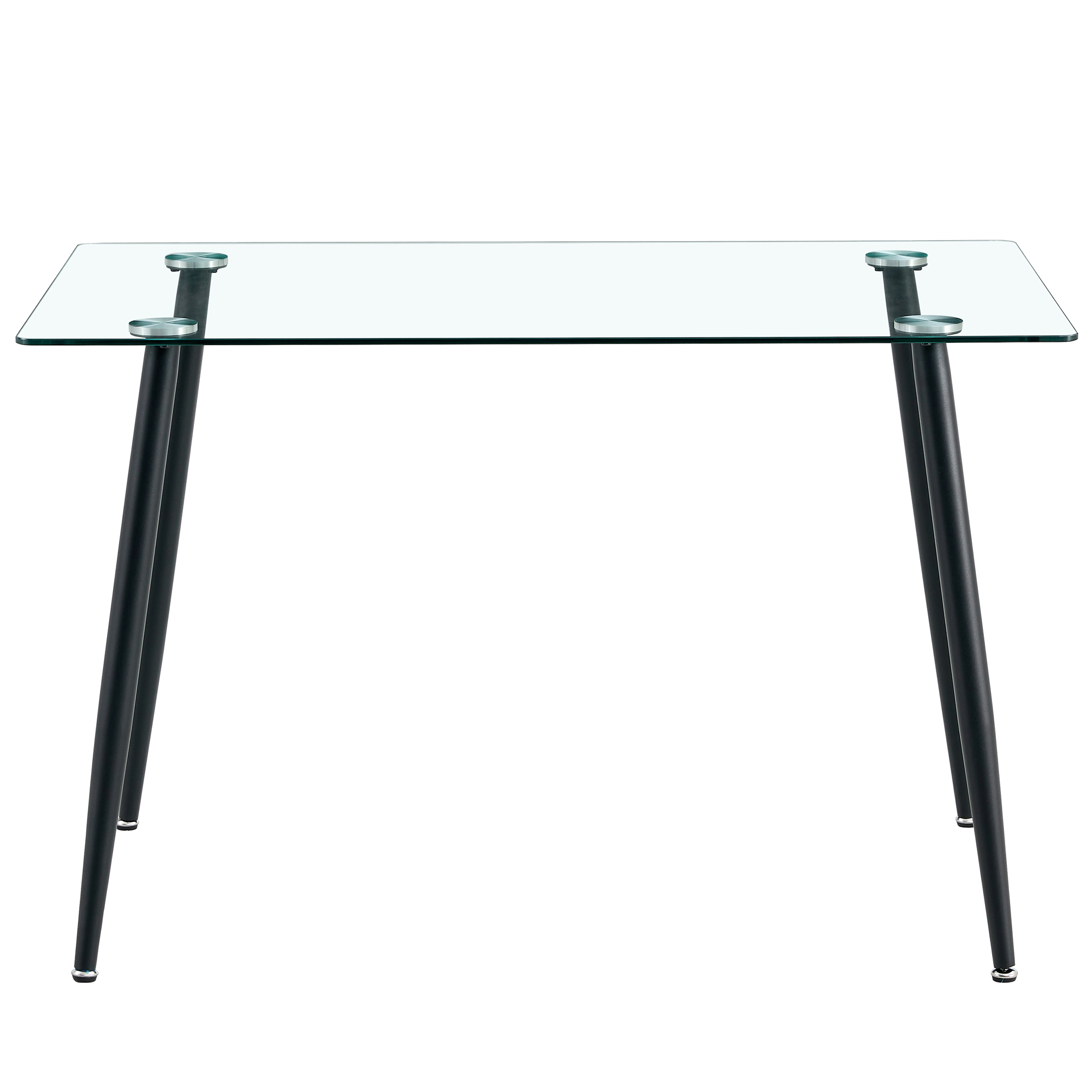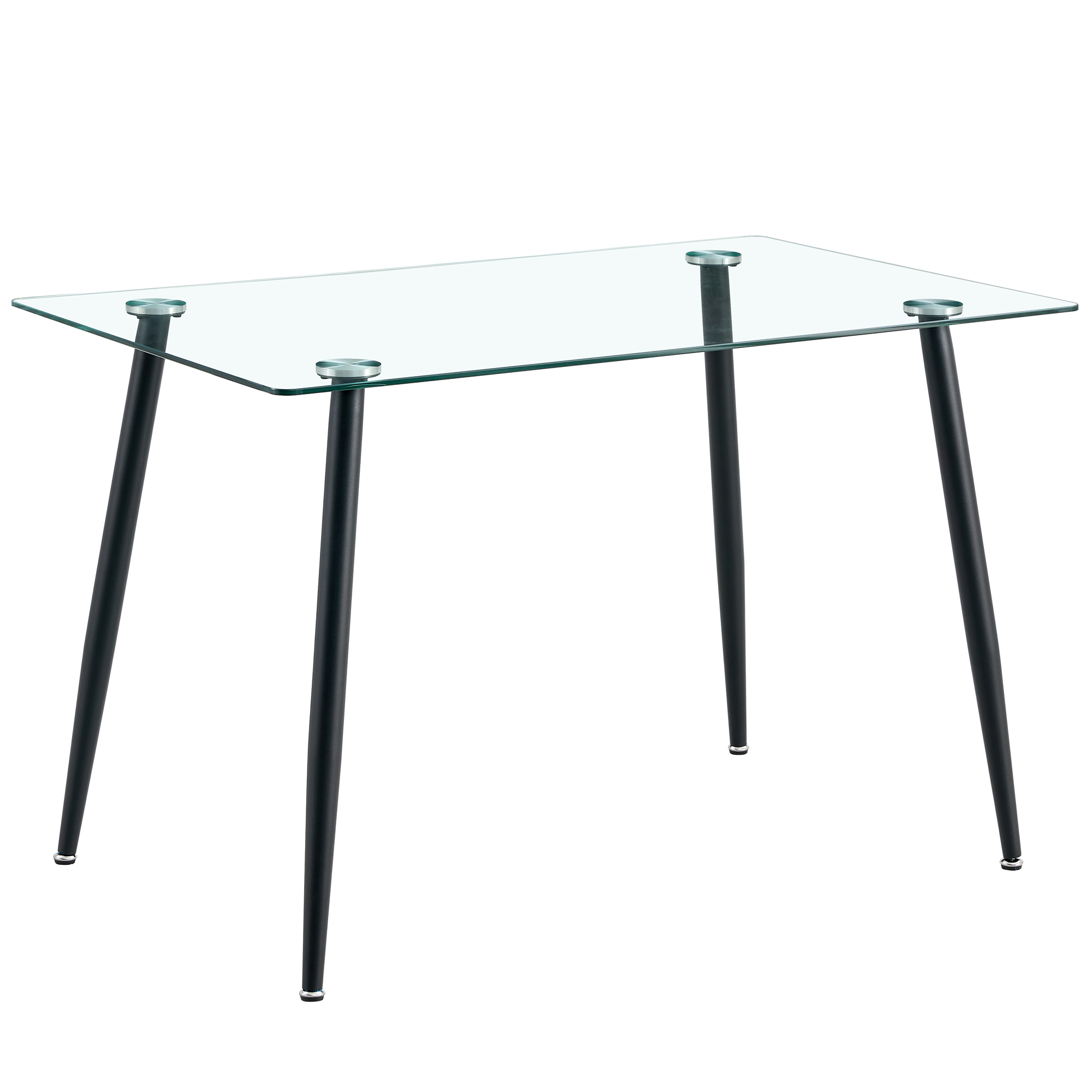 Dining chair 4-piece set and Glass Dining Table for 4-6 with 0.31" Tempered Glass Tabletop and Black Coating Metal Legs, 47" W x 31"D x 30"