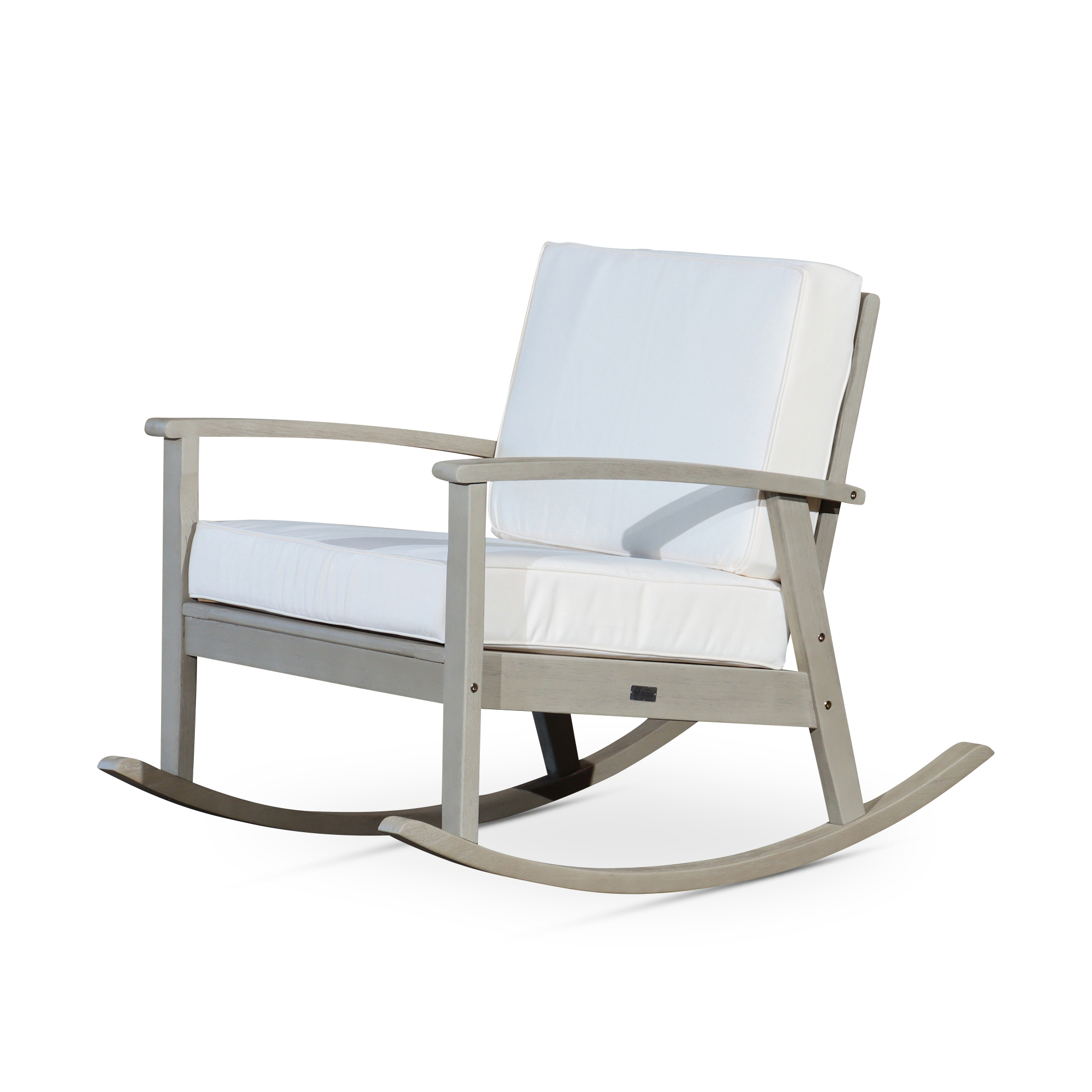 Eucalyptus Rocking Chair with Cushions, Driftwood Gray Finish, Cream Cushions