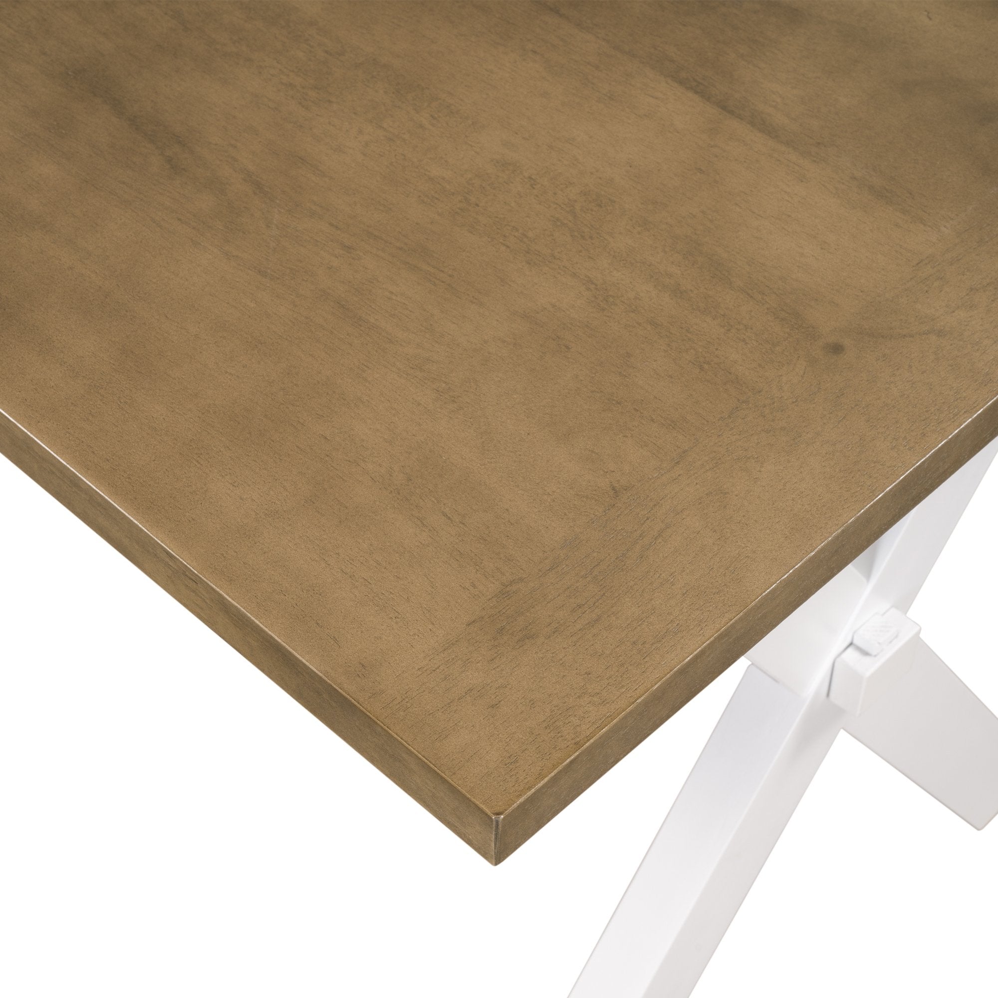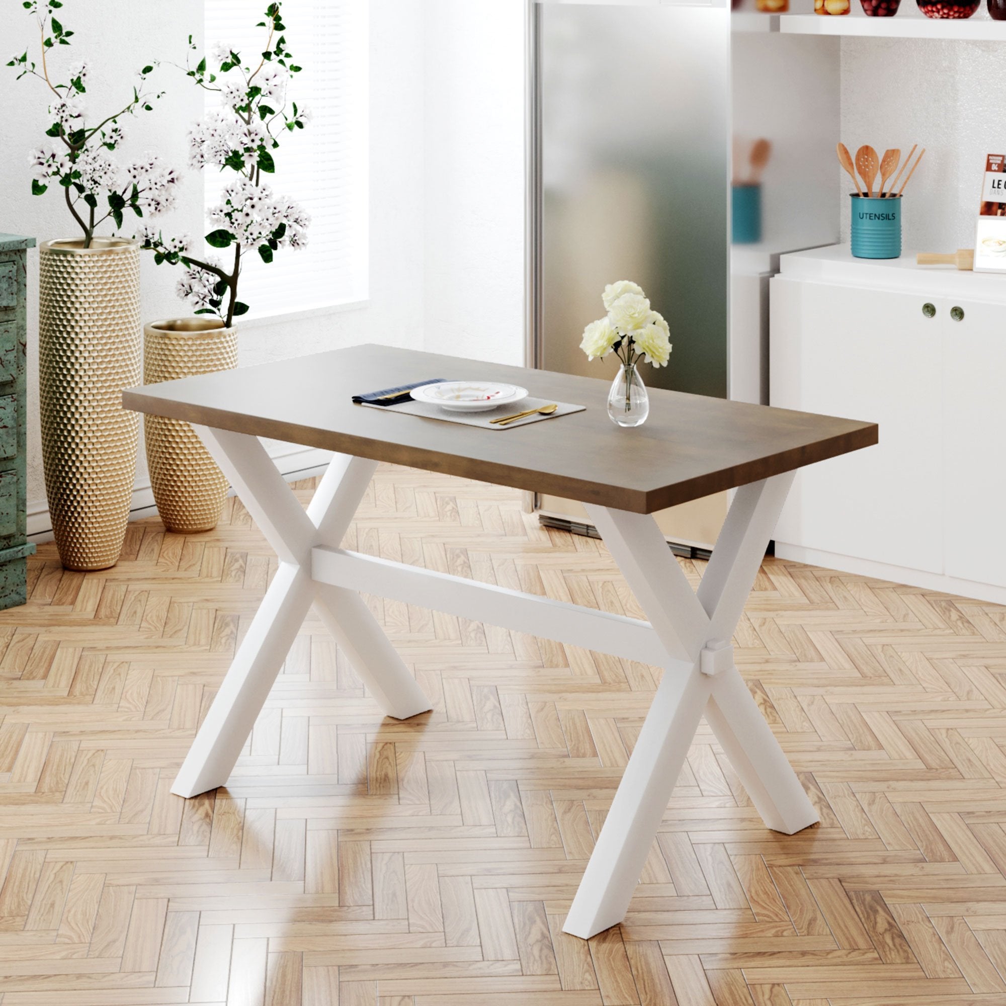 Farmhouse Rustic Wood Kitchen Dining Table with X-shape Legs, Brown+White
