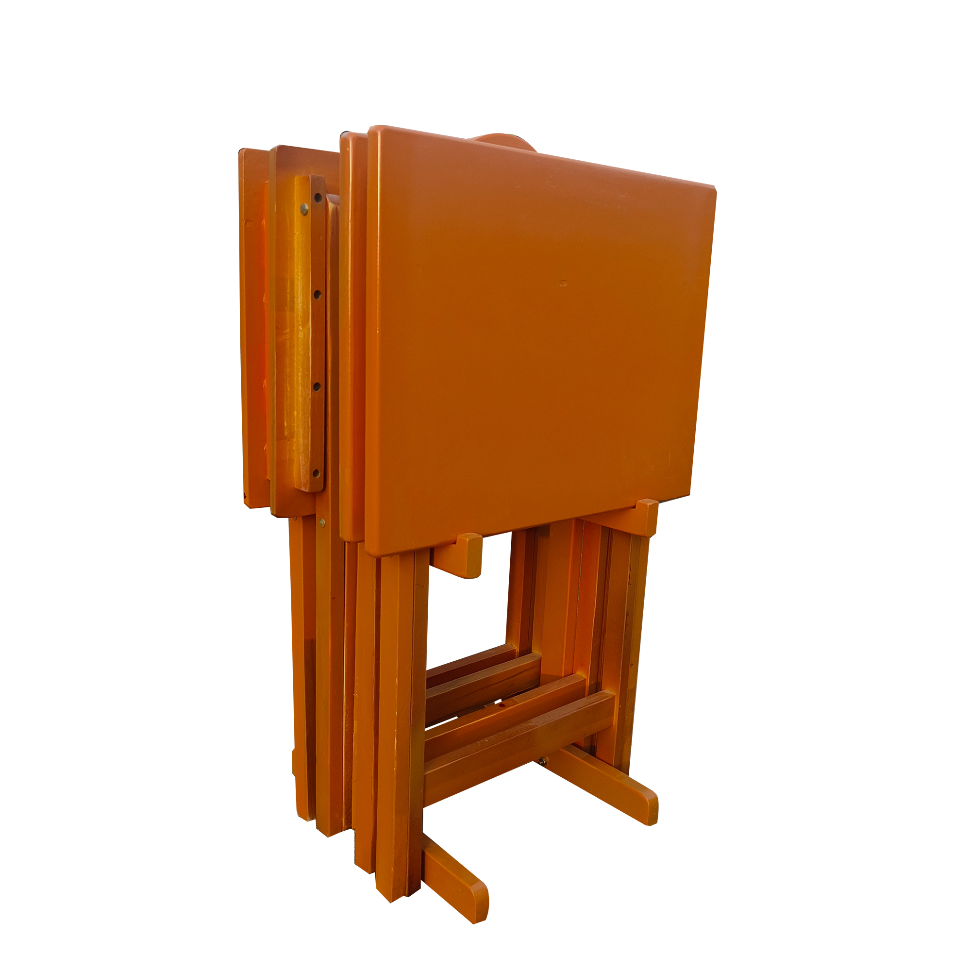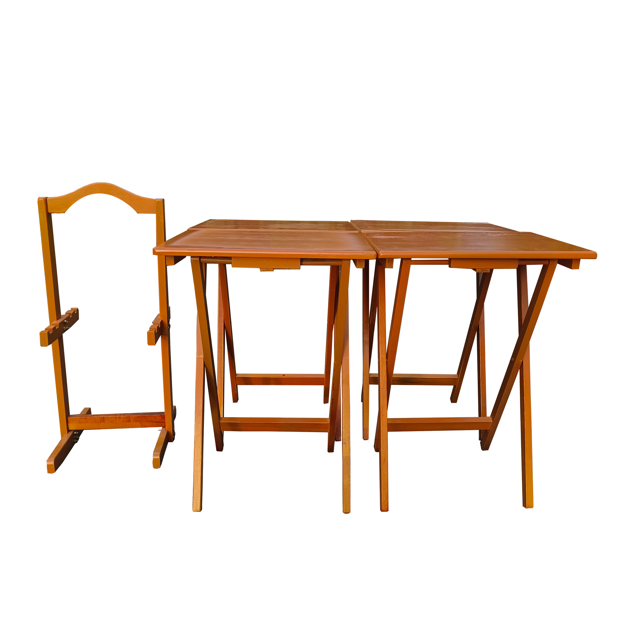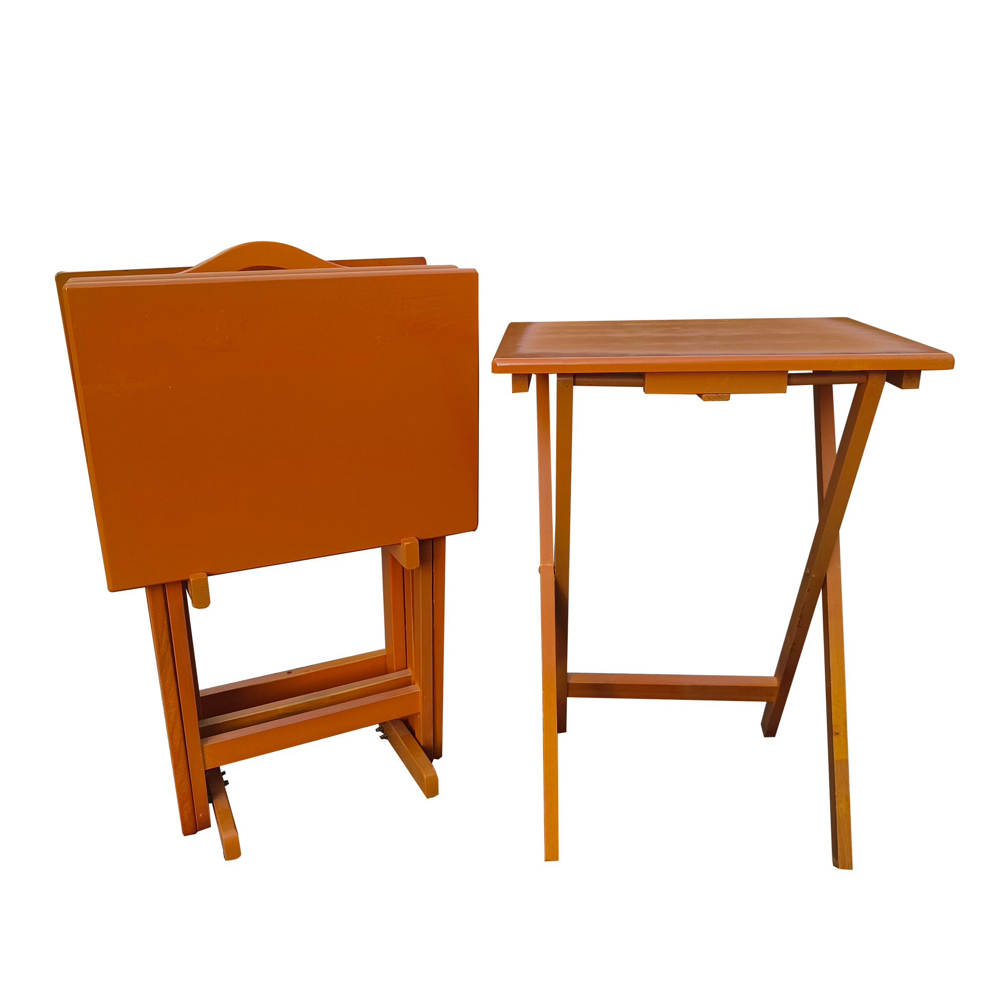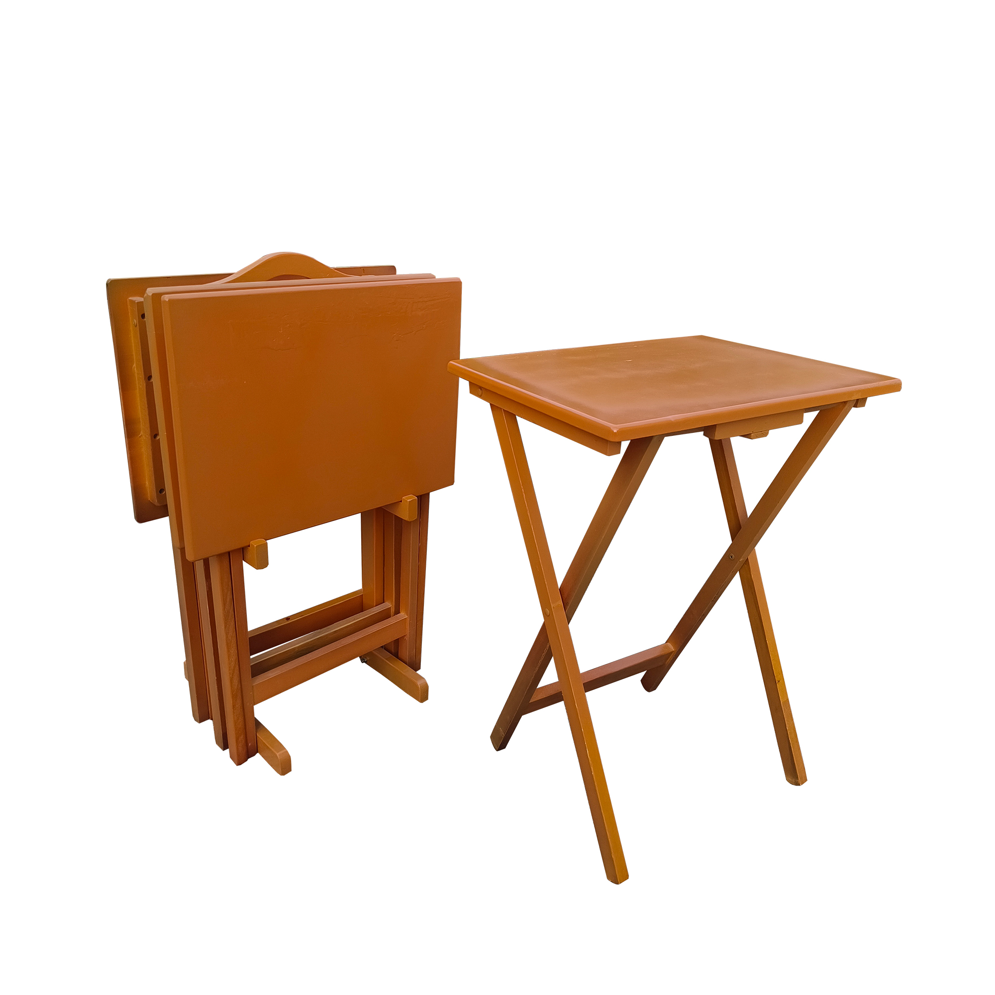 Folding Trays with Storage Rack,Snack Table - Set of 4,Chestnut