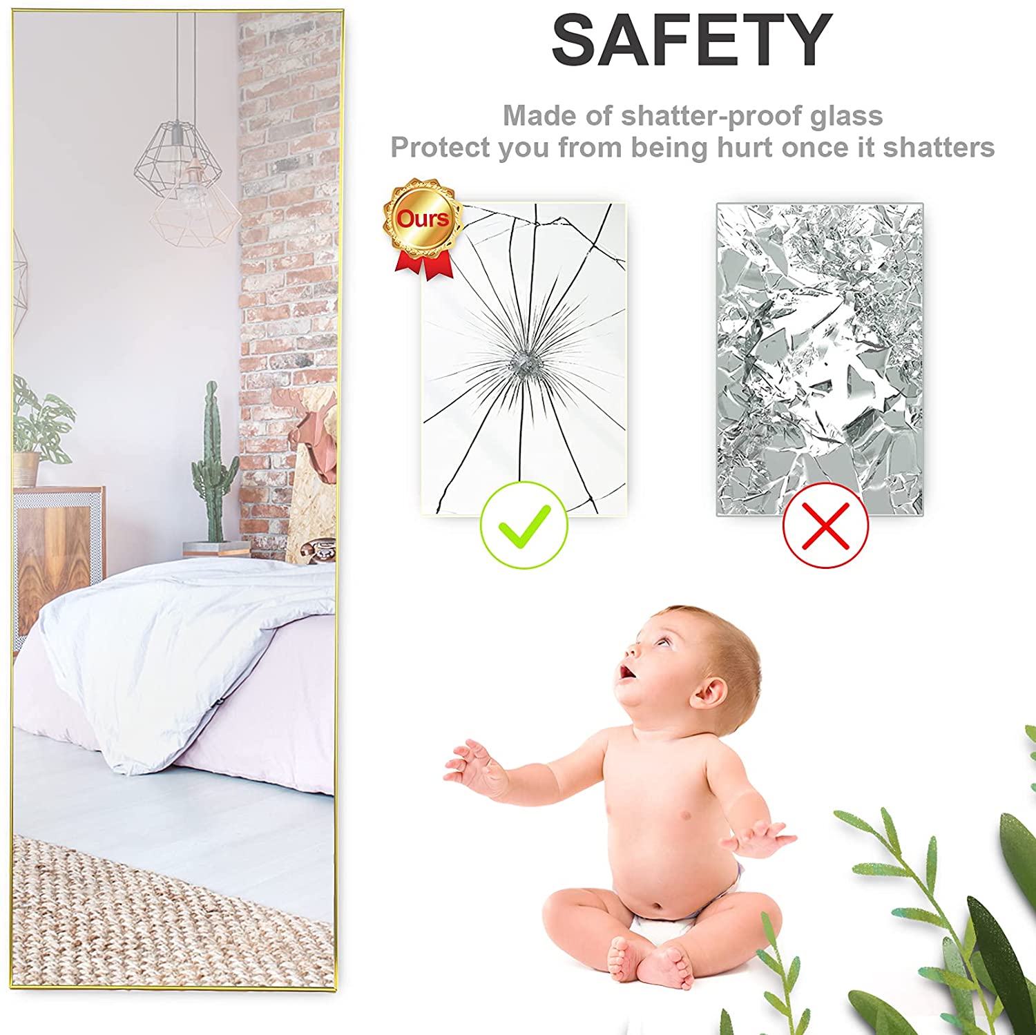 【Explosion-Proof】The frame is made of anti-rust aluminum alloy, sturdy and strong. The back of the floor mirror is covered with an explosion-proof membrane so that it is prevented from splashing and hurting your body when it is broken.