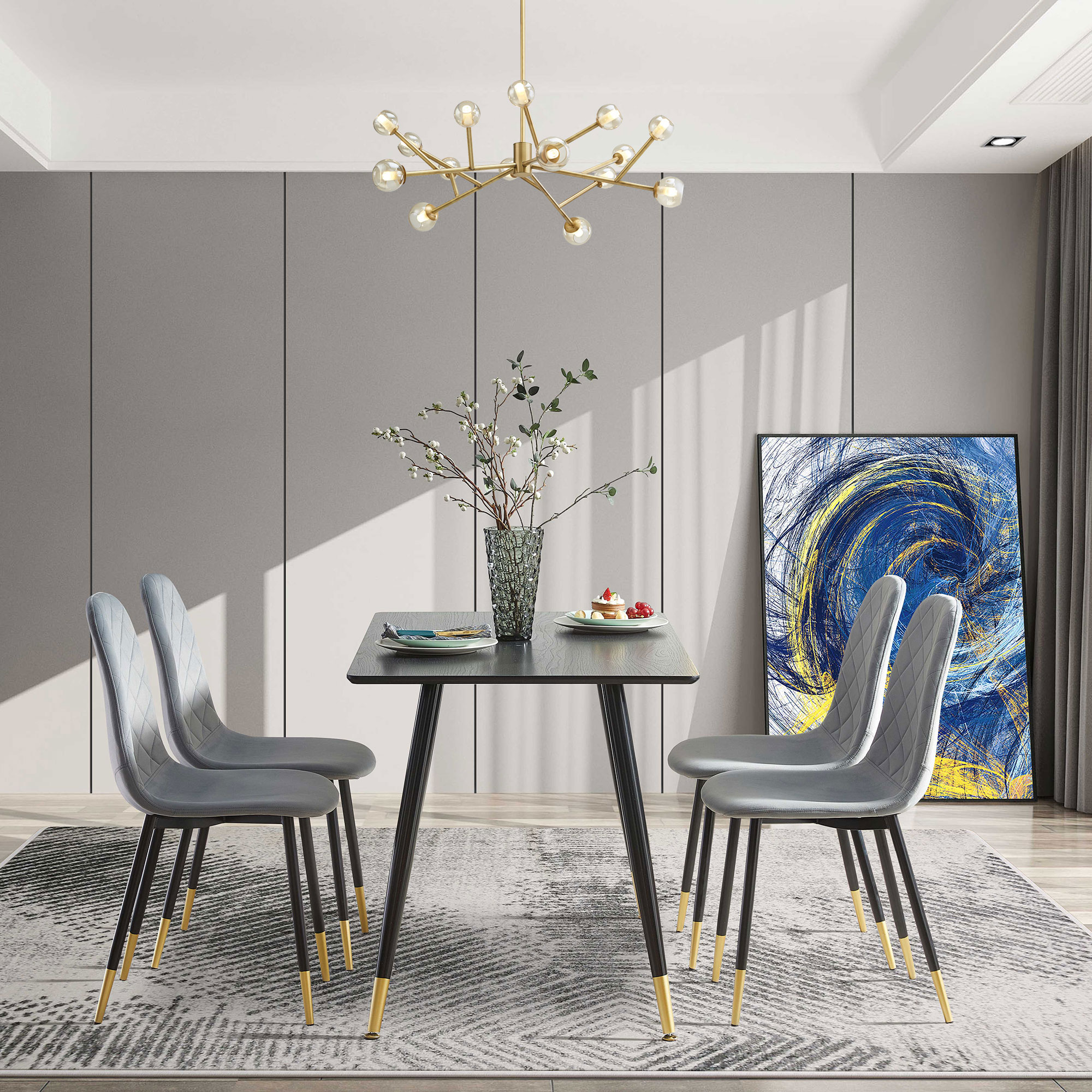Grey Velvet Tufted Accent Chairs with Gold Metal Legs, Modern Dining Chairs for Living Room,Set of 4