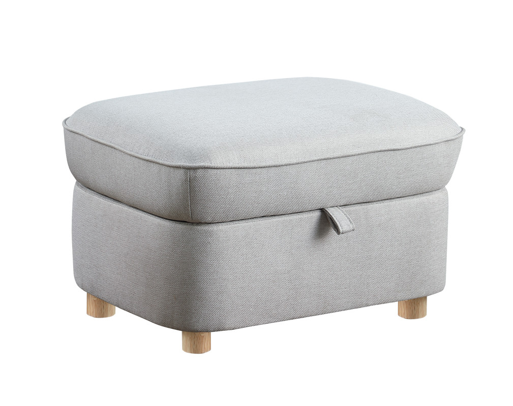Huckleberry's collection brings a chair and ottoman with storage in modern fashion. The chair's folding side table can hold your phone, books, coffee, remote, or other things that you find essential when it's time to unwind. Ample storage is also available under the ottoman's seat when lifted. Comfortable chair with extra support from the lumbar pillow. Both the chair and ottoman stand strong with wooden legs.Ottoman Dimension: 28.5"W x 20.5"D x 17"HStorage Dimension: 22"W x14.5"D x 6.75"HFolding Side Table Dimension: 5.75"W x 26"D1 Throw Pillow26" Seat Width17" Seat Height20" Seat Depth18.5" Back Height21.25" Arm Height2" Wooden Leg HeightPocket Coil SeatRemovable Seat and Back Cushion