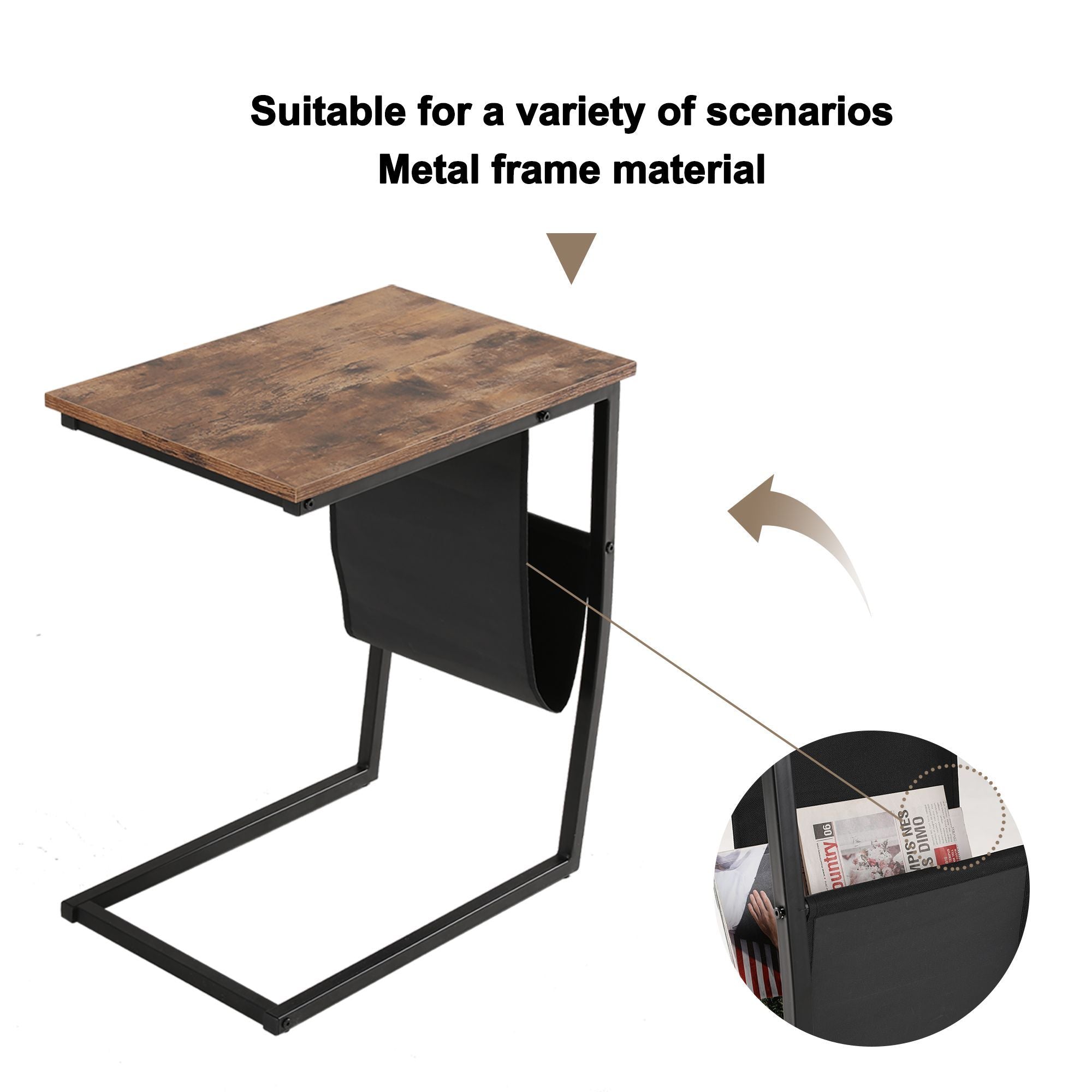 Industrial Side Table, Mobile Snack Table for Coffee Laptop Tablet, Slides Next to Sofa Couch, Wood Look Accent Furniture with Metal Frame