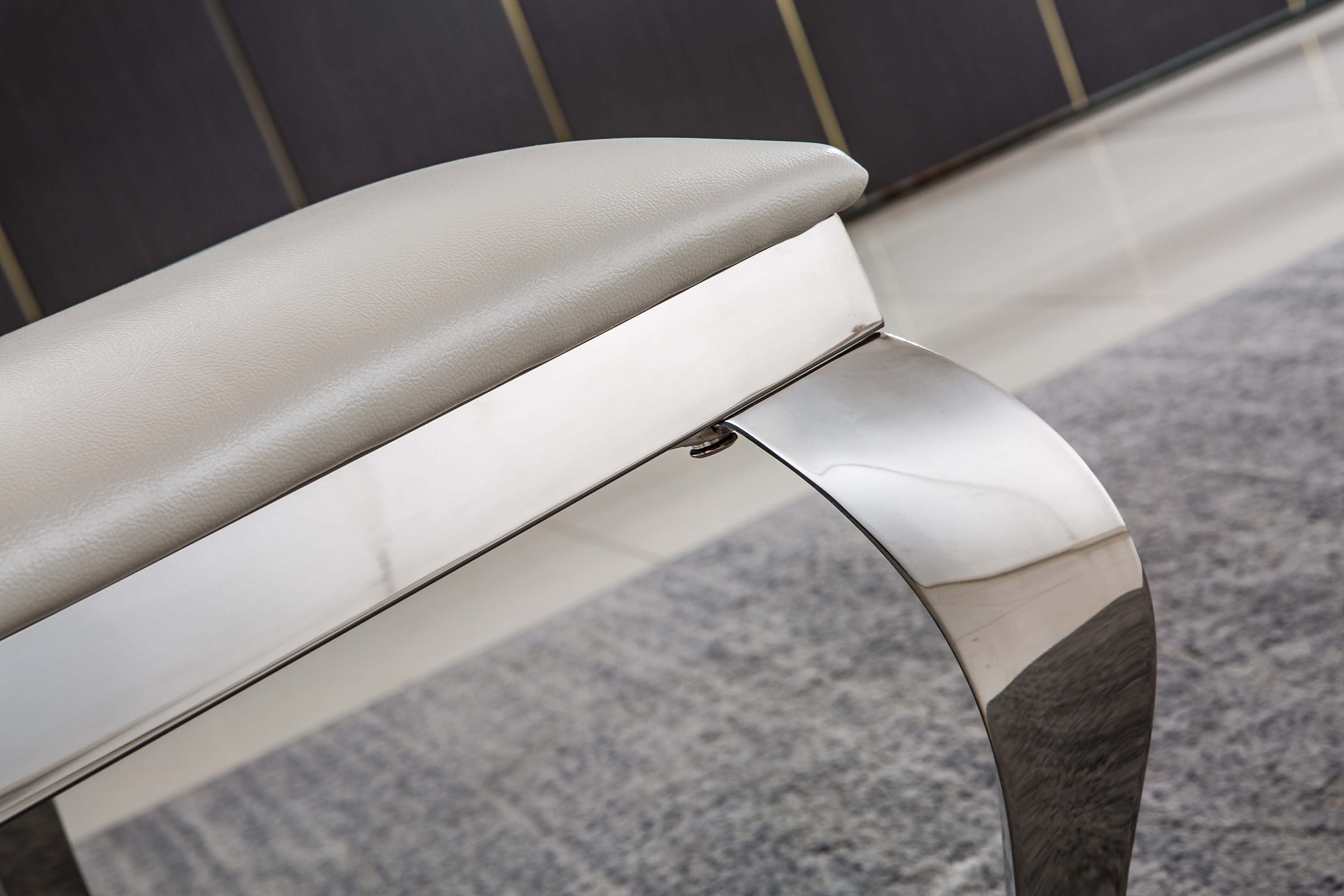 - Enjoy a hint of elegant modern style in this dining chair. The silhouette features a lovely oval seat back and ornate curved legs. Upholstery delivers a bright effect that contrasts with a silver mirrored finish frame. Lift the personality of any space with this exceptional dining chair.- The skin-friendly leather cushion and backrest gives you a comfortable sitting experience. Enjoy the dining time or leisure time with this dining chair.- This dining room accent chair, in fashionable and classic style, is suitable for various scenarios like kitchen, living room, bedroom, dressing room, vanity room, etc. This is the best choice for decorating a room or giving gifts to families and friends.- Four chair legs are silver mirrored finished, sturdy and durable. We provide 5 kinds of style to choose from, choose the one that pairs with your home decoration and add a perfect addition to your home.