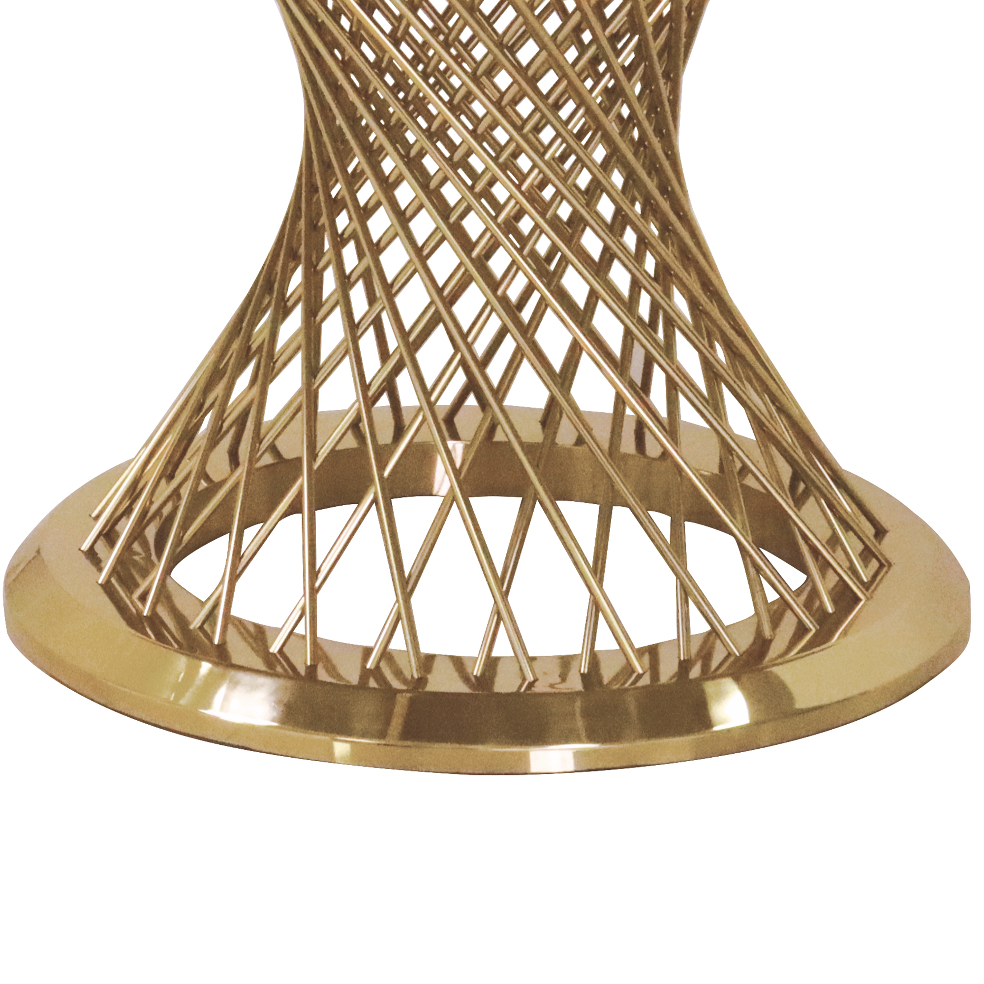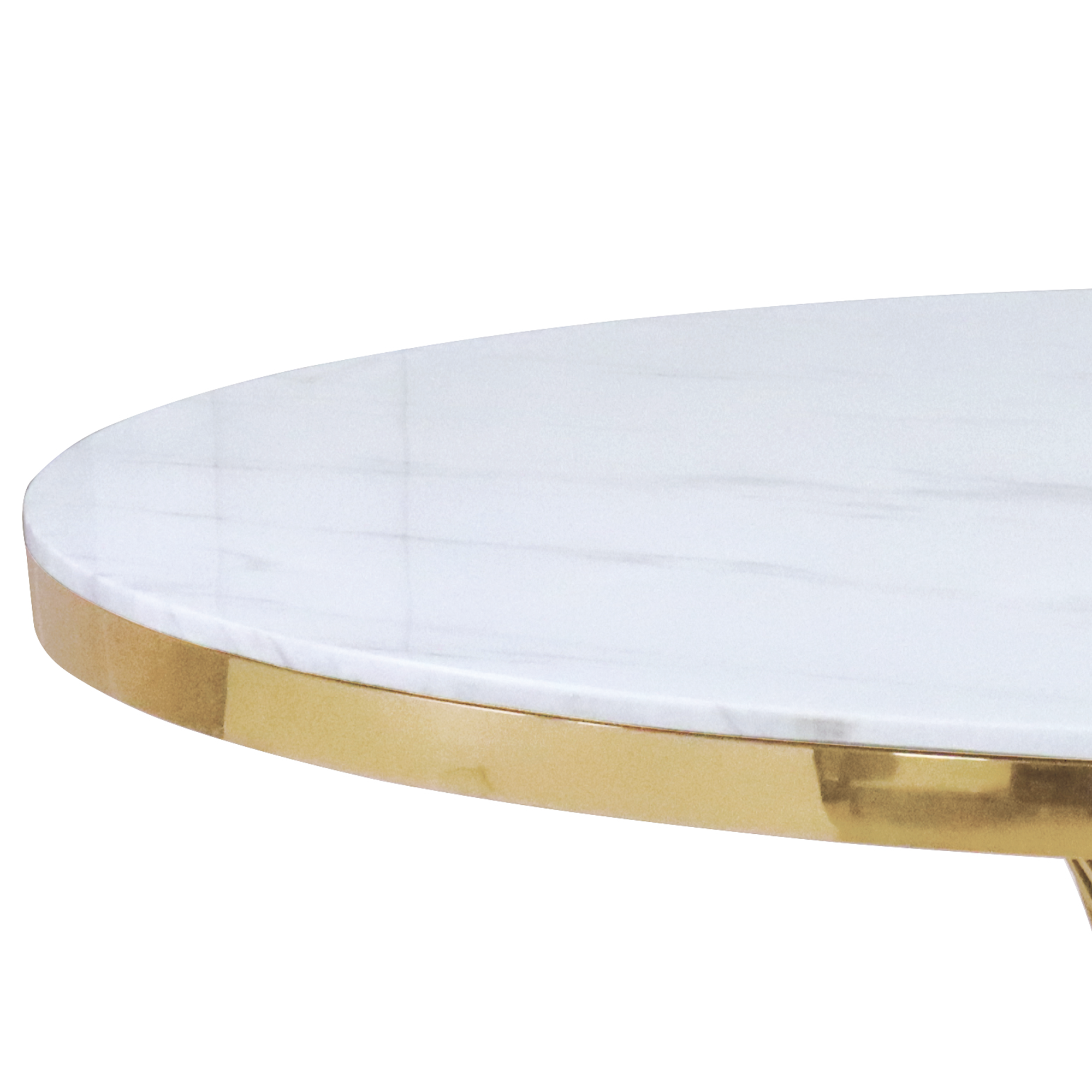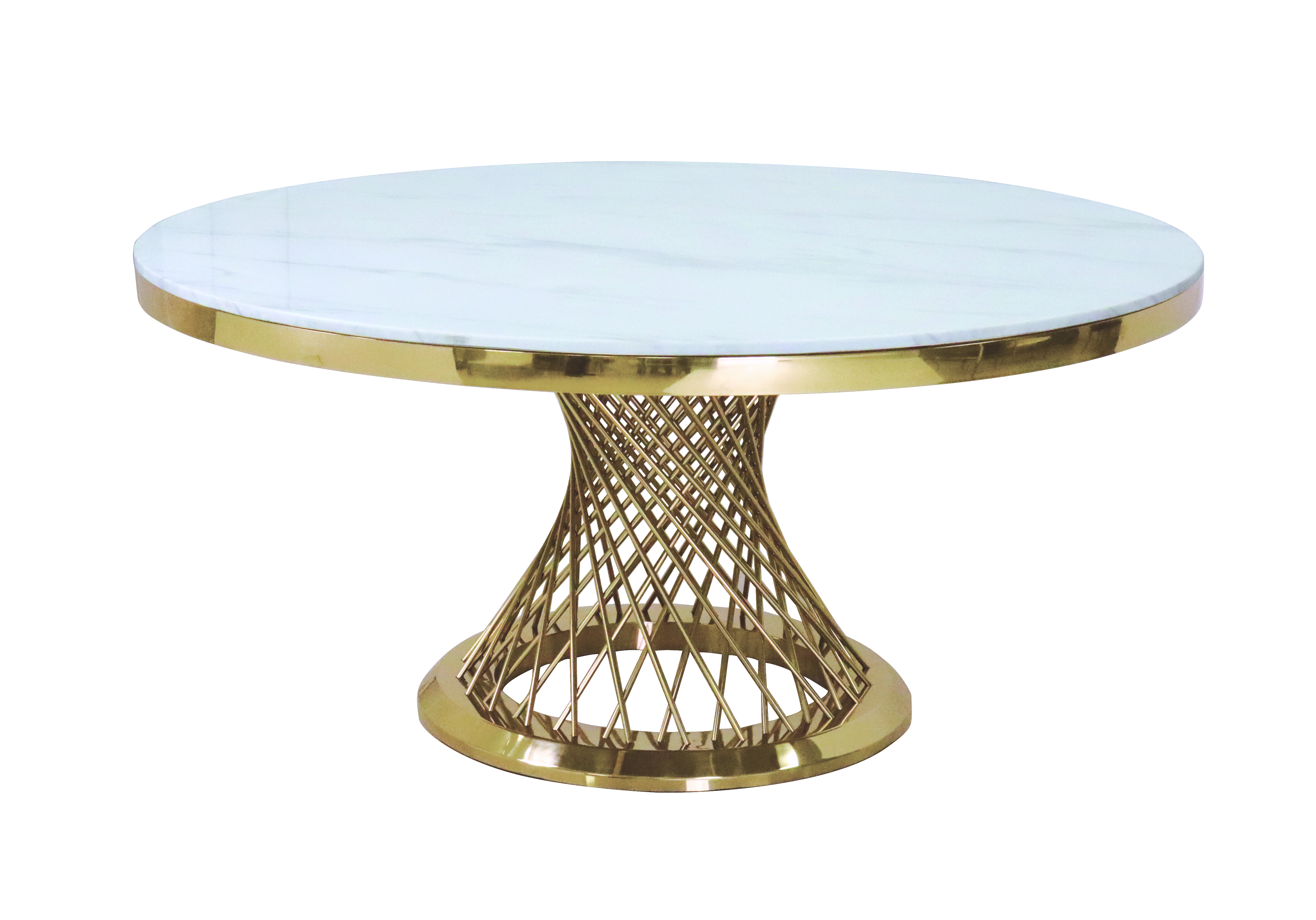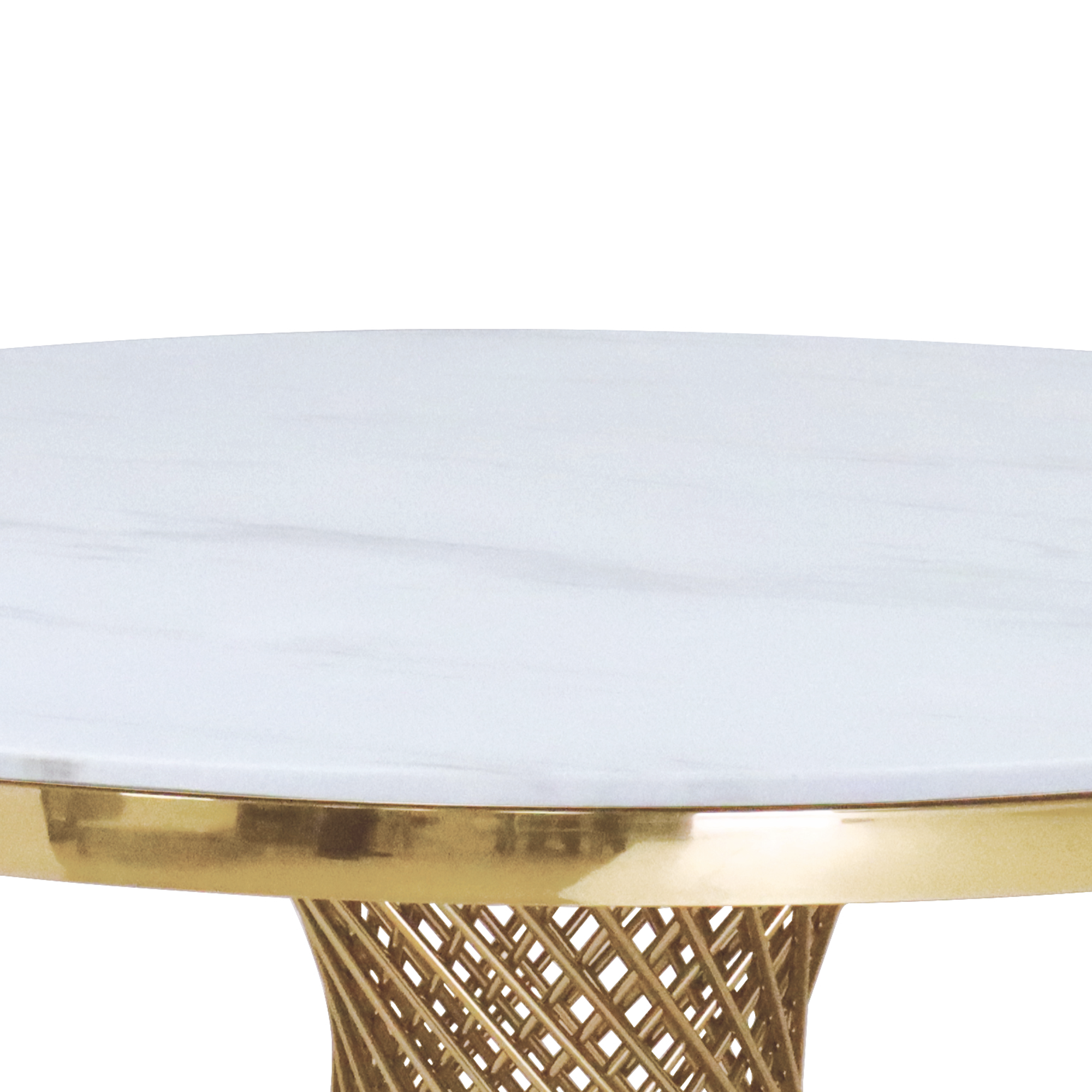 Round dining table of luxurious design with fixed 0.71" white marble top and smooth edges. Its original gold finish stainless steel base is one of the key elements to highlight in its design. A perfect table to bring elegance and avant-garde style to your kitchen, living room, or dining room.• LUXURIOUS STYLE: The modern design finish of this dining table is ideal to combine with the latest trends in decoration. The combination of white marble and gold mirrored finish gives a luxurious style.