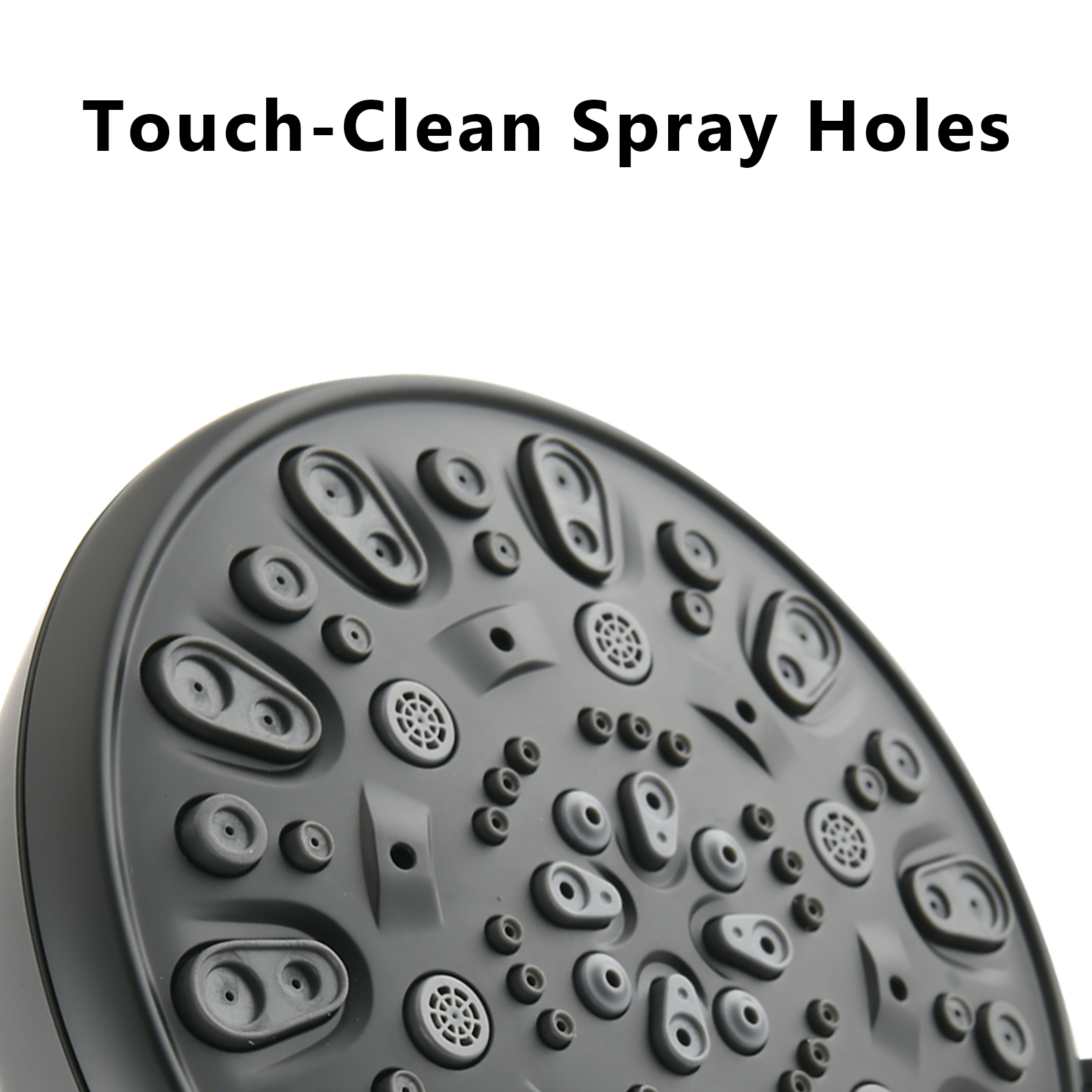 - The easy to clean surface of the 5-inch rain shower head's ABS nozzle makes it a low maintenance shower head because of its rust resistance and resistance to water deposits (such as lime scale). Humanized large mode controller design, easy to switch.