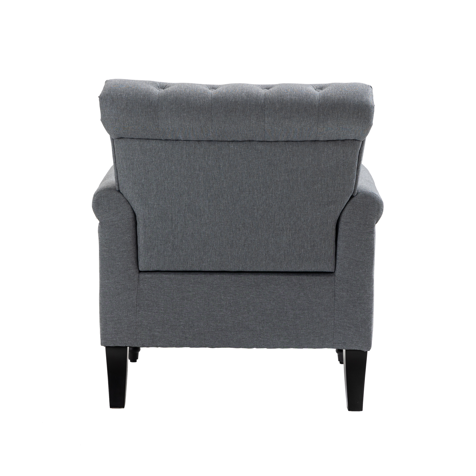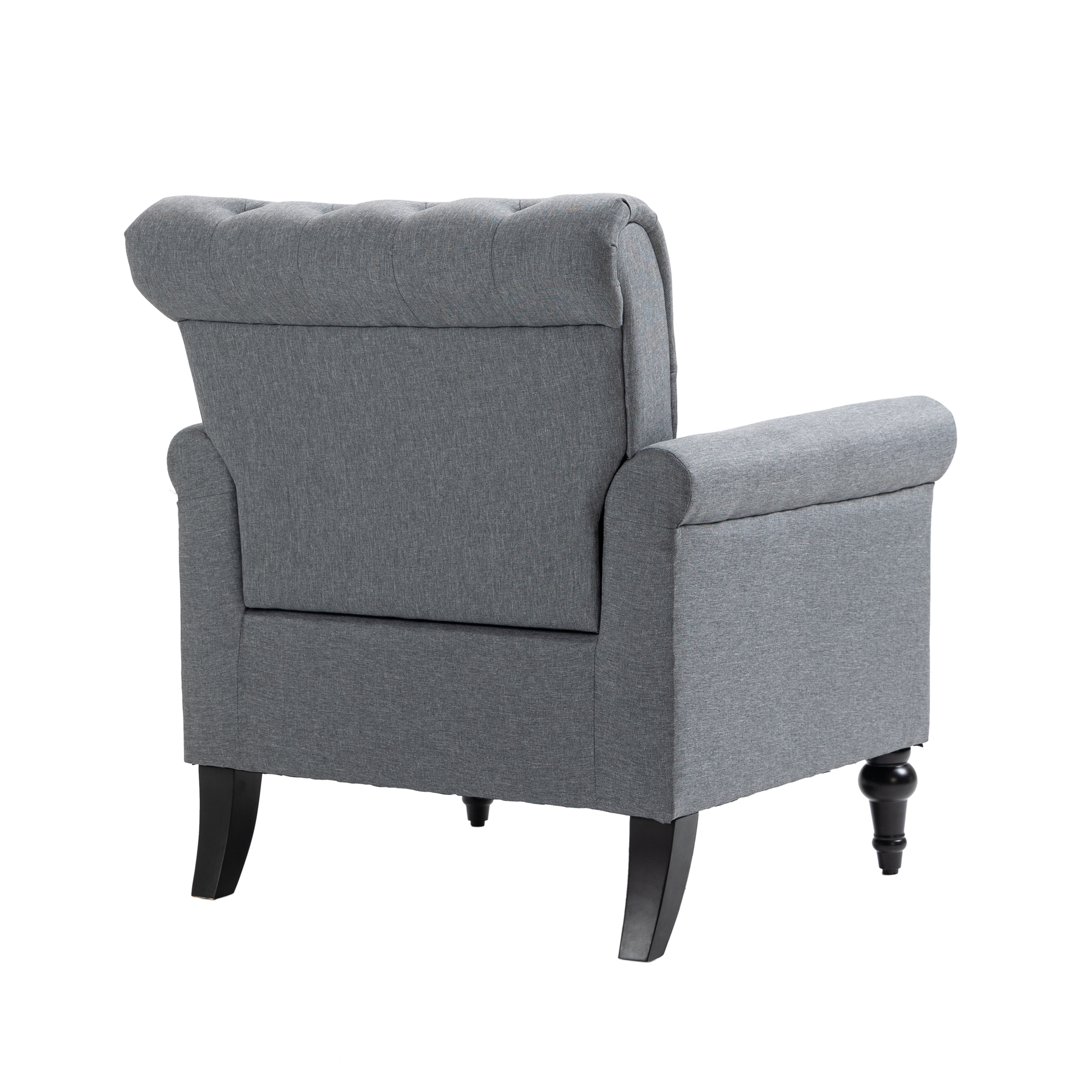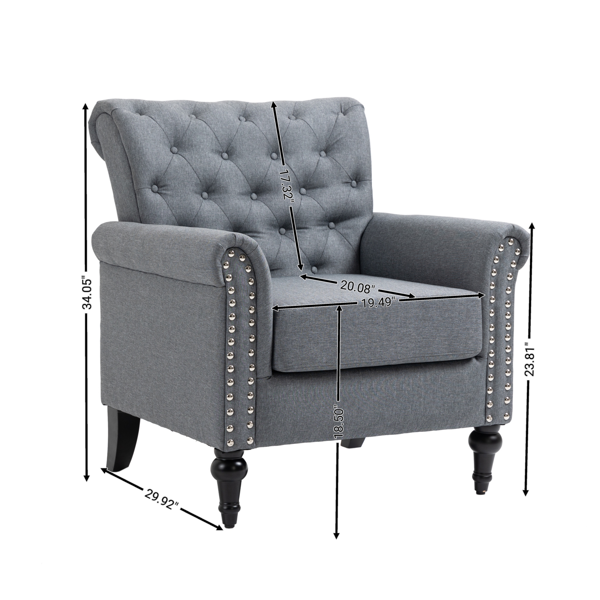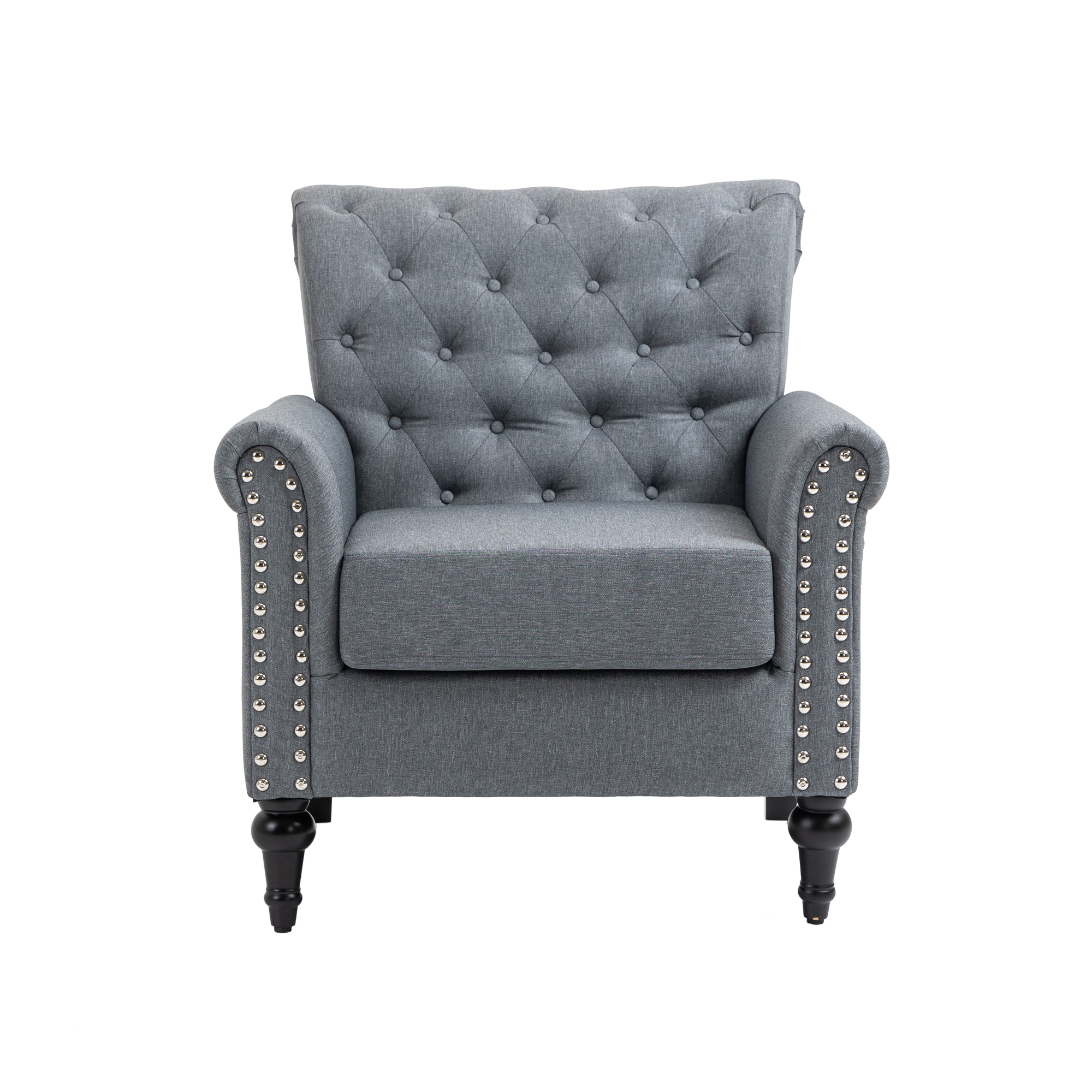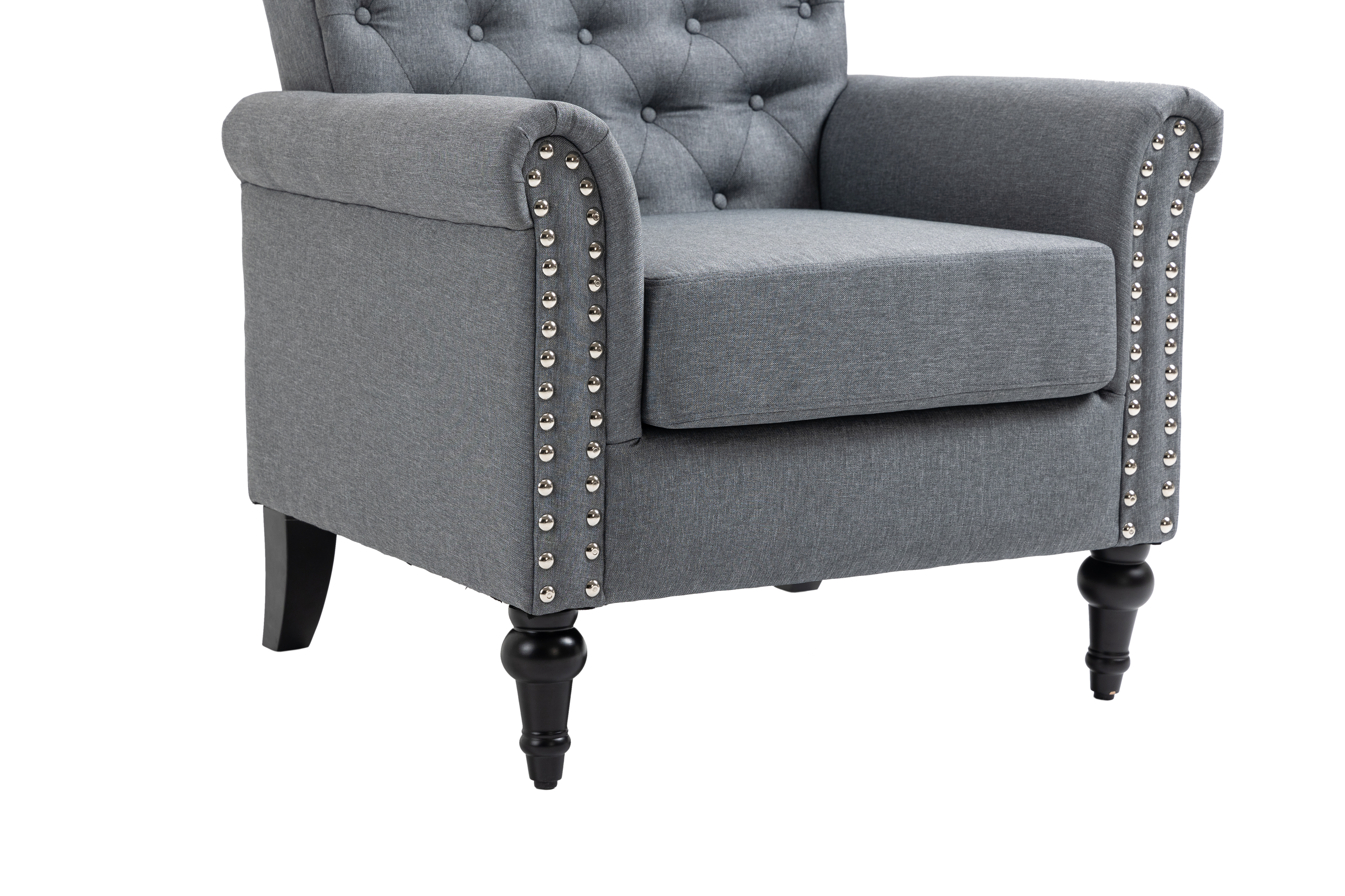 This accent chair features timeless, elegant and perfect for any lifestyle. The roll arm and wing back design with nail head trim and tufting detailing make it perfectly as a club chair. This arm chair is an classic decor for your living room, den, bedroom, entryway or any other room in your home. It will enhance your room decor when paired this accent chair with sectionals, couches or loveseat. It will accompany you anytime when reading, chatting or relaxing.