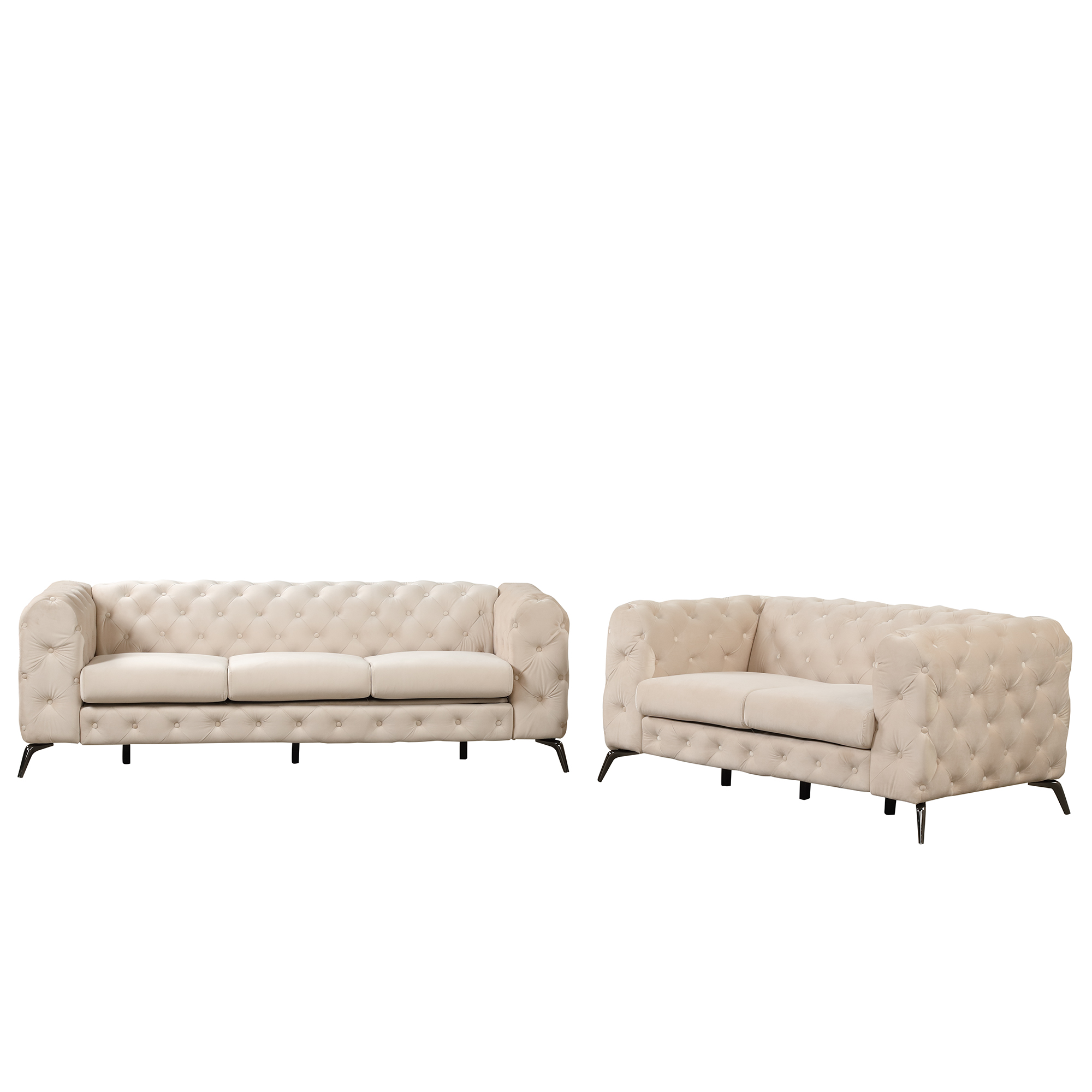 【Sturdy and Comfortable】The sofa couch built with a sturdy wood frame, the cushioning of this living room sofa filled with high-resilient foam and metal springs, very comfortable to sit or lay on.【Button Tufting】The sofa is covered in soft velvet with tonal buttons, tufted on the outside and inside of the armrests and back,giving a timeless and elegant accent.【Sturdy Metal Legs】This sofa is supported by beautifully metal legs which offer an durable structure and attractive look.【Modern Sofa】Modern velvet sofa decorated with metal legs. Simple and advanced, a great addition to completing your living room bedroom office, perfect accent furniture to match your decor.▲Product Details: