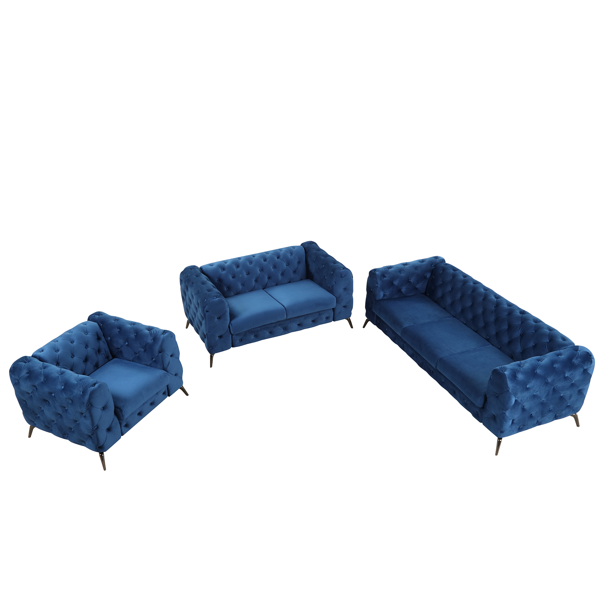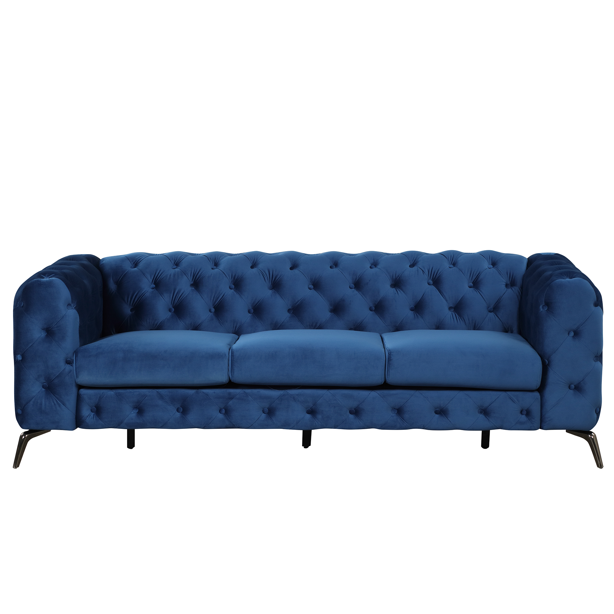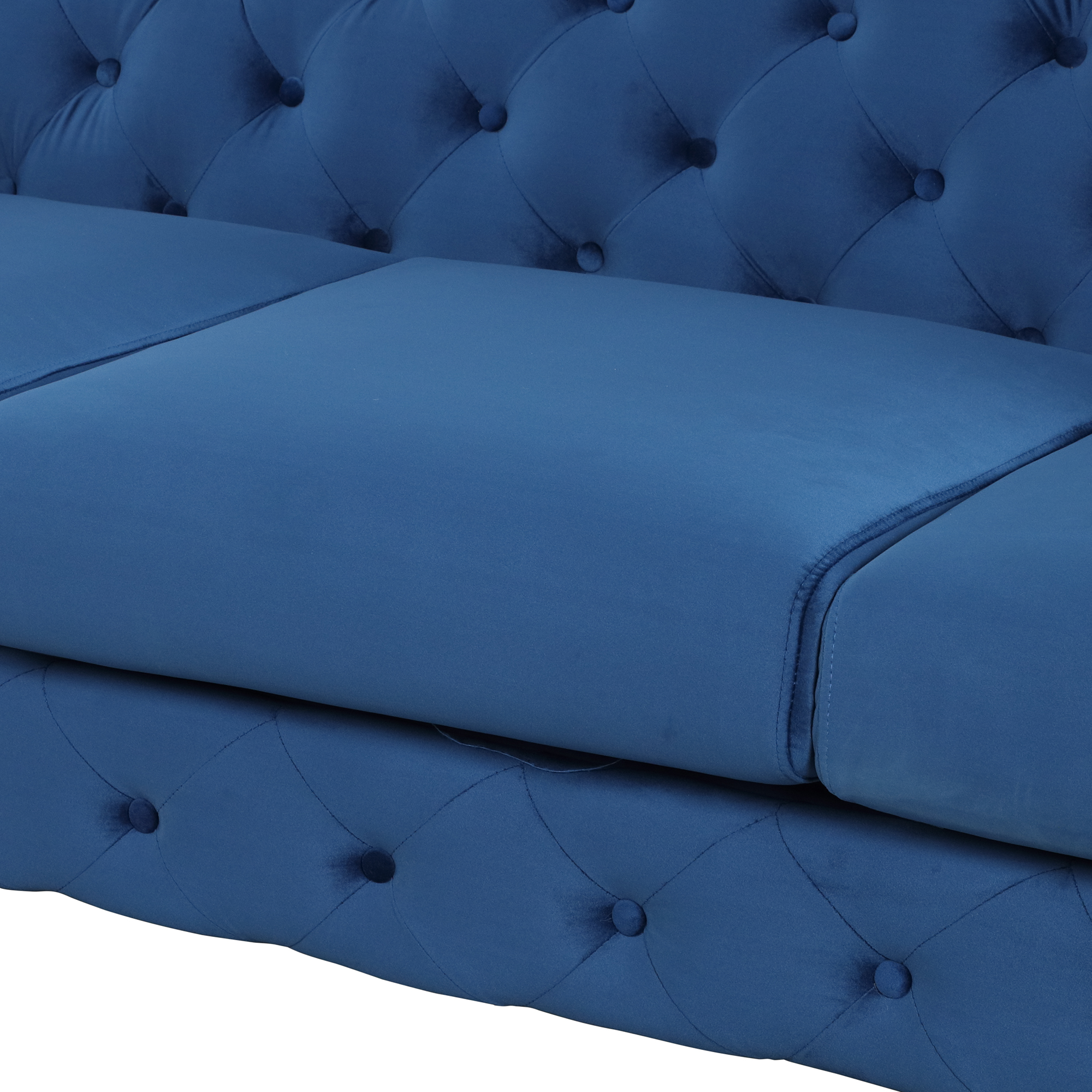 【Sturdy and Comfortable】The sofa couch built with a sturdy wood frame, the cushioning of this living room sofa filled with high-resilient foam and metal springs, very comfortable to sit or lay on.【Button Tufting】The sofa is covered in soft velvet with tonal buttons, tufted on the outside and inside of the armrests and back,giving a timeless and elegant accent.【Sturdy Metal Legs】This sofa is supported by beautifully metal legs which offer an durable structure and attractive look.【Modern Sofa】Modern velvet sofa decorated with metal legs. Simple and advanced, a great addition to completing your living room bedroom office, perfect accent furniture to match your decor.▲Product Details: