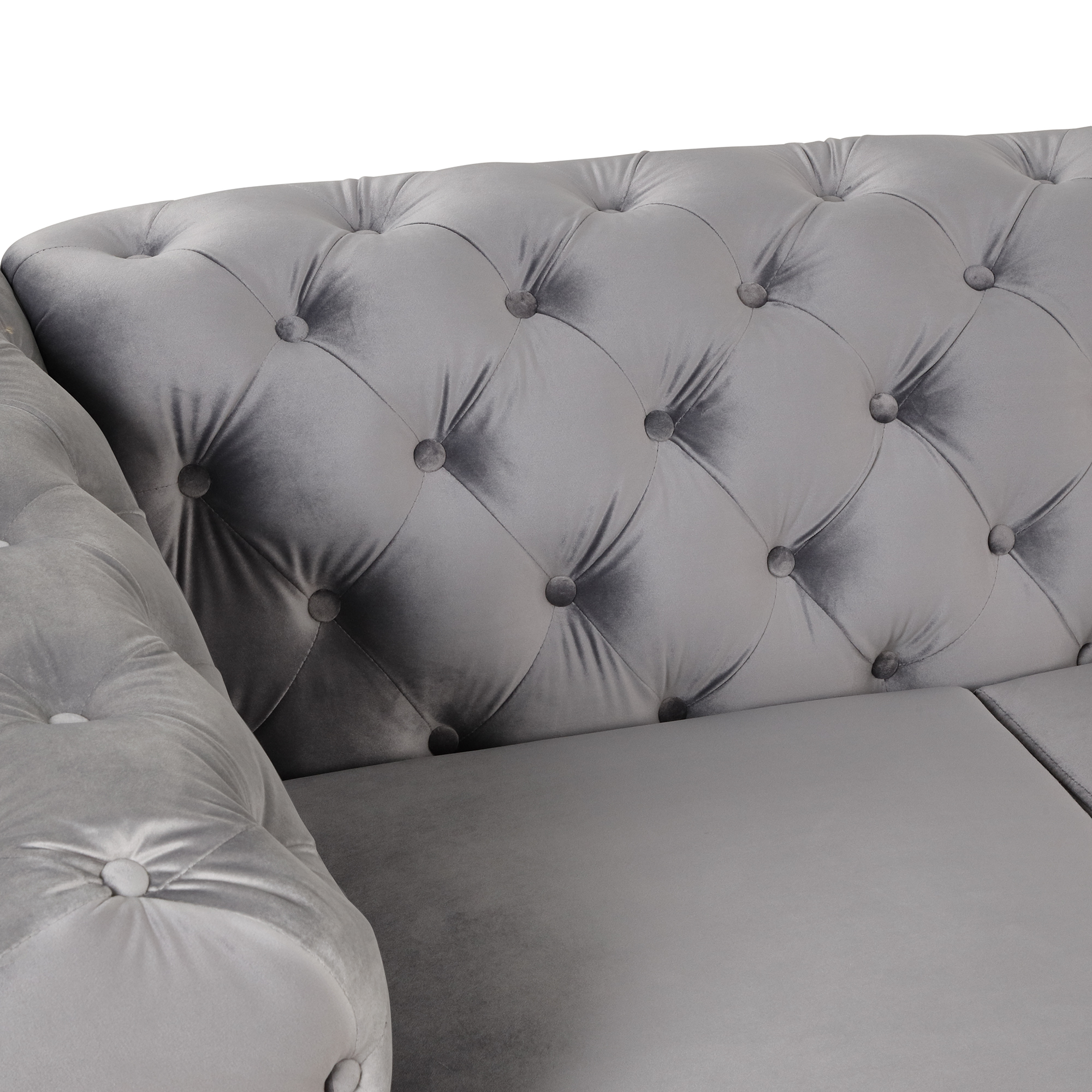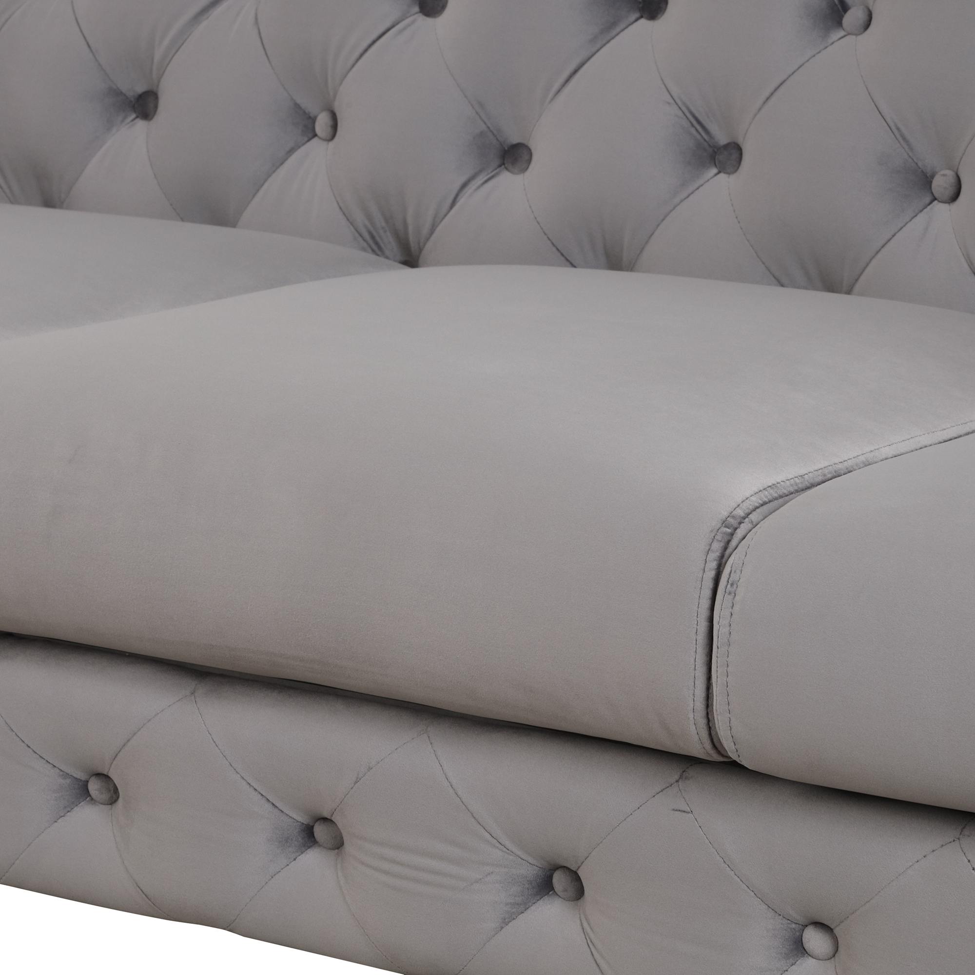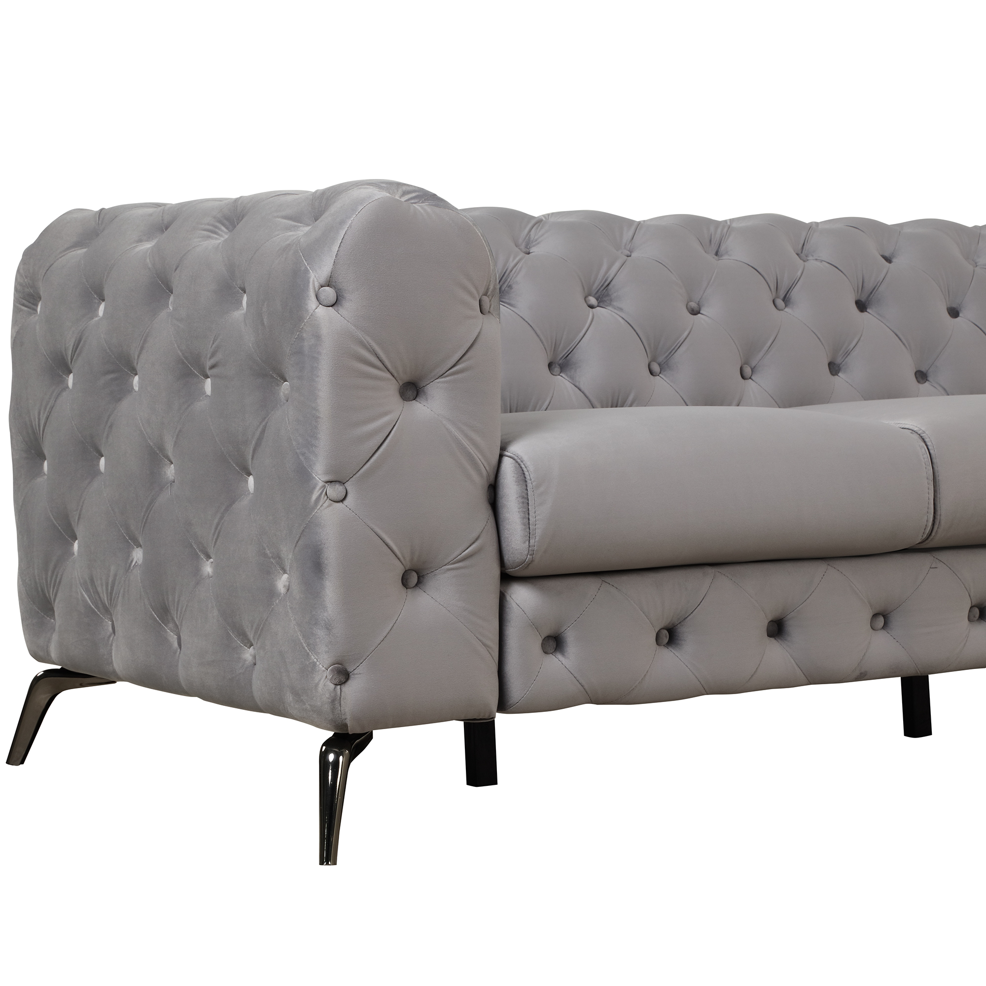 【Sturdy and Comfortable】The sofa couch built with a sturdy wood frame, the cushioning of this living room sofa filled with high-resilient foam and metal springs, very comfortable to sit or lay on.【Button Tufting】The sofa is covered in soft velvet with tonal buttons, tufted on the outside and inside of the armrests and back,giving a timeless and elegant accent.【Sturdy Metal Legs】This sofa is supported by beautifully metal legs which offer an durable structure and attractive look.【Modern Sofa】Modern velvet sofa decorated with metal legs. Simple and advanced, a great addition to completing your living room bedroom office, perfect accent furniture to match your decor.▲Product Details: