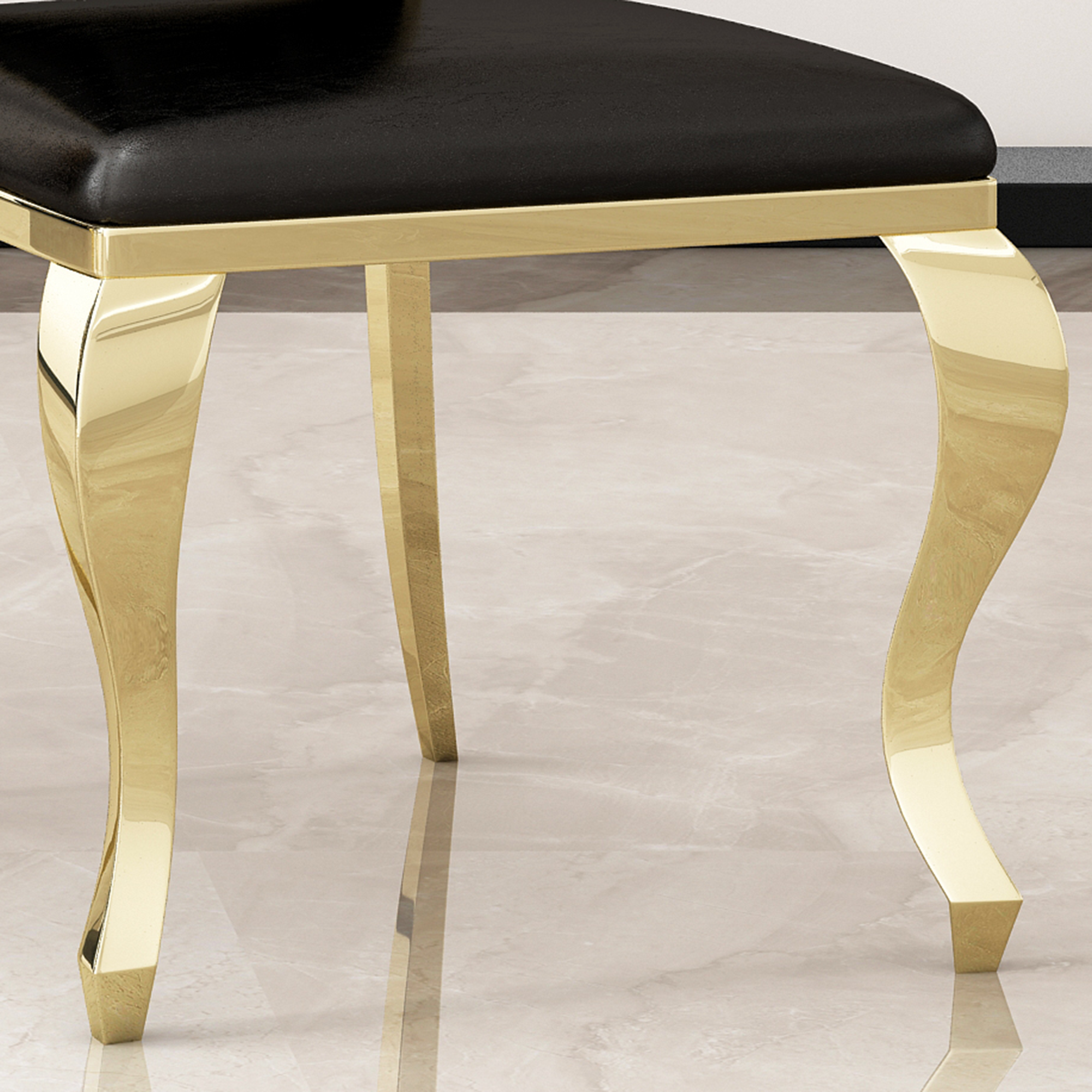 -MULTIFUNCTIONAL USE: This dining room accent chair, in fashionable and classic style, is suitable for various scenarios like kitchen, living room, bedroom, dressing room, vanity room, etc. This is the best choice for decorating a room or giving gifts to families and friends.-COMFORTABLE & STURDY SUPPORT: This high-back chair is slightly and elegantly curved, skin-friendly leather and durable stainless steel frame and leg. The bottom of this cute accent chair legs have rubber floor protectors for sensitive flooring.-BETTER SEATING FEELING: The backrest and cushion and made of soft and springy leather, which can support your back to ensure comfort when sitting for a long time.-STYLISH & DURABLE: Four chair legs are stainless steel with gold mirrored finished, stylish, beautiful and durable.-CLASSIC APPEARANCE: Unique petaloid design of the backrest completes the mordern look. Bring a noble and elegant feeling to your dining environment.