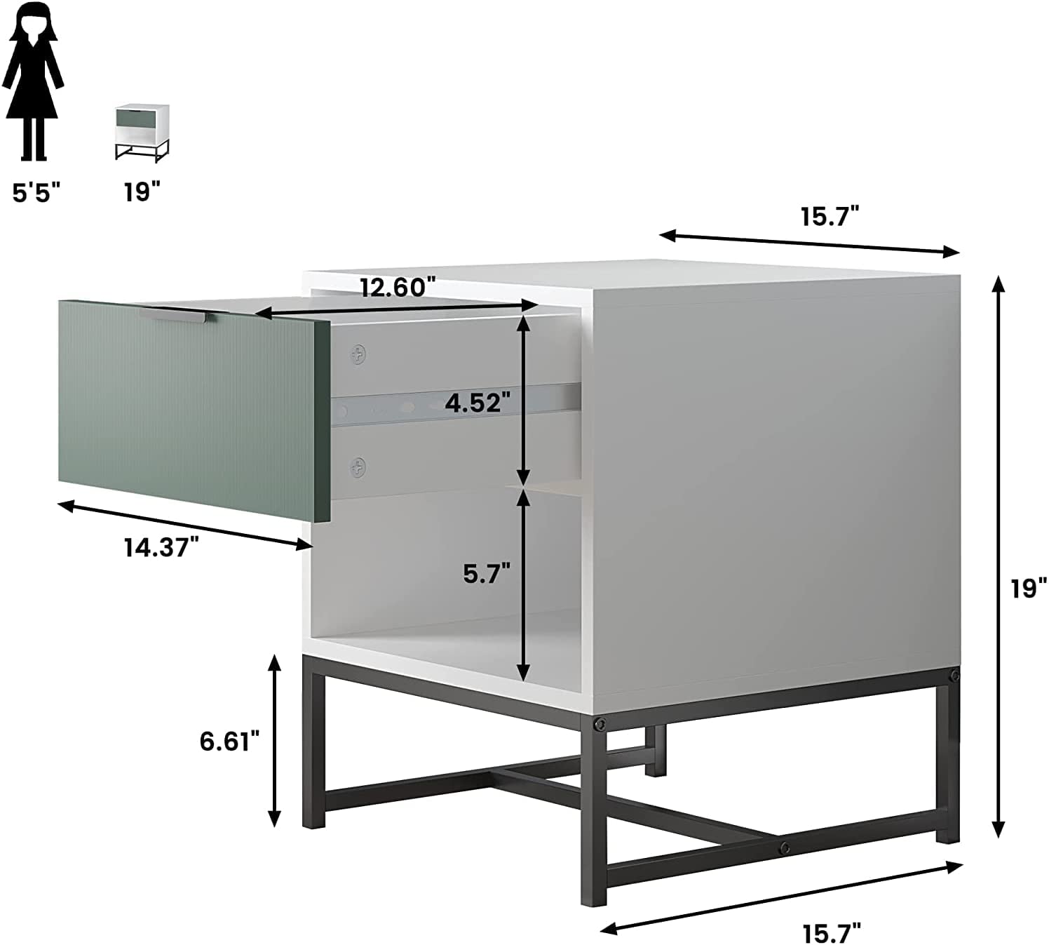 【Charming Modern Appearance & Customized Line Design】 This night stand adopts modern design with simple line, which is very suitable for bedroom or living room. The cabinet door chooses unique customized lines and adds a unique sense of design. Fashion Green and white matching, industrial-style steel frame ensure this bedside table fit different home style, such as modern or rustic.It creates a warm home atmosphere and makes you sleep peacefully in a comfortable environment.