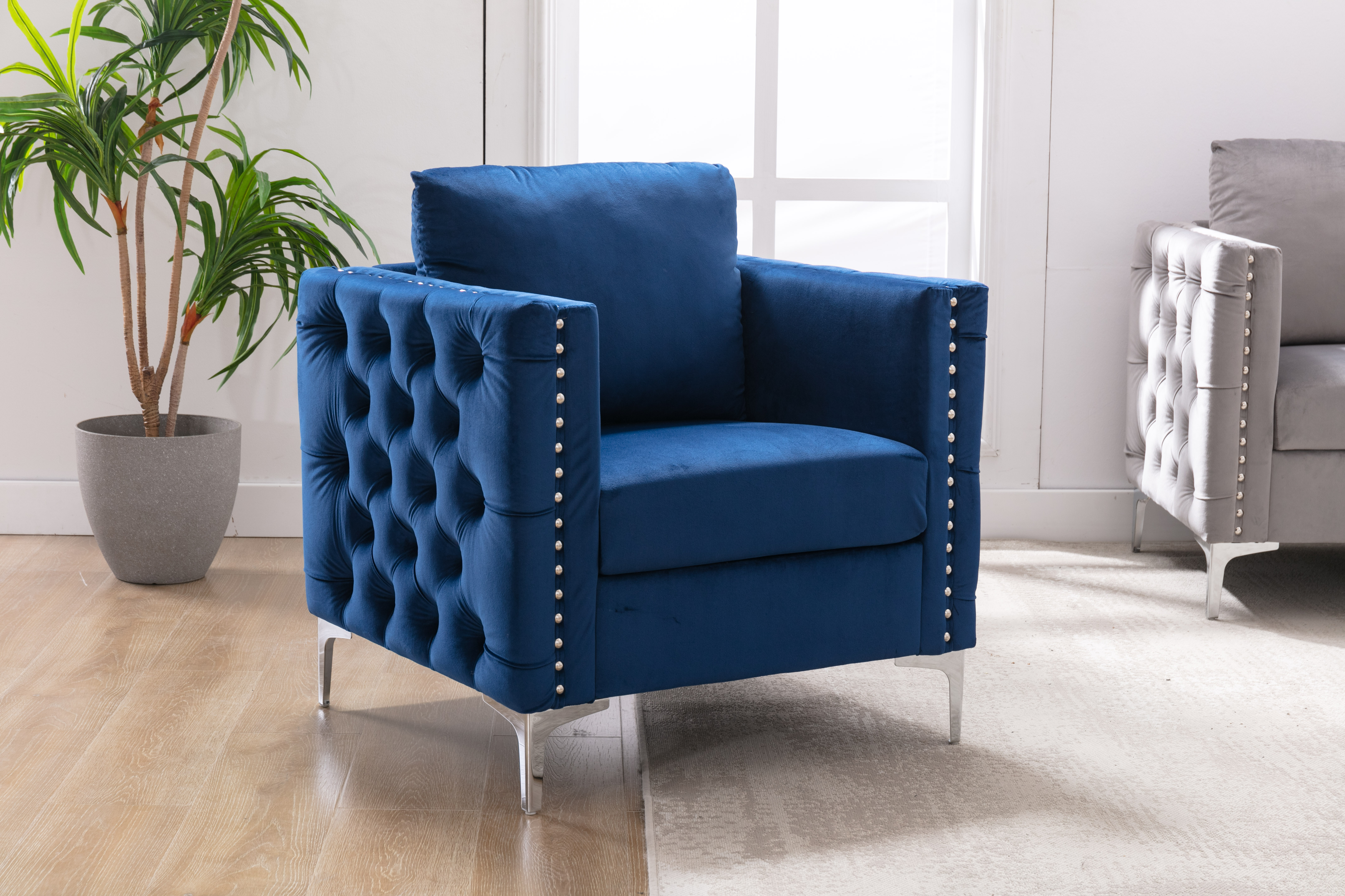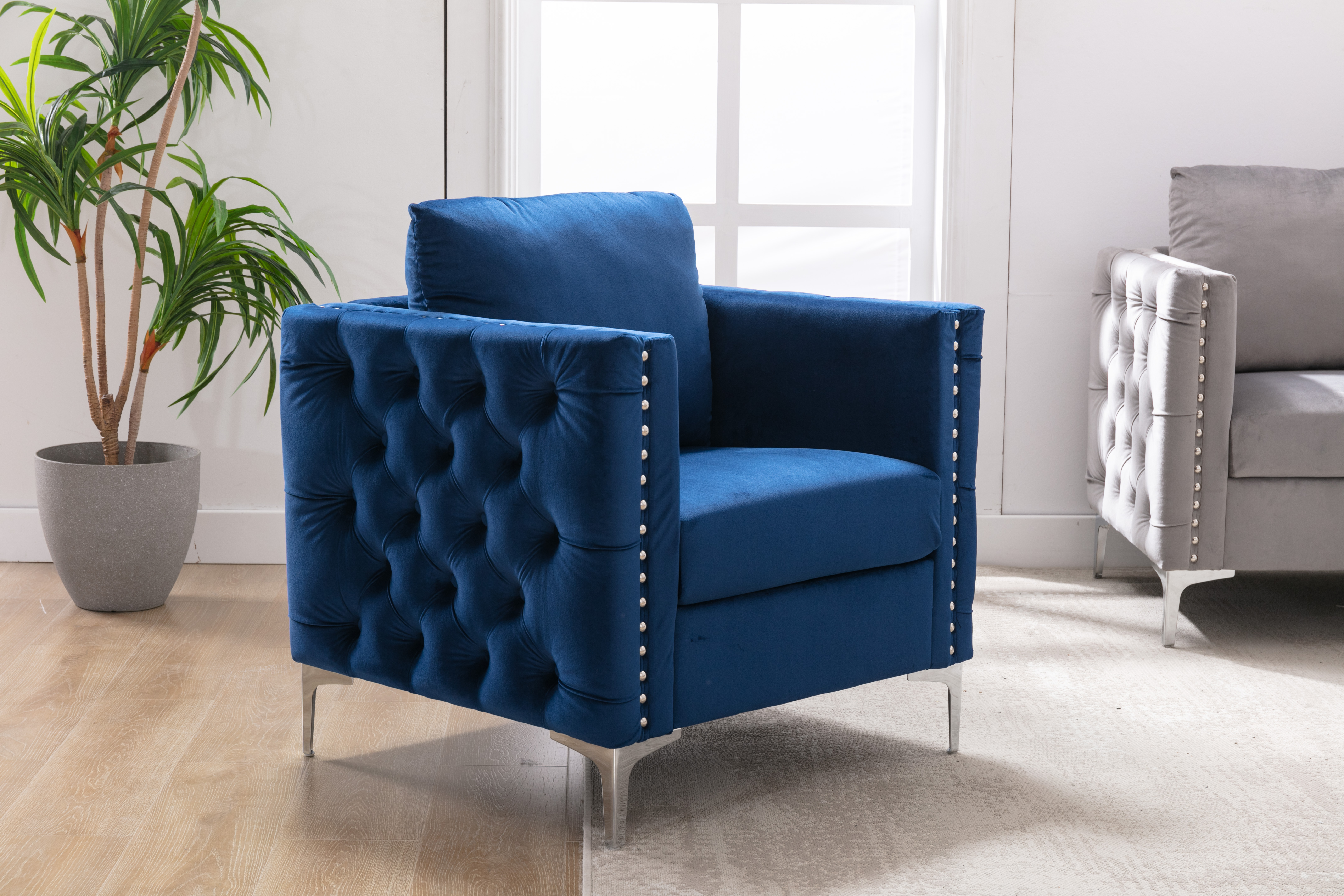 · 【MODERN DESIGN】 Embodying luxe sophistication while reinventing vintage glamour style, this armchair charms with its club chair inspired profile, linear detail, and retro tufting.