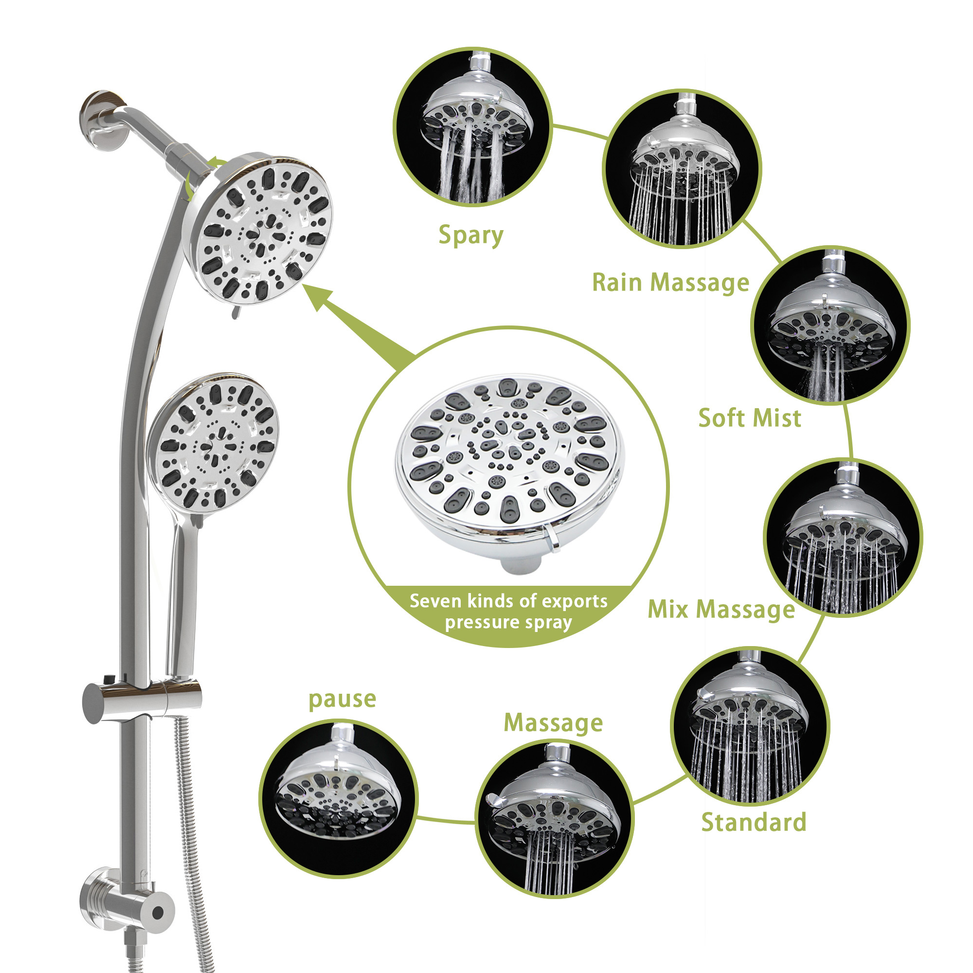Each shower has 7 Settings: rain, massage, spray, and other modes. Each model has its own advantages. You can choose the shower mode according to your preferences, and you can enjoy massage-like comfort in the shower.