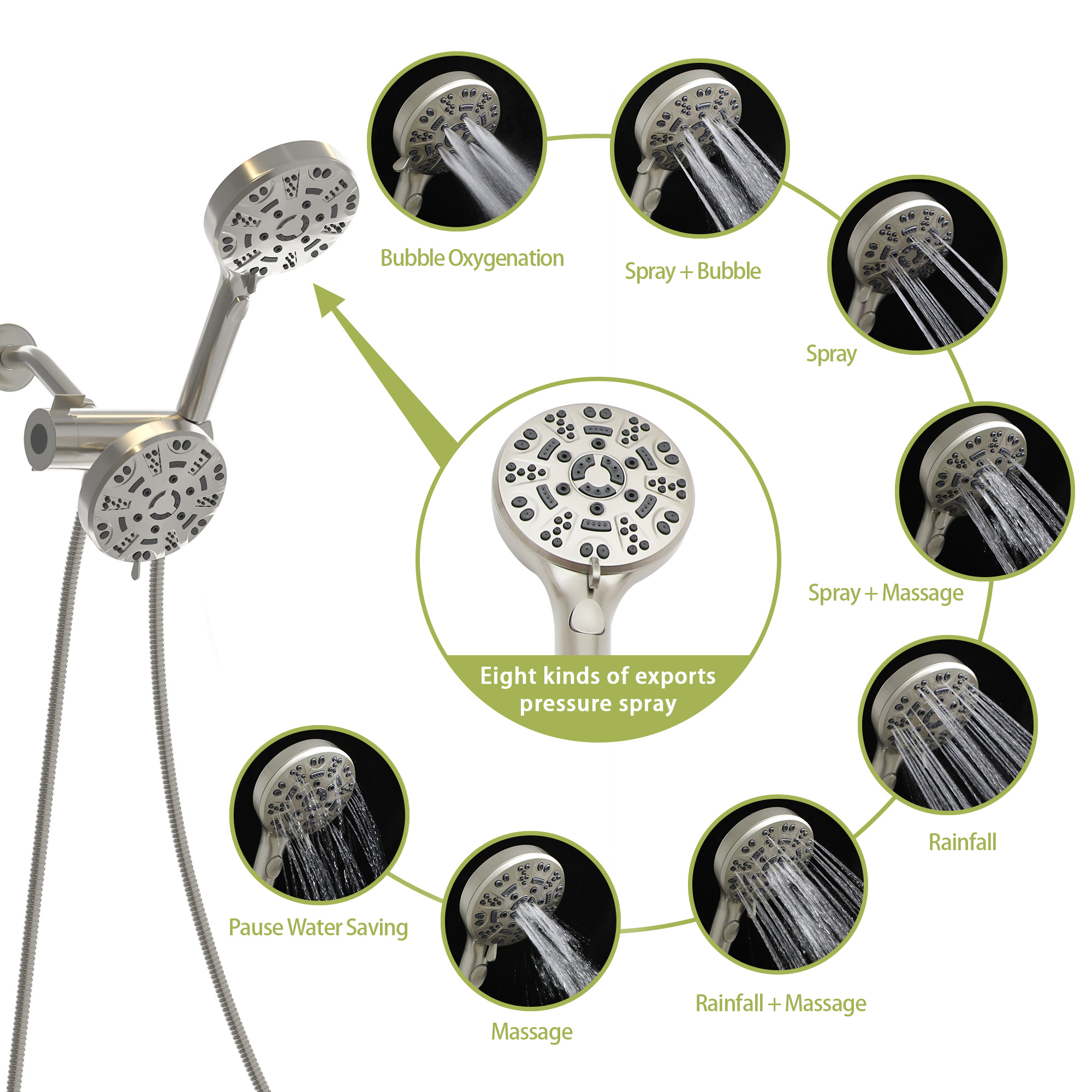 - Each shower has 8 Settings: rain, massage, spray, and other modes. Each model has its own advantages. You can choose the shower mode according to your preferences, and you can enjoy massage-like comfort in the shower.