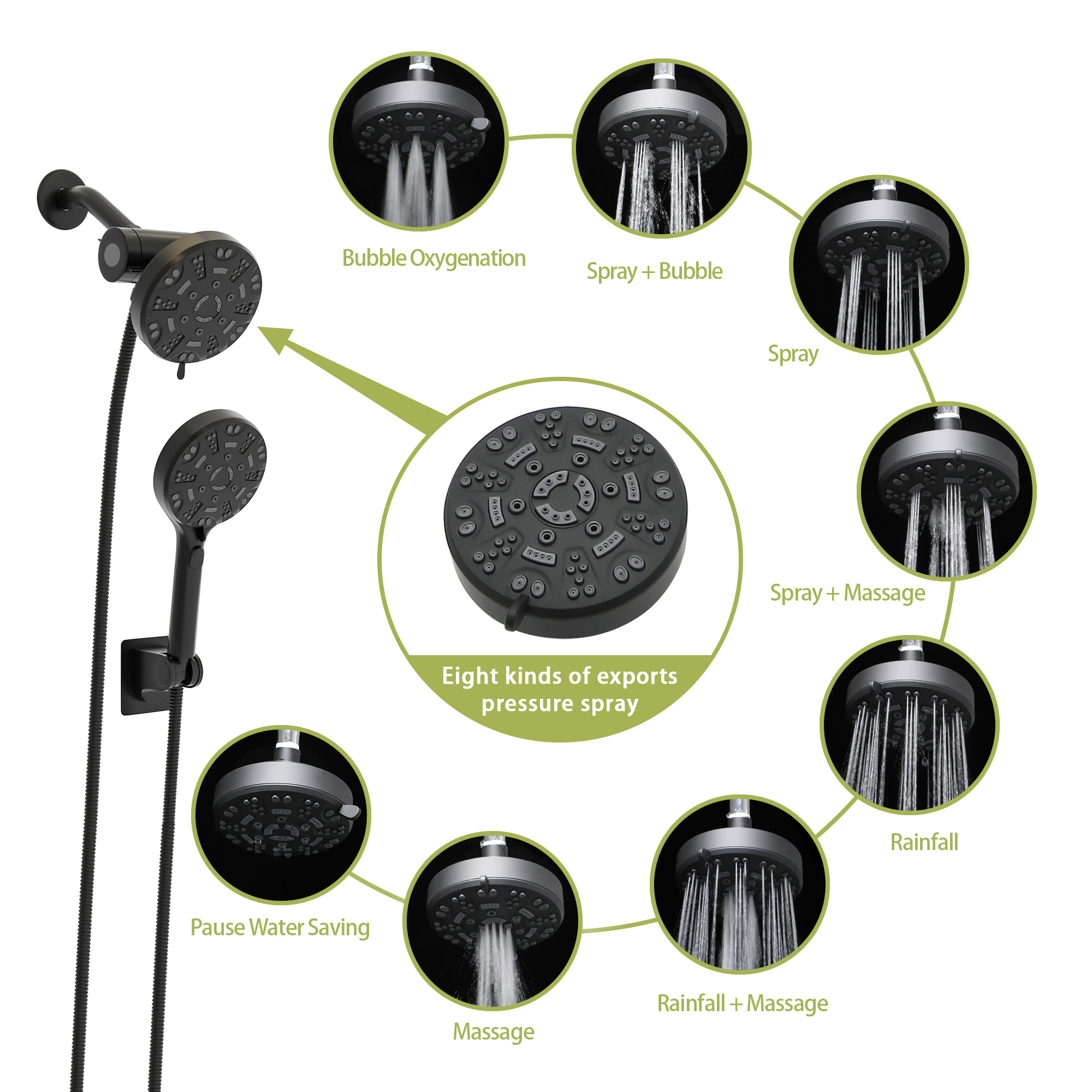 - Each shower has 8 Settings: rain, massage, spray, and other modes. Each model has its own advantages. You can choose the shower mode according to your preferences, and you can enjoy massage-like comfort in the shower.