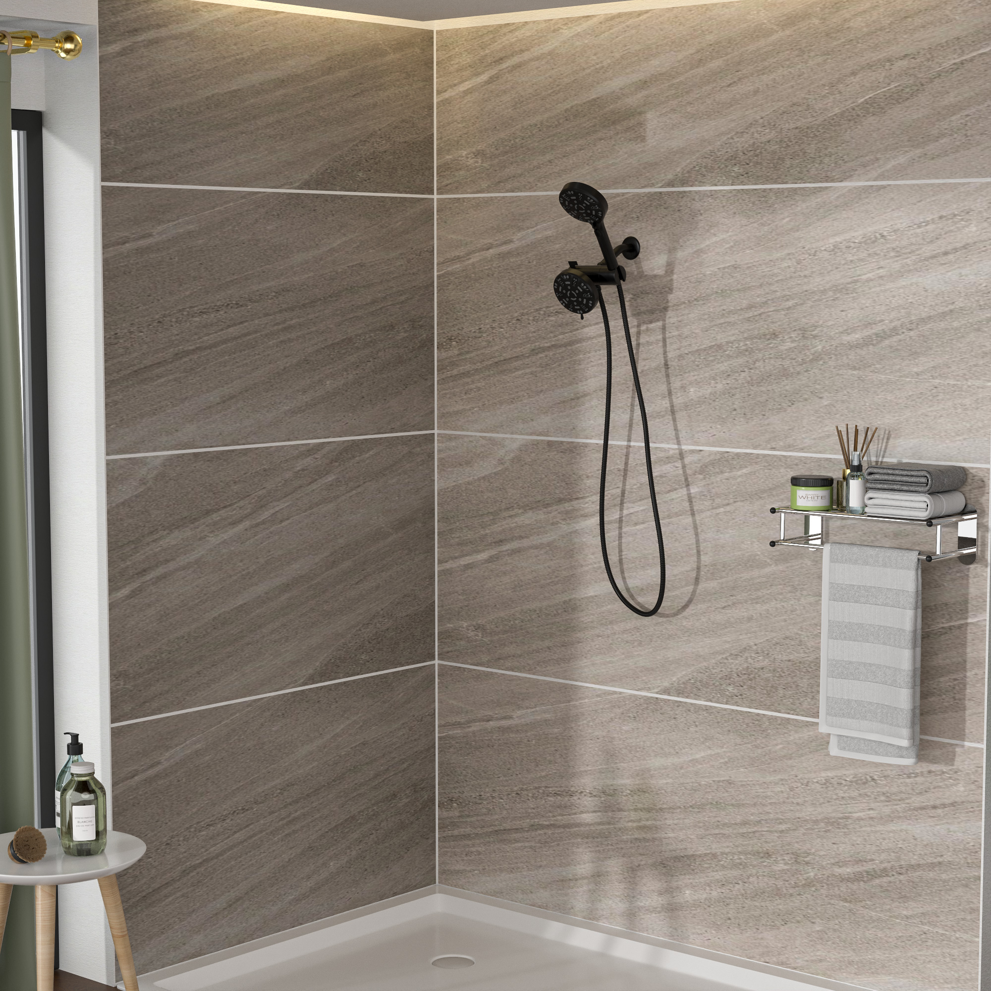 Pamper yourself from head to toe with this modern shower combination from a top American brand. Equipped with a hand-held shower holder with an adjustable Angle for adjusting the flow Angle, and a premium soft stainless steel hose for longer range and fluidity. Guaranteed lifetime perfect performance, it installs in minutes without tools or plumbing work. It allows you to indulge in your own luxurious bathroom for the ultimate shower spa experience!