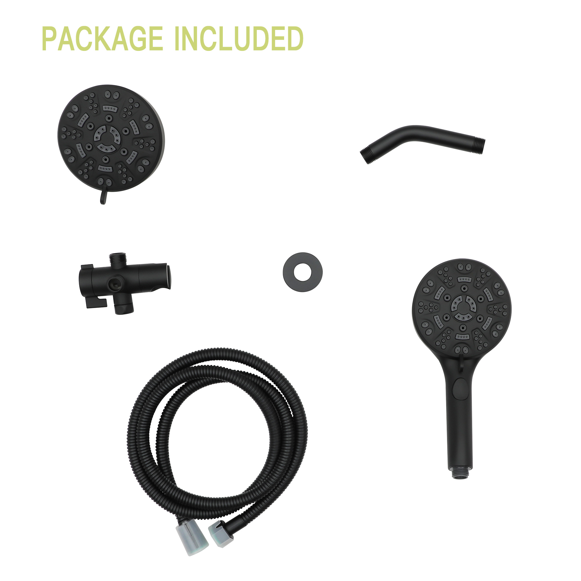 - What's included: 4.7-inch shower head and adjustable hand-held shower, adjustable Angle shower holder, 59-inch stainless steel shower hose, stainless steel shower arm with enamel cover, gasket, plumber's tape, installation/operator's manual, etc.