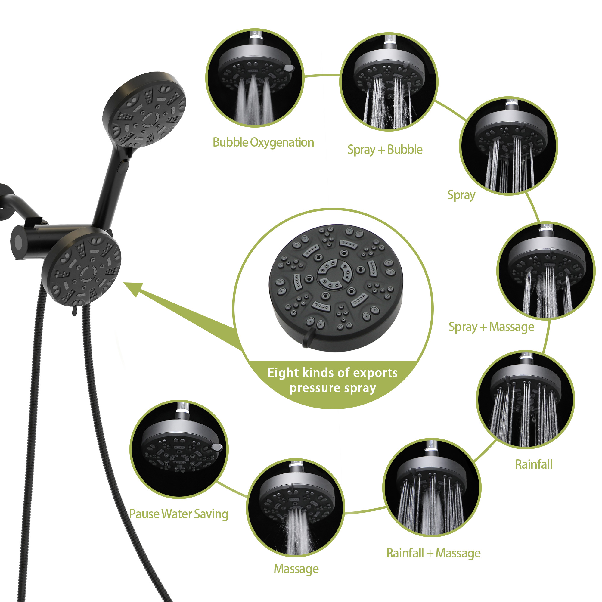- Each shower has 8 Settings: rain, massage, spray, and other modes. Each model has its own advantages. You can choose the shower mode according to your preferences, and you can enjoy massage-like comfort in the shower.