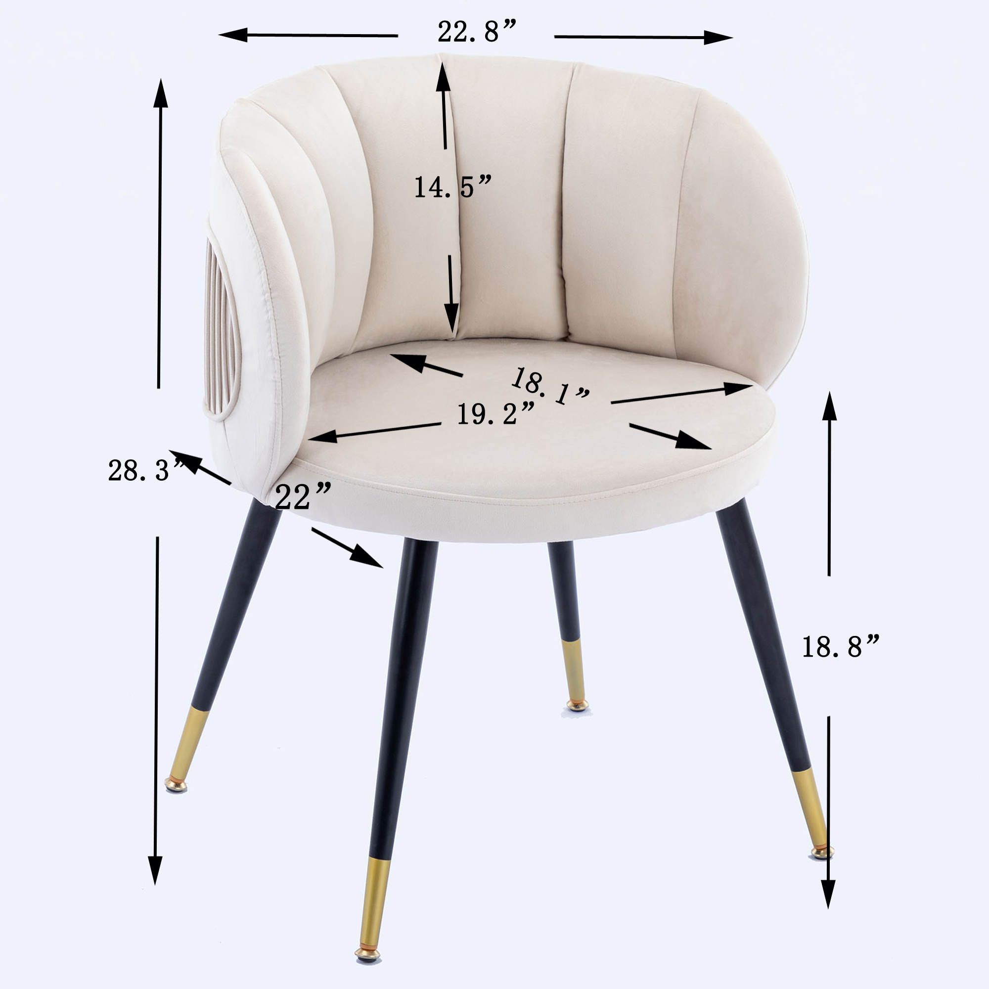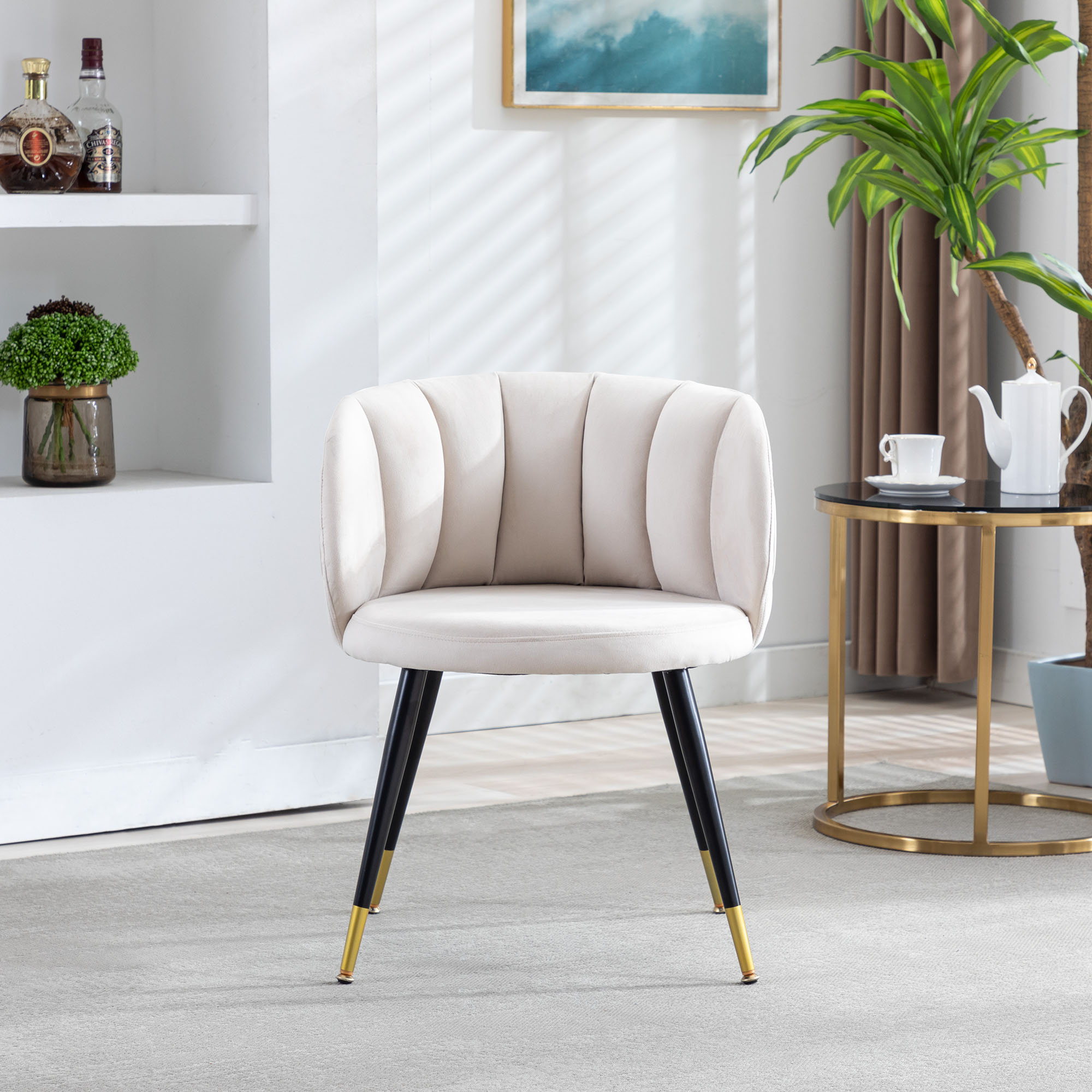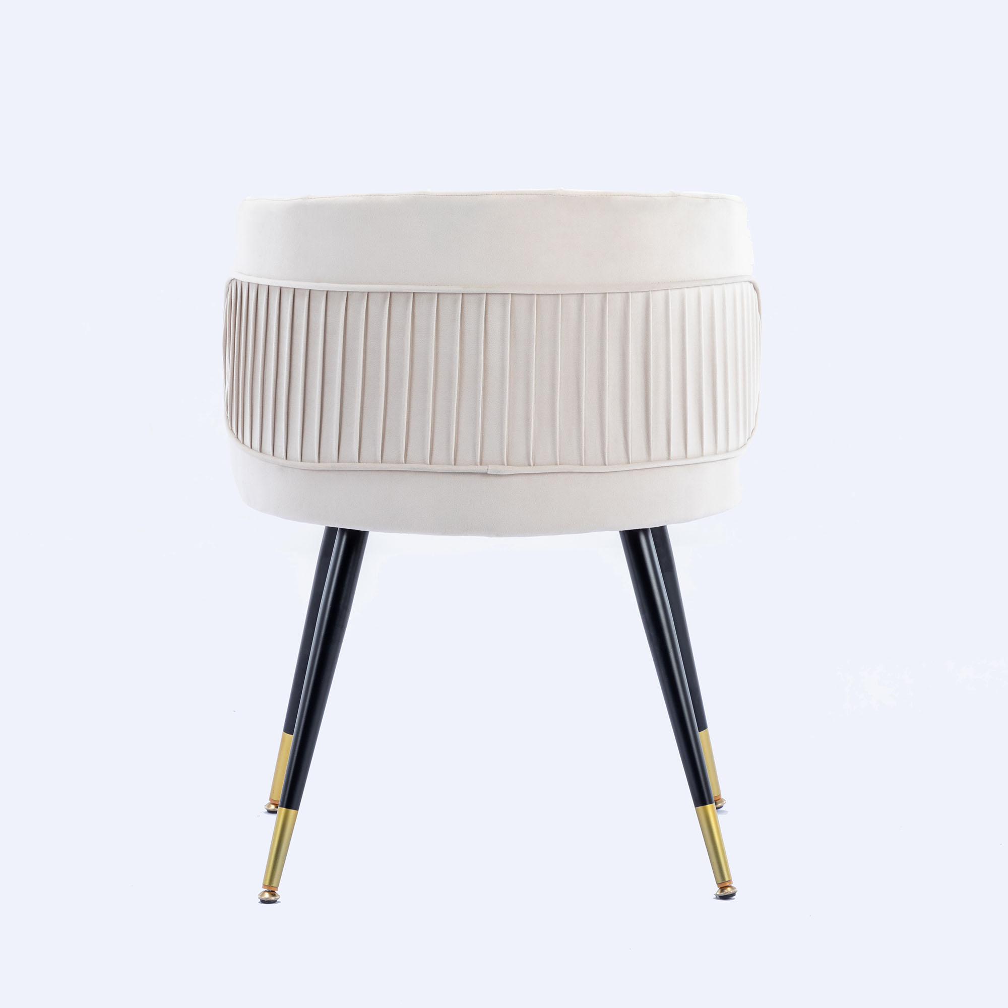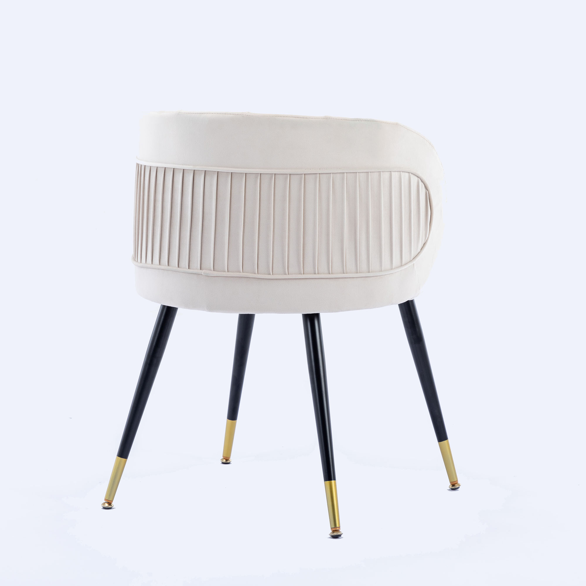 Materials selection: In the material, we chose velvet. Velvet not only has a comfortable, soft feel, but it also makes the chair look more ornate.For the interior, we use high-quality cotton.Not only will it make the chair look fuller, it will also make the chair feel more comfortable to sit on.In the choice of chair foot, we used black metal legs with gold plating at the bottom.