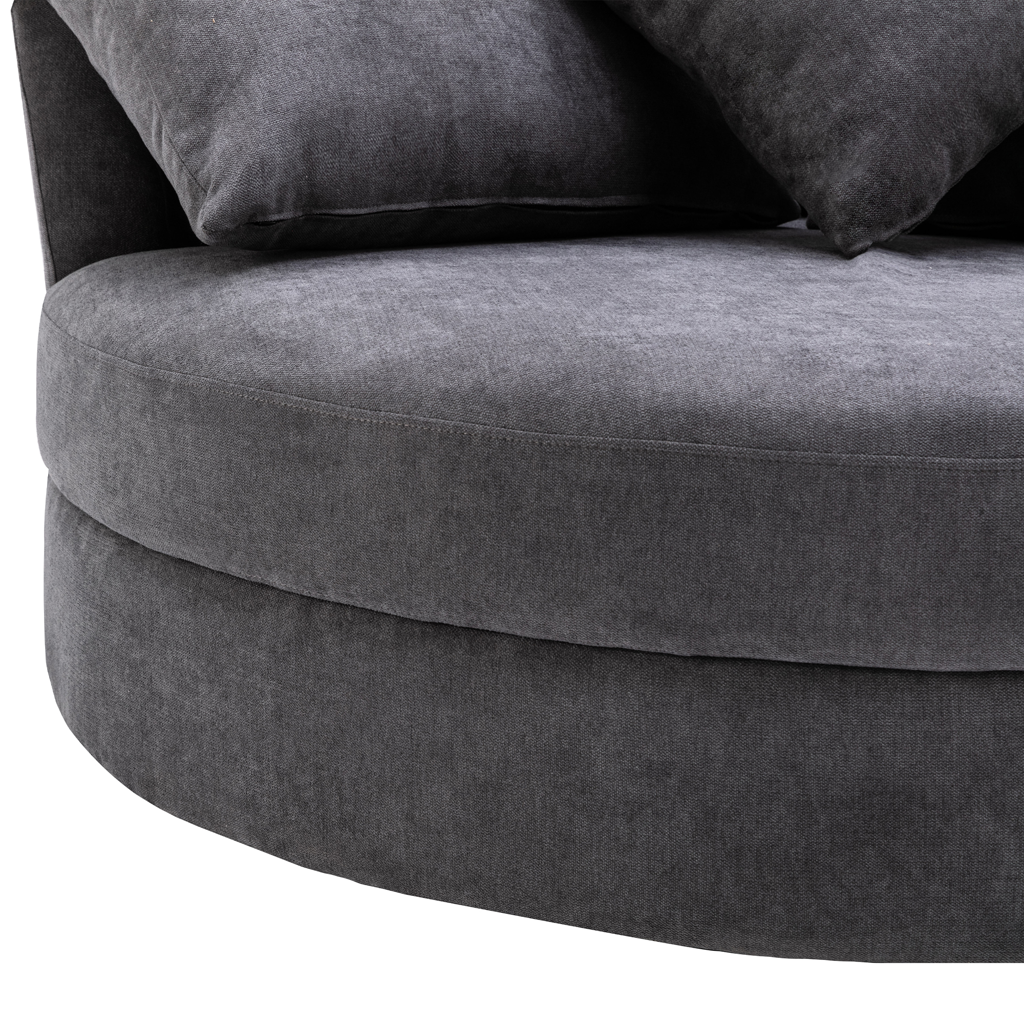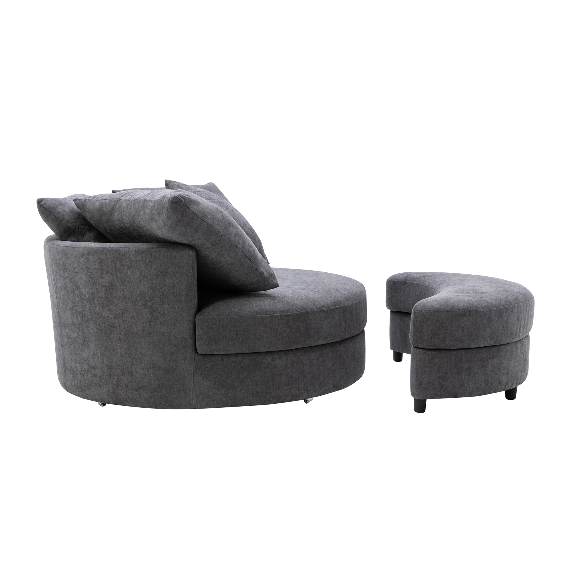 ✔360-Degree Swivel Barrel Chair: The linen fabric wrapped seat is founded atop a 360-degree swivel pedestal base, which allows effortlessly sitting, leaving the seat and changing sitting position without moving the base, especially practical in workspace and living room.
